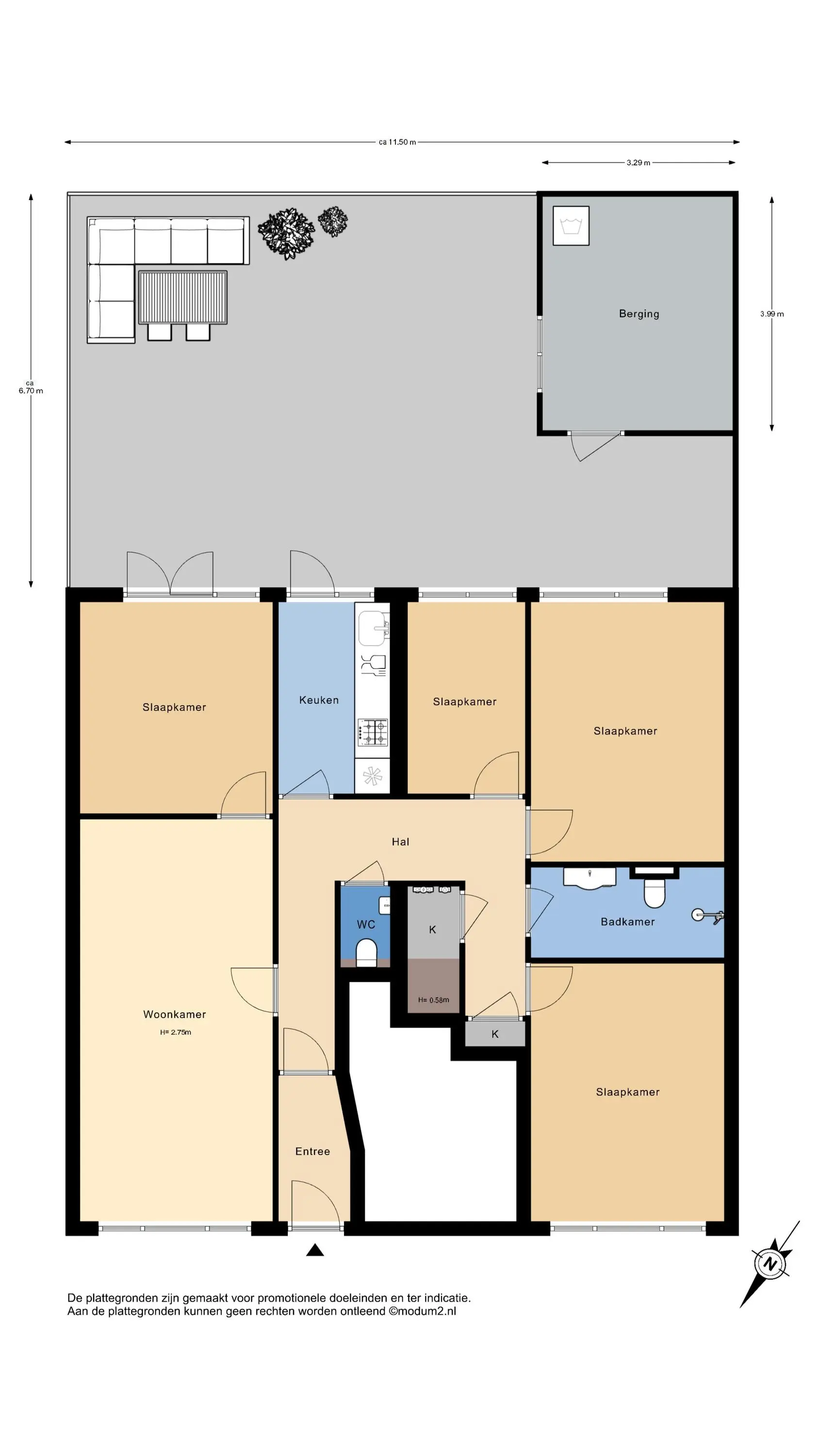 Voor de indeling en maatvoering wordt verwezen naar de plattegronden;