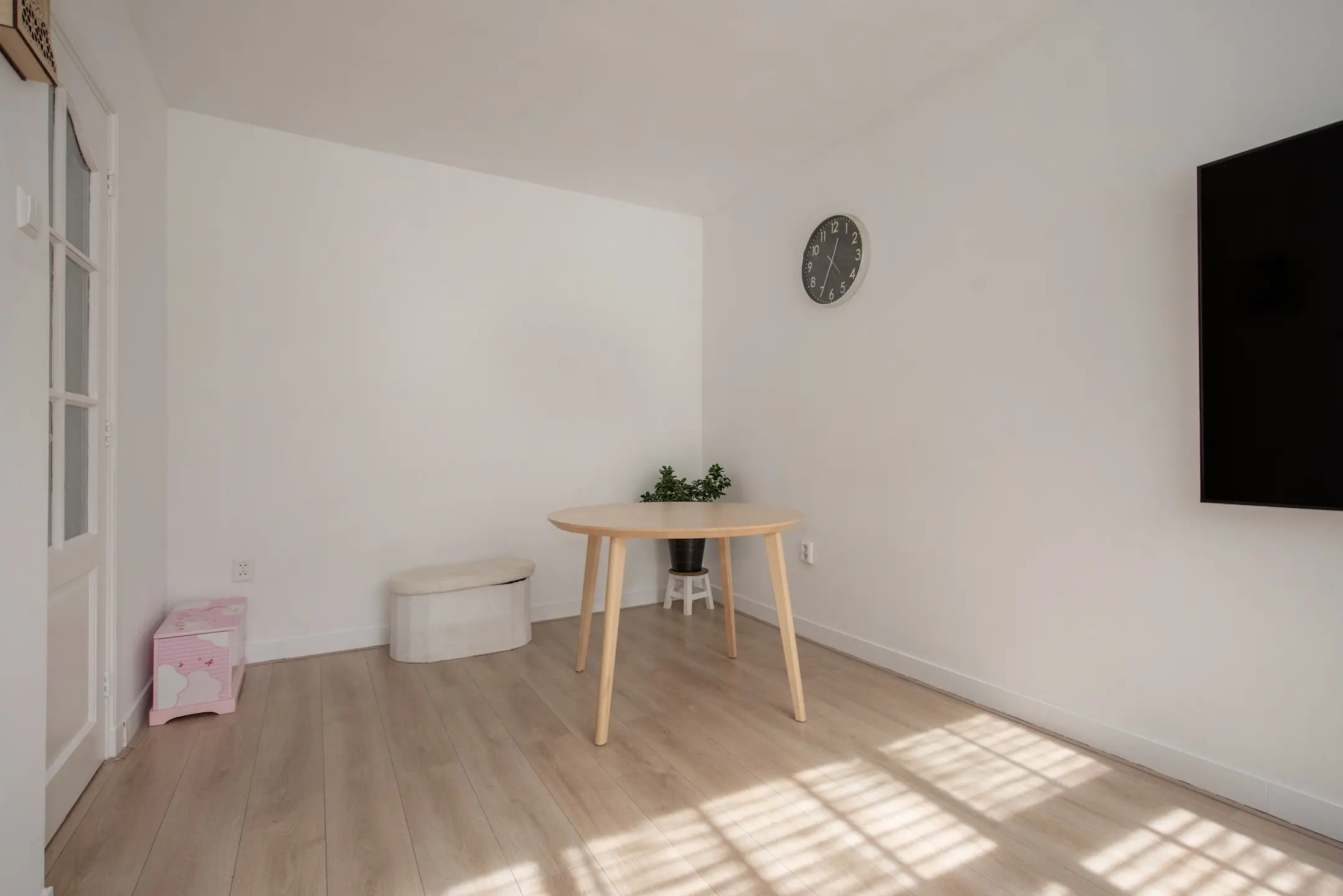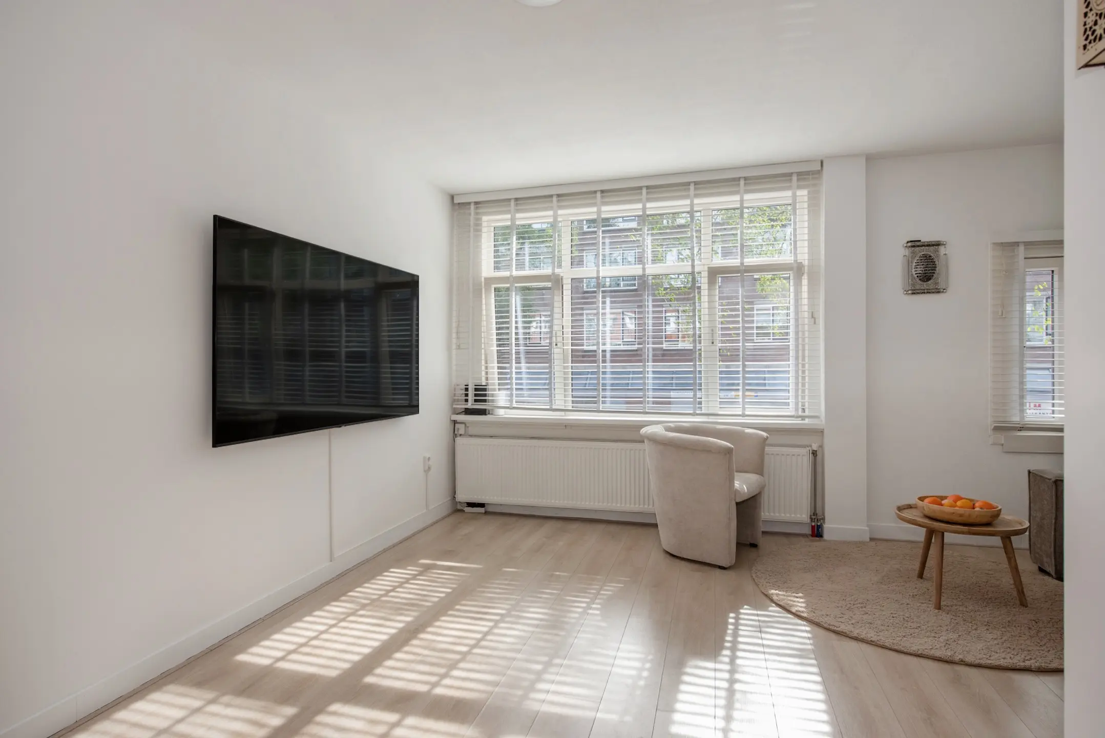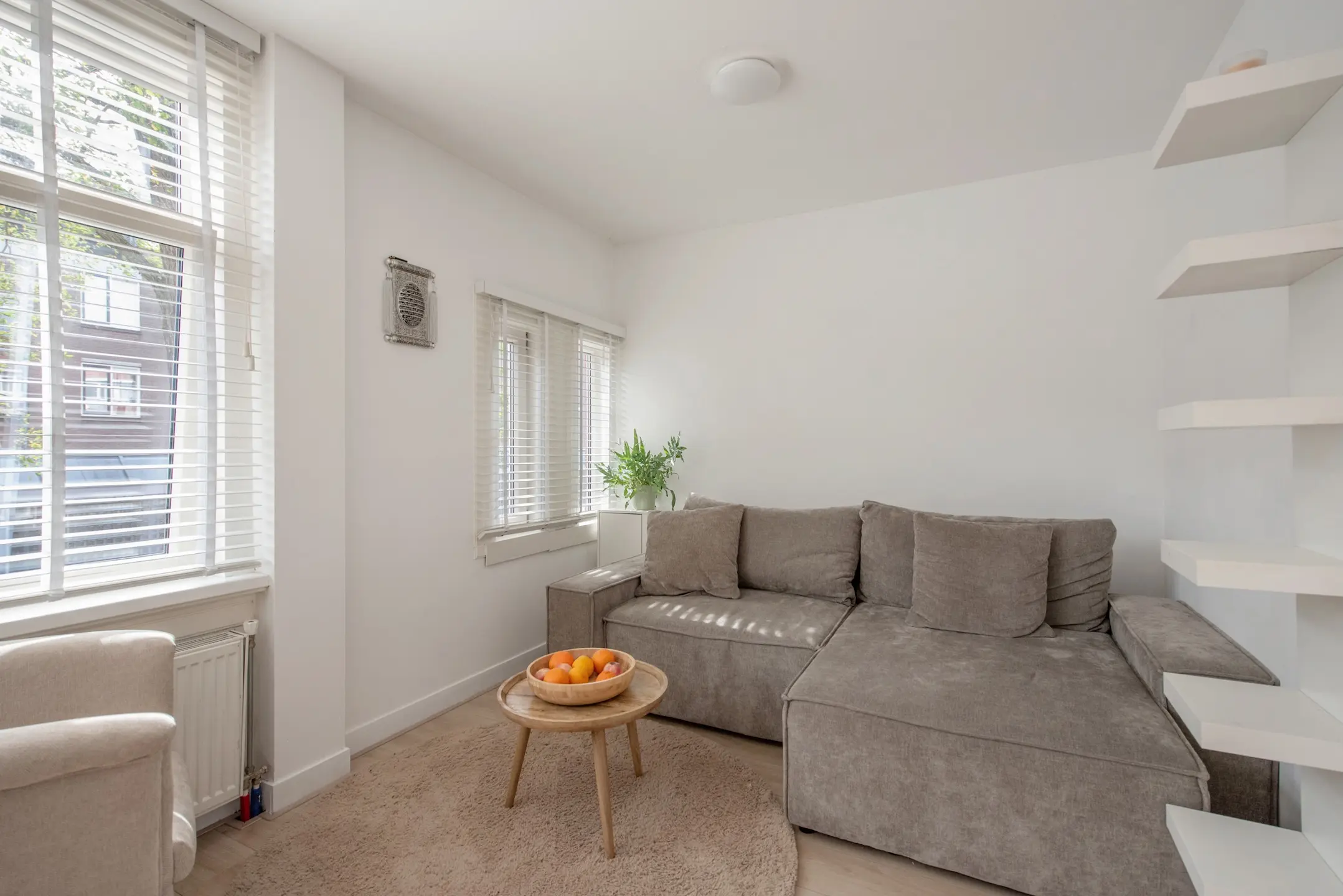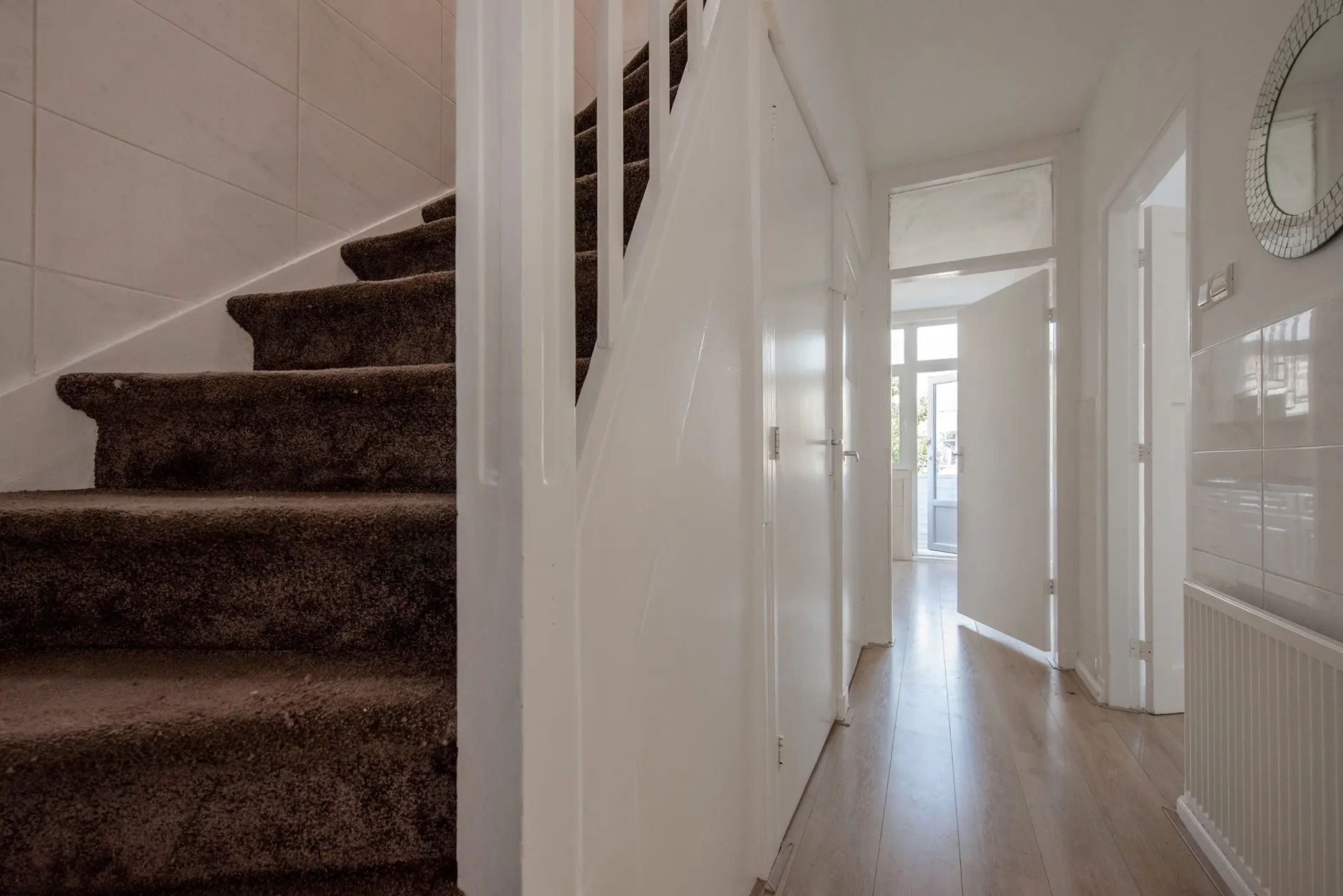 Bij binnenkomst op straatniveau tref je een nette entree met een hal, de meterkast (voorzien van 5 groepen), een modern toilet met fontein, en toegang tot de woonverdieping. De lichte woonkamer is volledig voorzien van laminaat, met strakke wanden en plafonds voor een eigentijdse uitstraling.