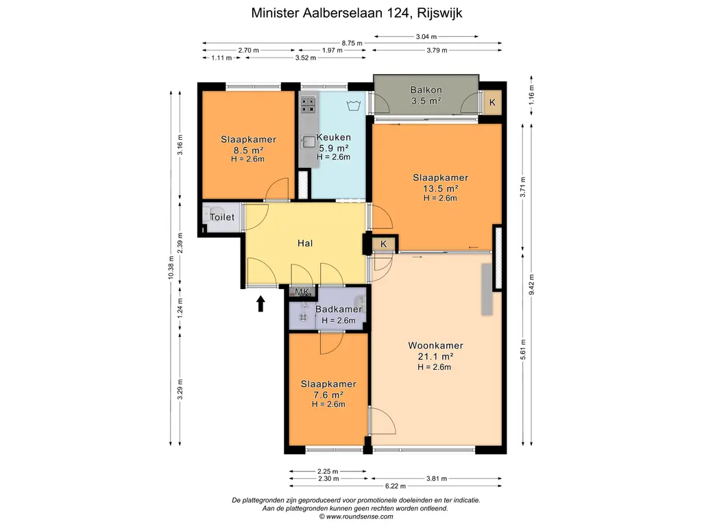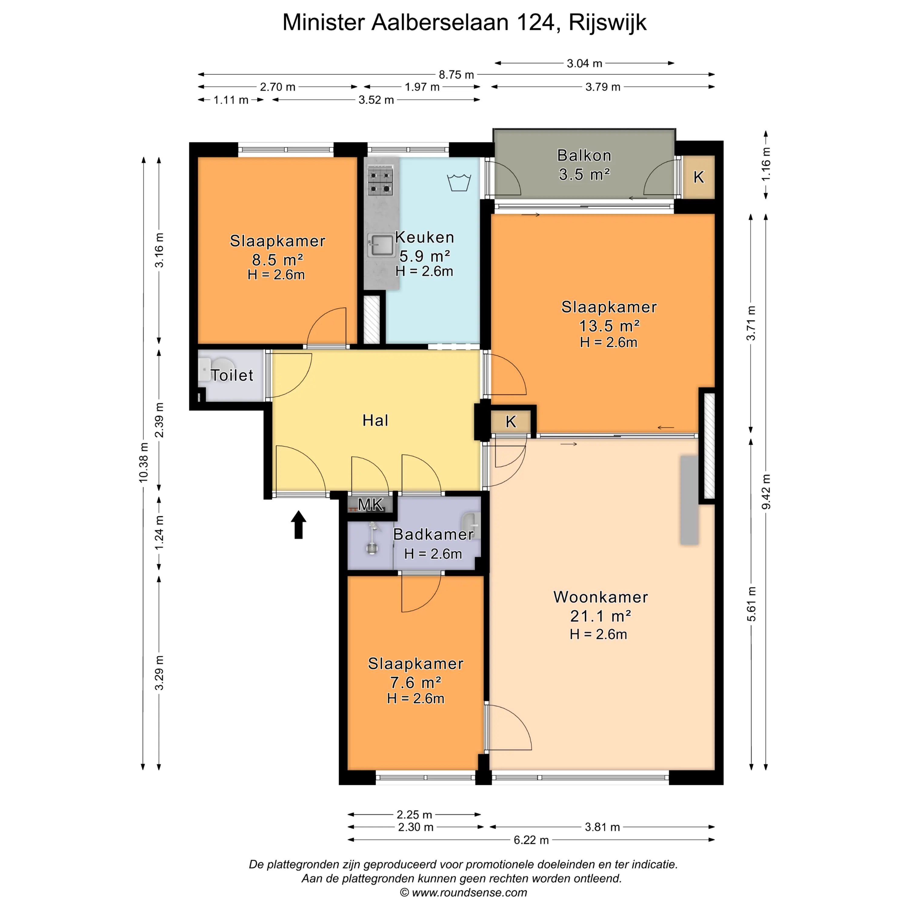 Bovenstaande informatie is door ons met de hoogst nodige zorgvuldigheid samengesteld. Door verkoper en ons kantoor wordt echter geen enkele aansprakelijkheid aanvaard voor enige onvolledigheid, onjuistheid of anderszins, dan wel de gevolgen daarvan. Alle opgegeven maten en oppervlakten zijn indicatief. De woning is gemeten met gebruikmaking van de Meetinstructie, die is gebaseerd op de normen zoals vastgelegd in NEN 2580. De Meetinstructie is bedoeld om een meer eenduidige manier van meten toe te passen voor het geven van een indicatie van gebruiksoppervlakte. De Meetinstructie sluit verschillen in meetuitkomsten niet volledig uit, door bijvoorbeeld interpretatieverschillen, afrondingen of beperkingen bij het uitvoeren van de meting. Hoewel wij de woning zorgvuldig hebben opgemeten, wordt noch door ons, noch door de verkoper enige aansprakelijkheid aanvaard voor afwijkingen in de opgegeven maten. Koper wordt in de gelegenheid gesteld om de opgegeven maten te (laten) controleren.