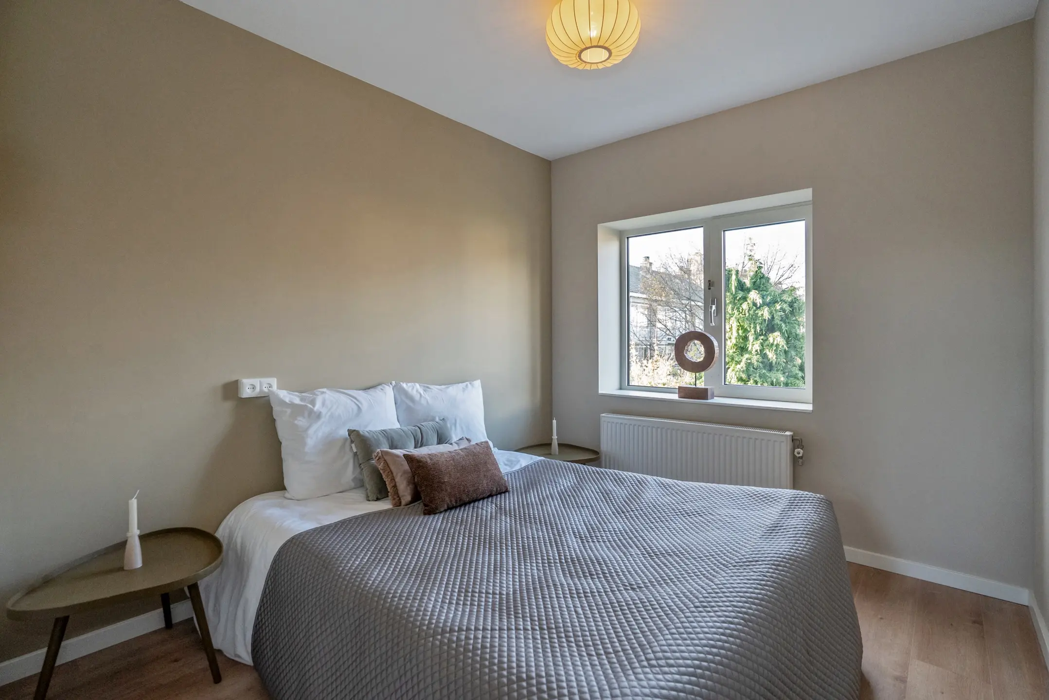 Slaapkamer 1 (achterzijde): Keurig afgewerkt met laminaatvloer.