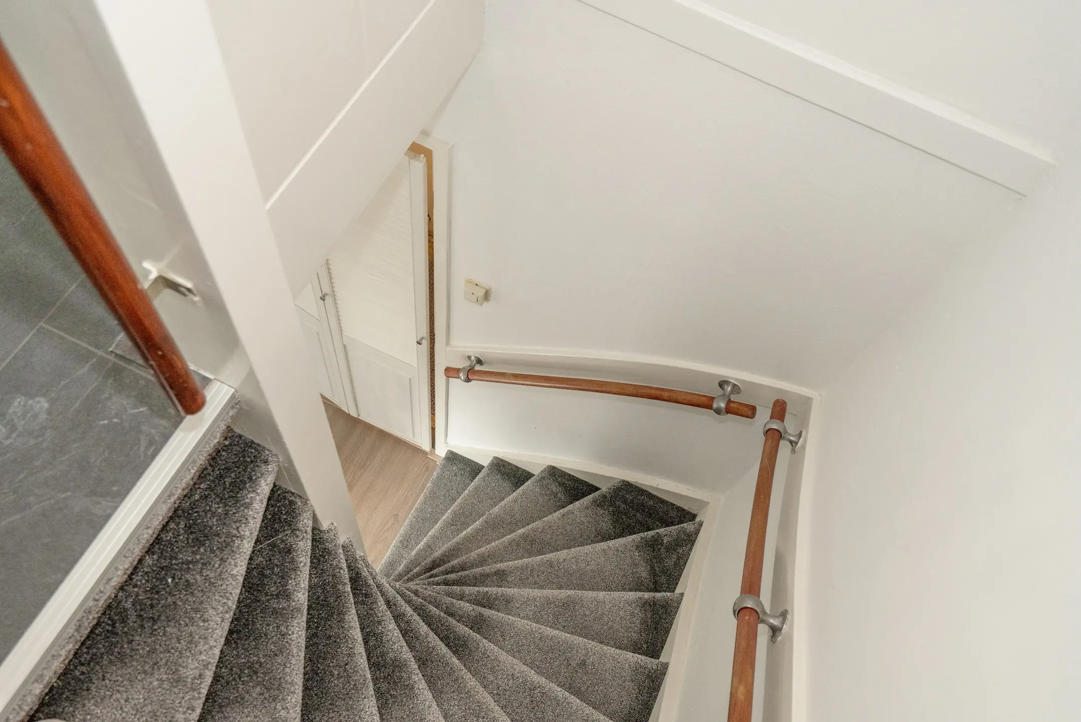 Via de voortuin bereik je de entree van de woning. De ruime hal biedt toegang tot de meterkast (7 groepen), een berging onder de trapkast en een modern toilet met fontein.