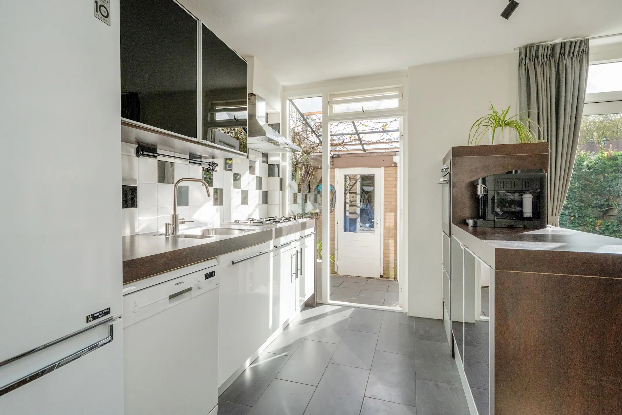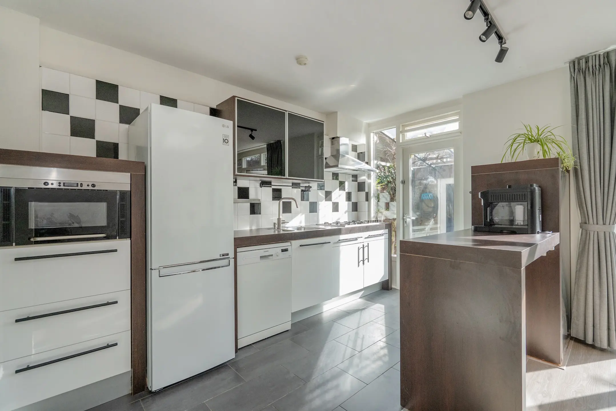De semi-open keuken is modern en compleet uitgerust met een 5-pits gasfornuis met afzuiging, oven, vaatwasser, koel-/vriescombinatie, magnetron en een opstelplaats voor de cv-ketel (Remeha, 2022).