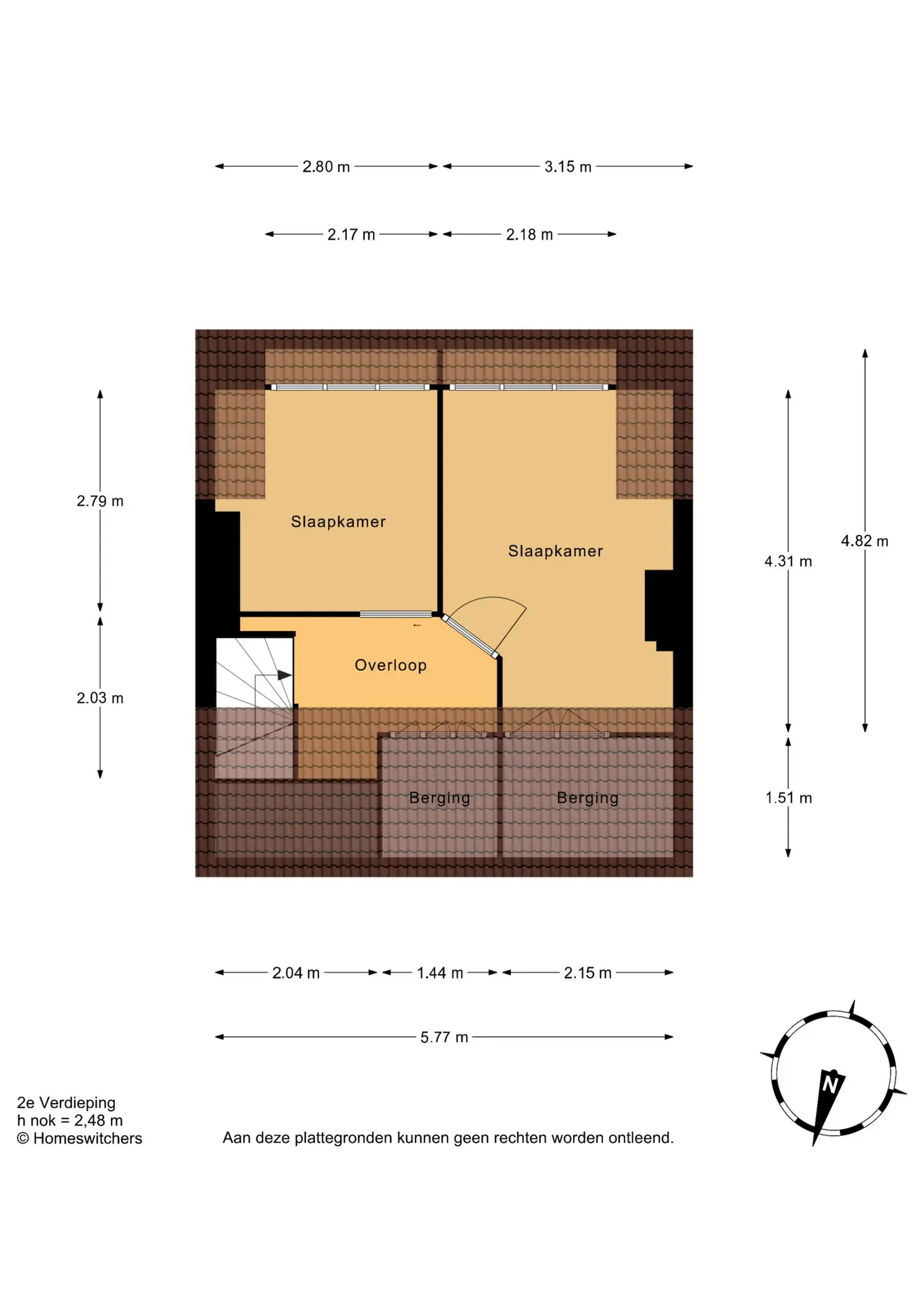 The second floor is accessible via a fixed staircase. Here you will find a landing with storage space behind the knee walls and two bedrooms, both with dormer windows and laminate flooring.