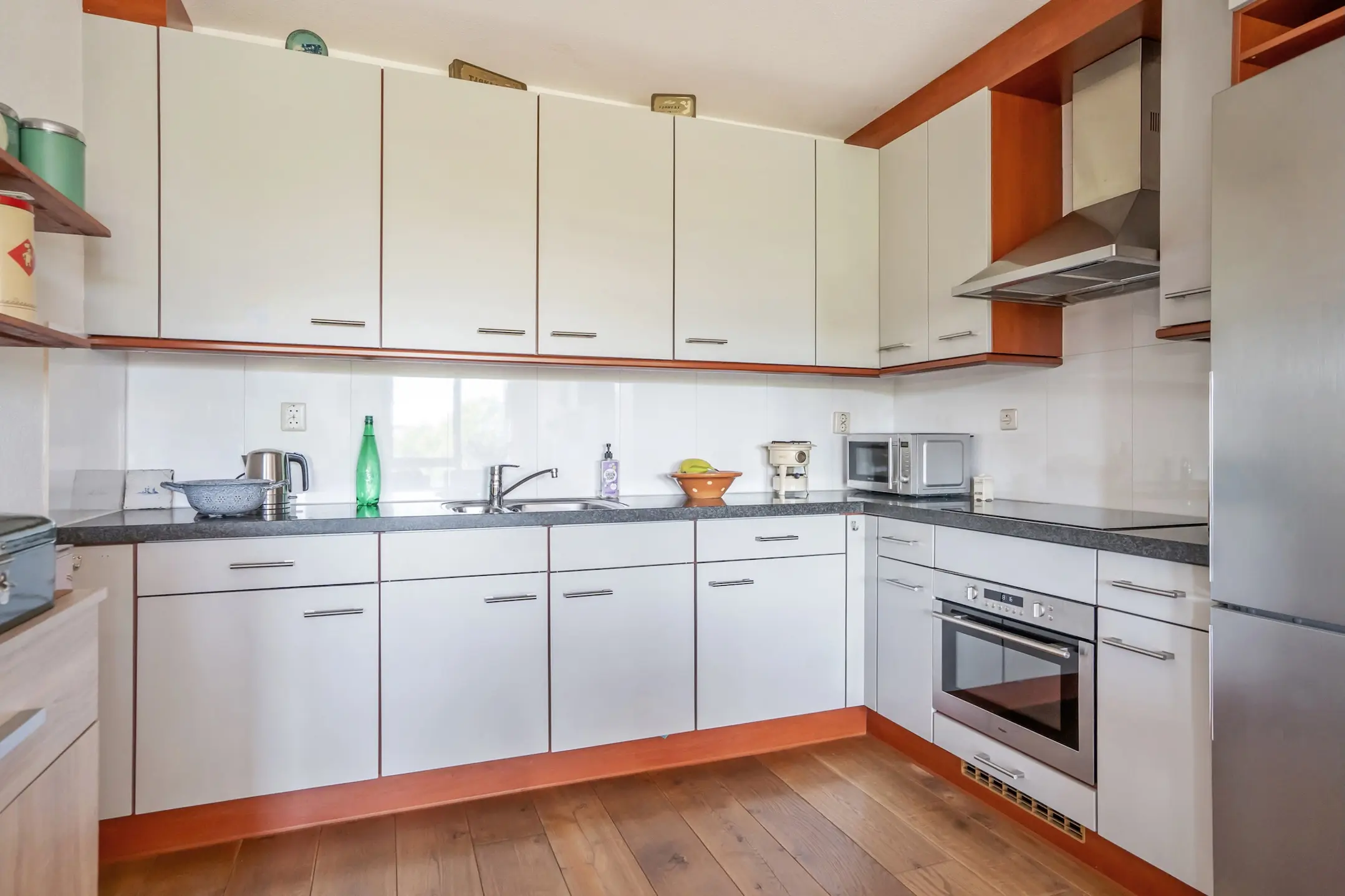 • Houten vloeren in het grootste deel van de woning. In de beide slaapkamers ligt net laminaat;