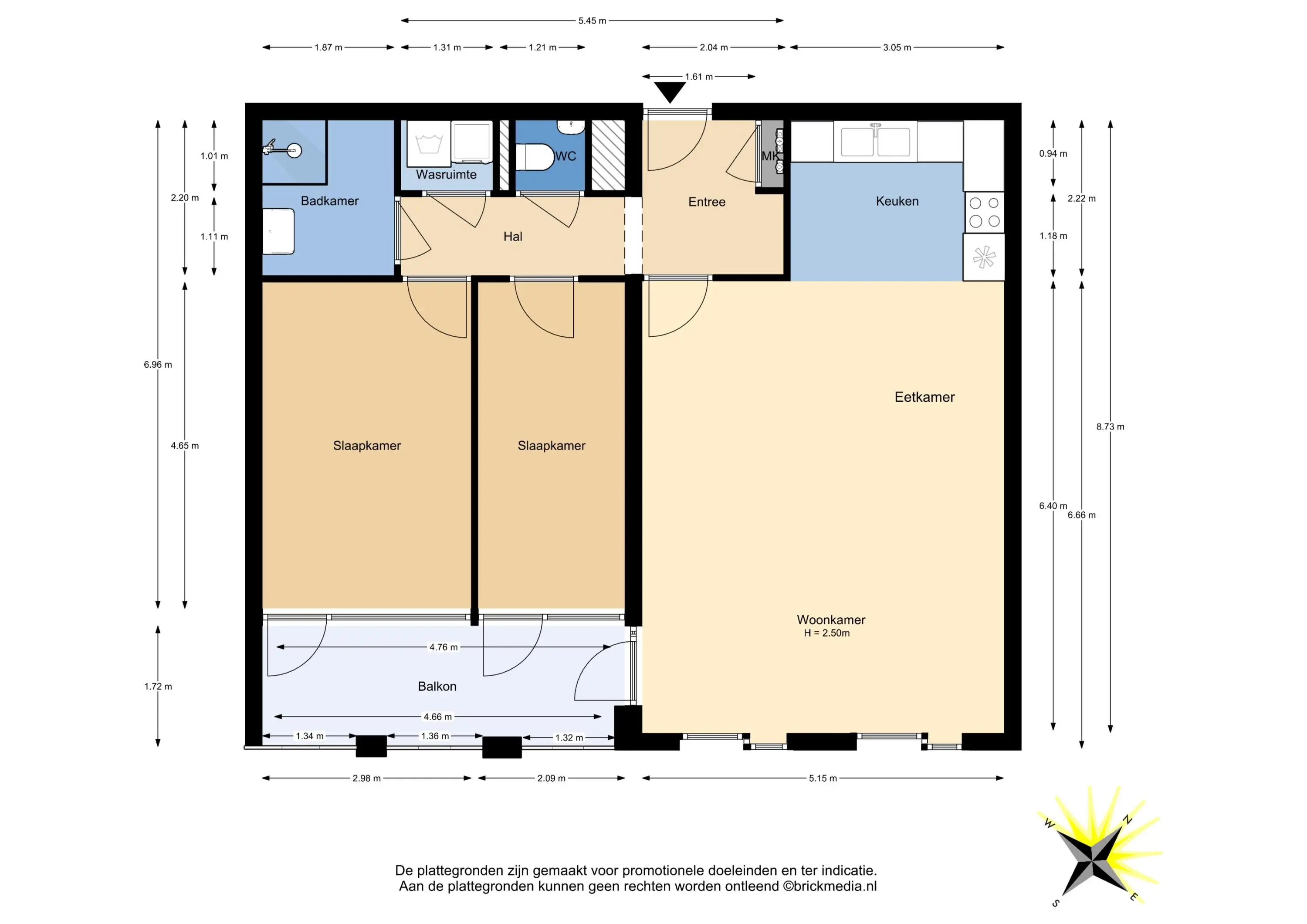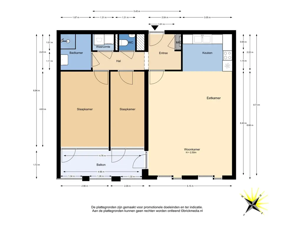 Bovenstaande informatie is door ons met de hoogst nodige zorgvuldigheid samengesteld. Door ons wordt echter geen enkele aansprakelijkheid aanvaard voor enige onvolledigheid, onjuistheid of anderszins, dan wel de gevolgen daarvan. Alle opgegeven maten en oppervlakten zijn indicatief. De woning is gemeten met gebruikmaking van de Meetinstructie, die is gebaseerd op de normen zoals vastgelegd in NEN 2580. De Meetinstructie is bedoeld om een meer eenduidige manier van meten toe te passen voor het geven van een indicatie van gebruiksoppervlakte. De Meetinstructie sluit verschillen in meetuitkomsten niet volledig uit, door bijvoorbeeld interpretatieverschillen, afrondingen of beperkingen bij het uitvoeren van de meting. Hoewel wij de woning zorgvuldig hebben opgemeten, wordt noch door ons kantoor, noch door de verkoper enige aansprakelijkheid aanvaard voor afwijkingen in de opgegeven maten. Koper wordt in de gelegenheid gesteld om de opgegeven maten te (laten) controleren.