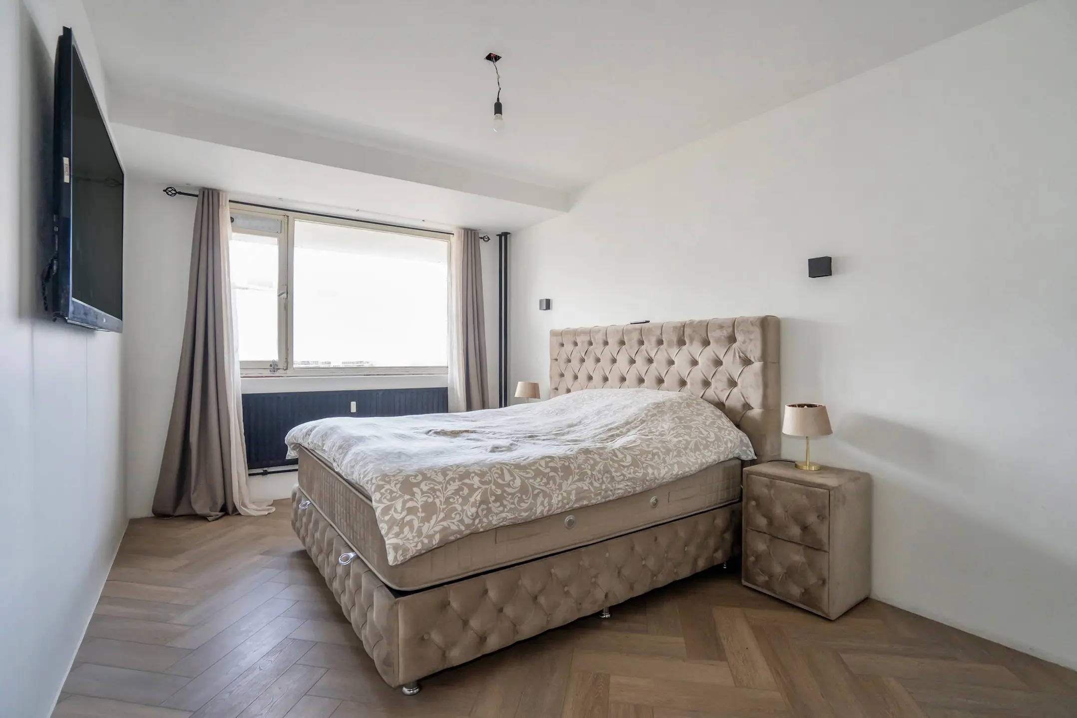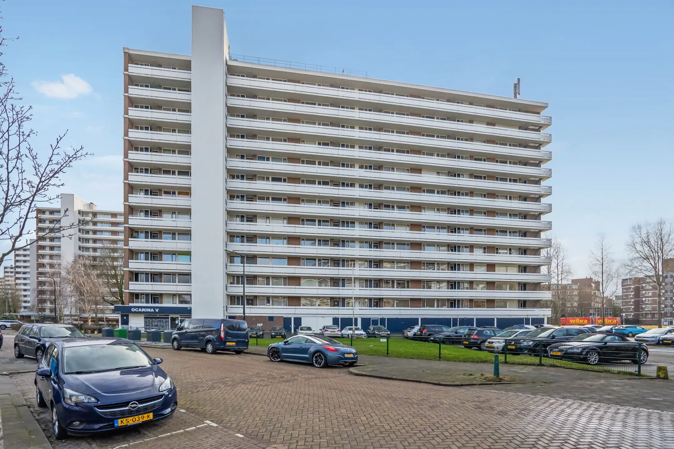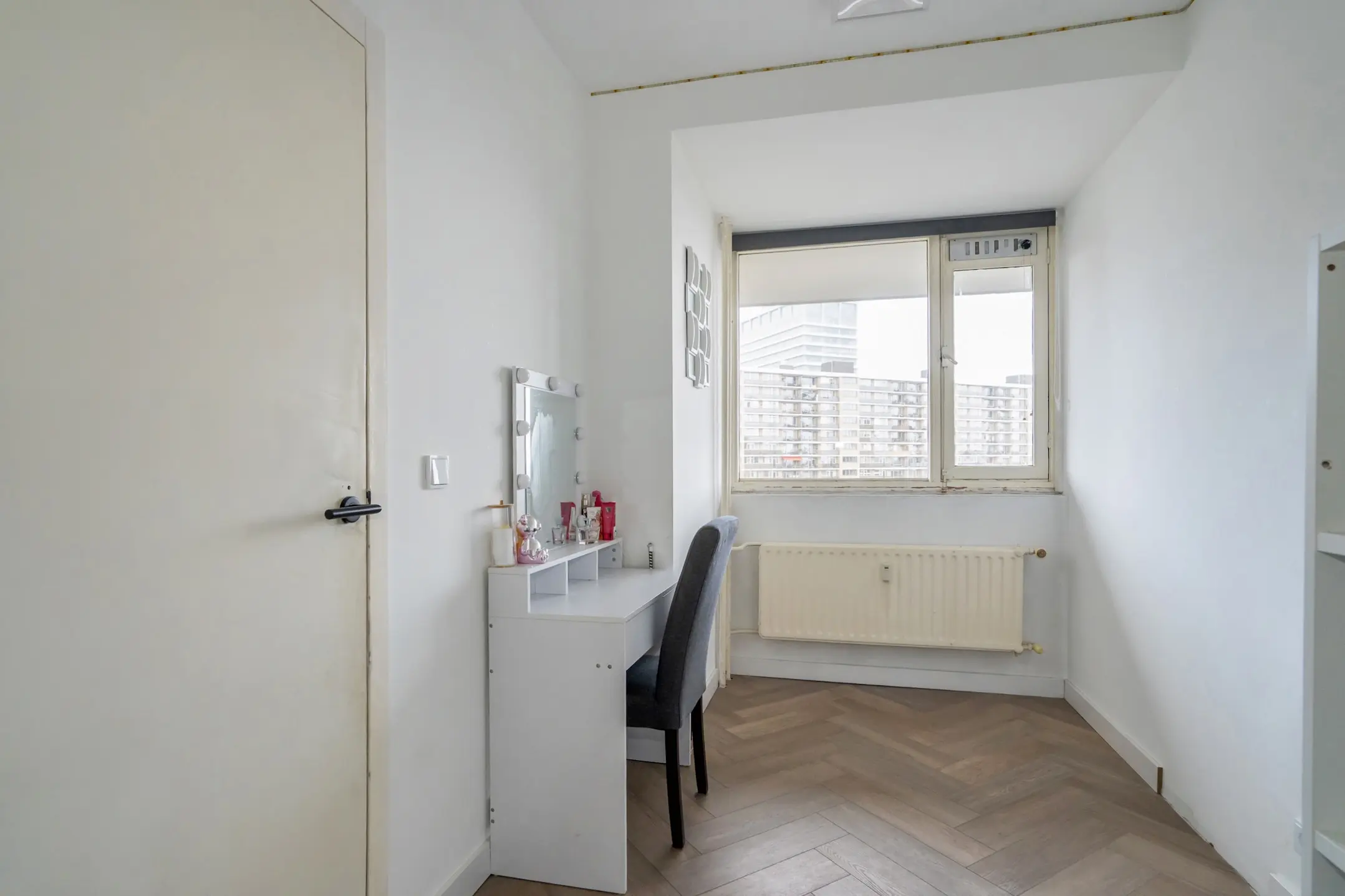 Afgesloten hoofdentree met brievenbussen, bellentableau en camera's, liften en trappenhuis, toegang tot de woning op de 6e verdieping, tochthalletje, ruime hal in open verbinding met de doorgebroken woon-/eetkamer (oorspronkelijk 2 kamers) met open woonkeuken. Door de royale maatvoering veel inrichtingsmogelijkheden. Deur naar het balkon op het zuiden, zeembalkon en twee zonneschermen.