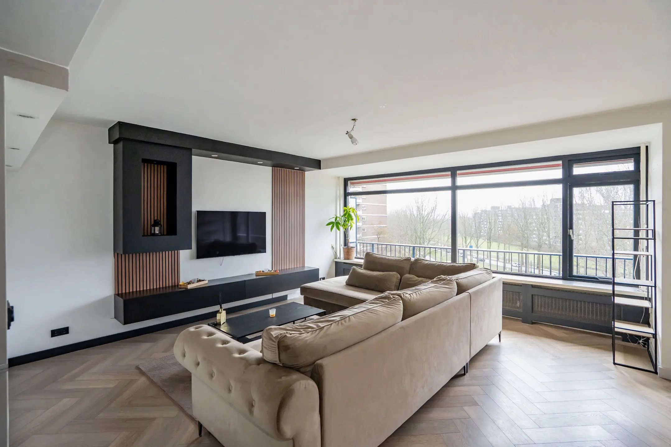Zeer fraai op de hoek gelegen royaal 4-kamer (van oorsprong 5-kamer) appartement met lift, balkon op het zuiden en