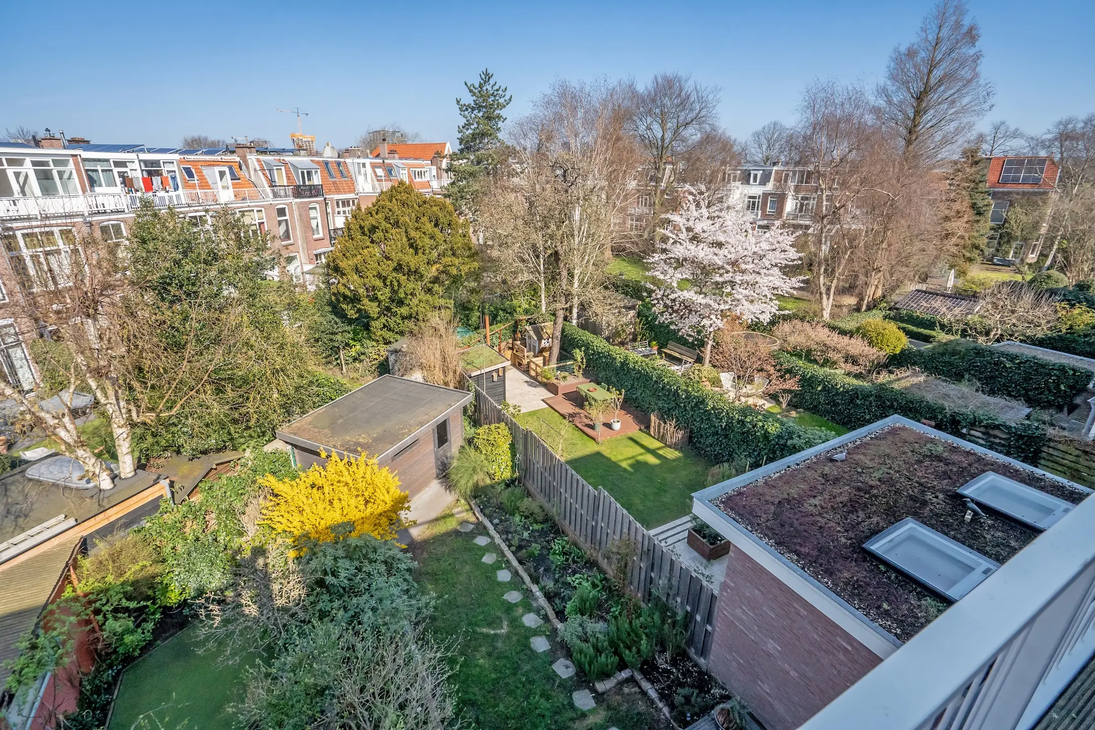Deep, well-landscaped rear garden with a large, newly built wooden shed. Electrically operated sunshade.