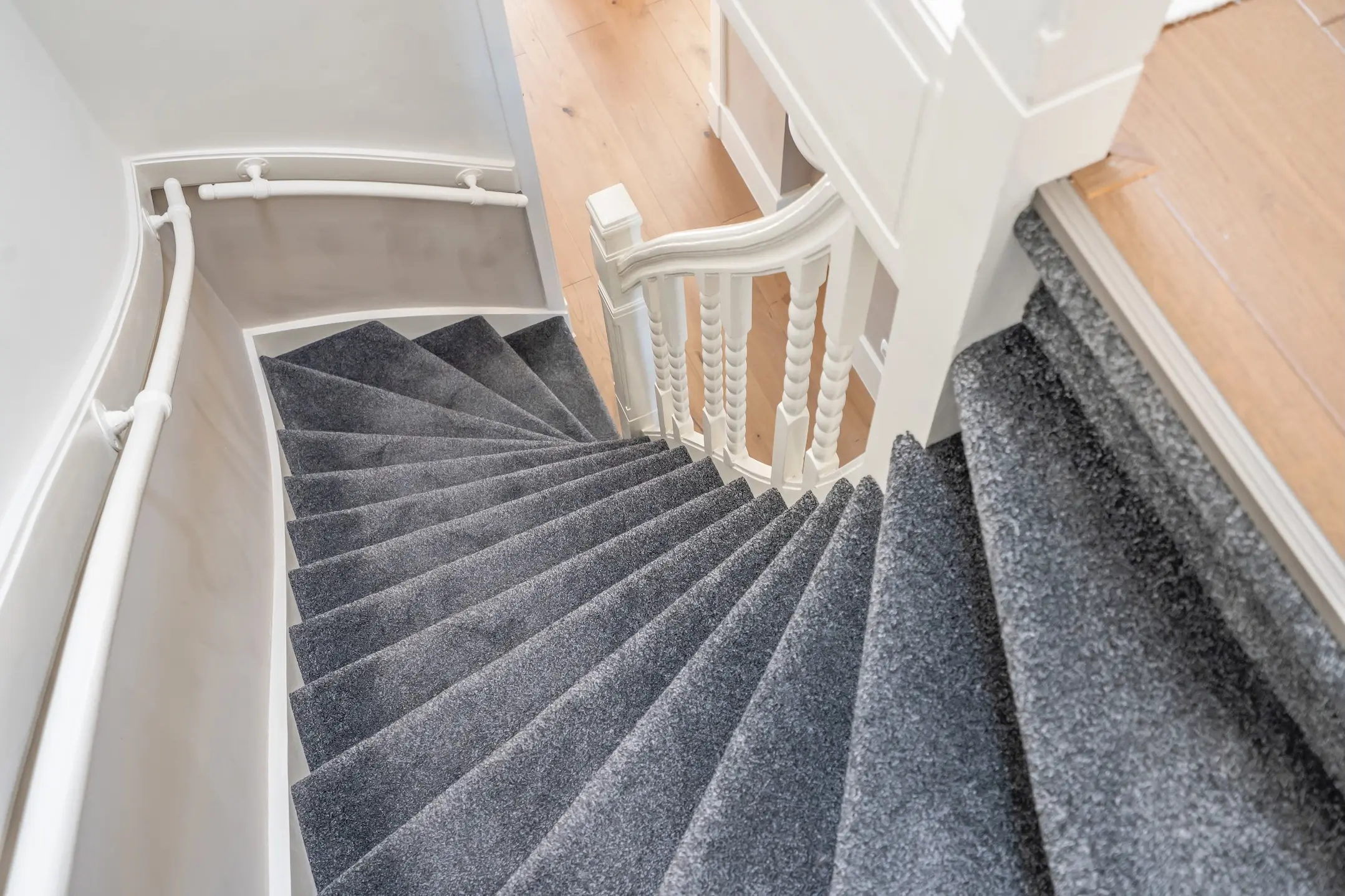 First floor: spacious landing with a small sink. This floor has three rooms, including two very large bedrooms, both with built-in wardrobes and high ceilings. The front room has double doors leading to the balcony.