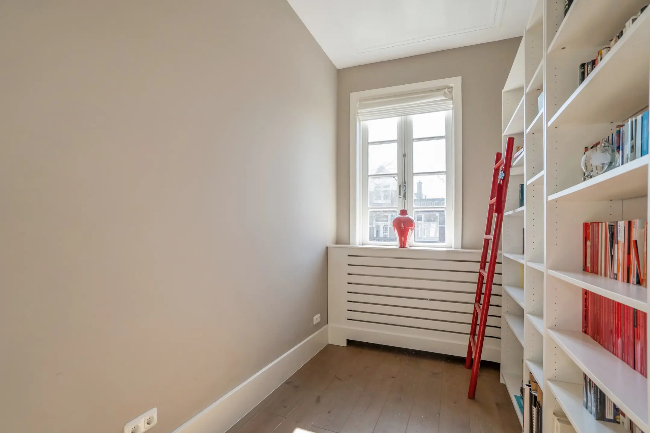 Voorzijkamer met vaste kast. Fraai uitgevoerde badkamer met een vrijstaand ligbad, een ruime "Industrieel" vormgegeven inloopdouche met een Rainshower alsmede een dubbel wastafelmeubel. Vanwege een groot raam veel natuurlijk licht!