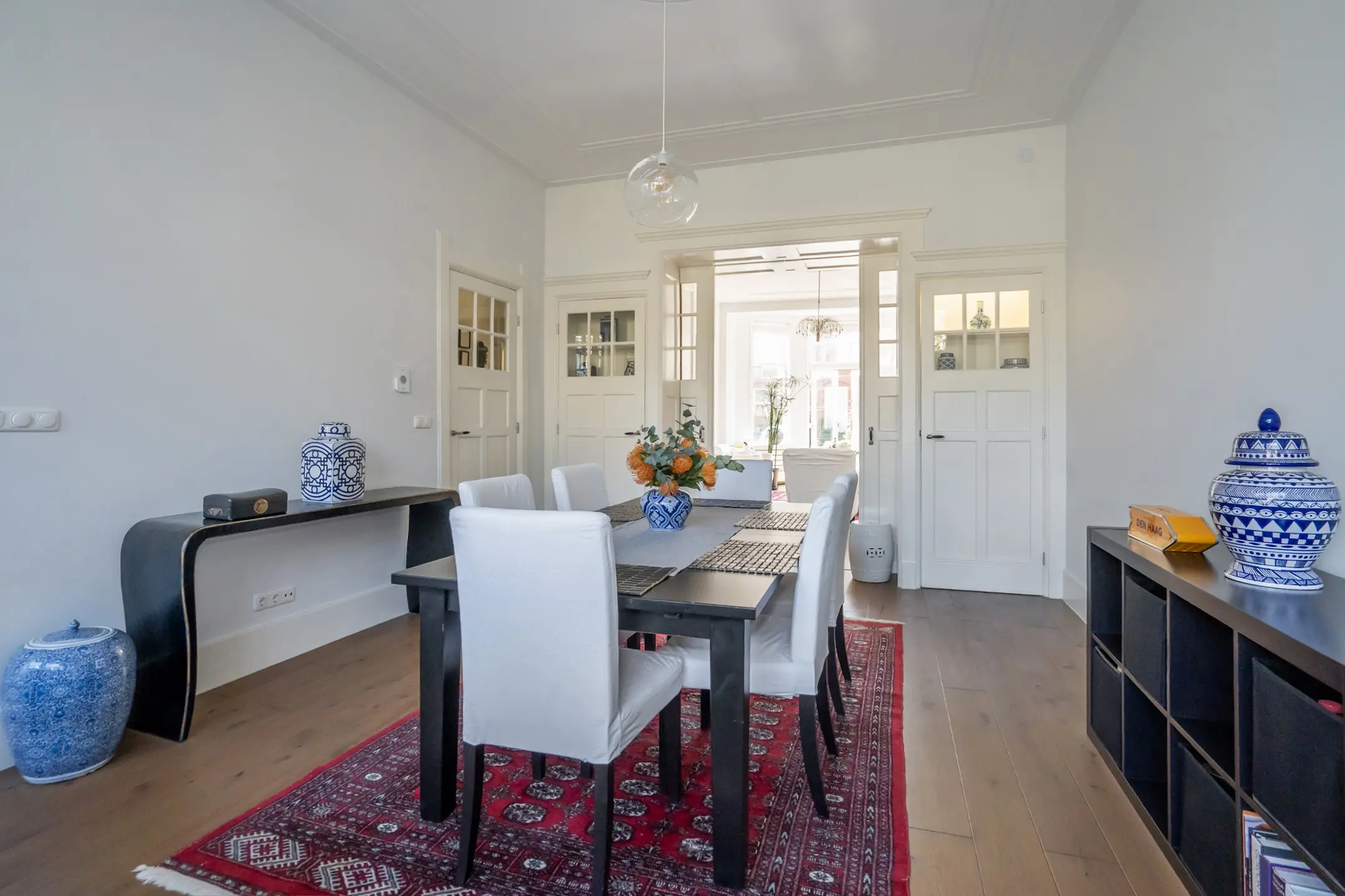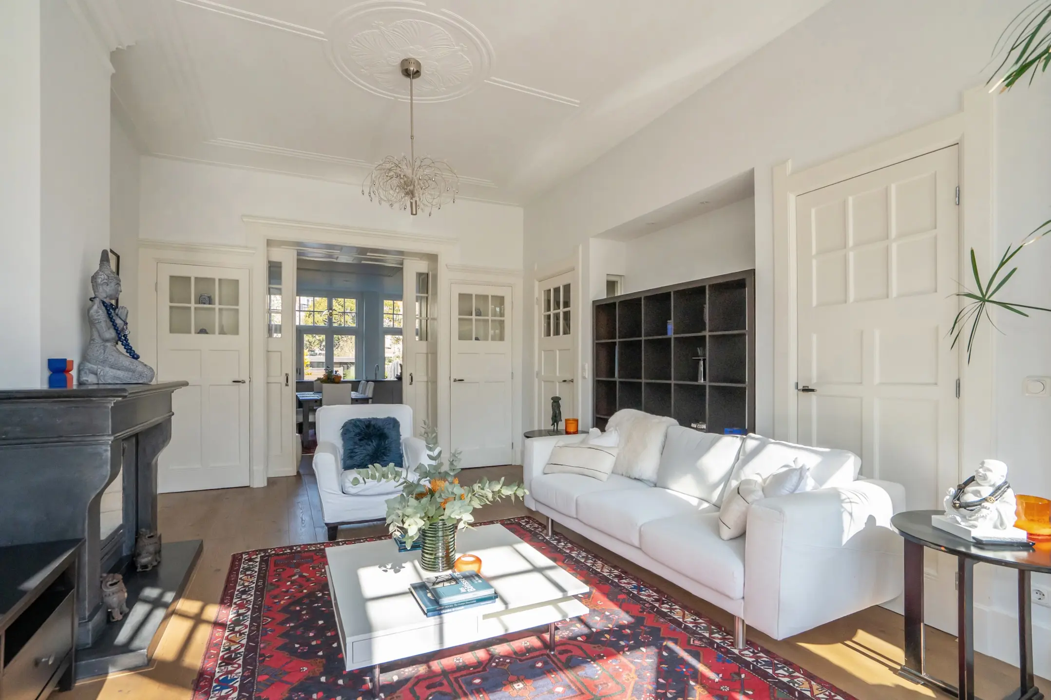 - veel authentieke details behouden zoals de paneeldeuren, hoge plafonds met sierlijsten enz.;