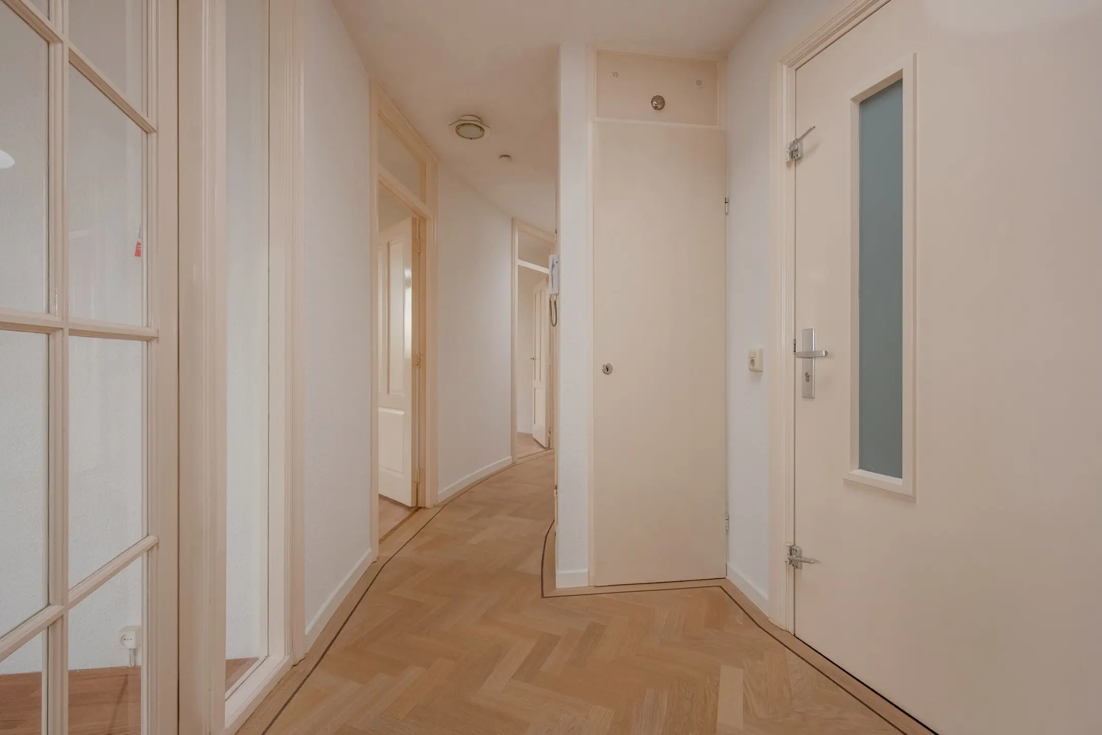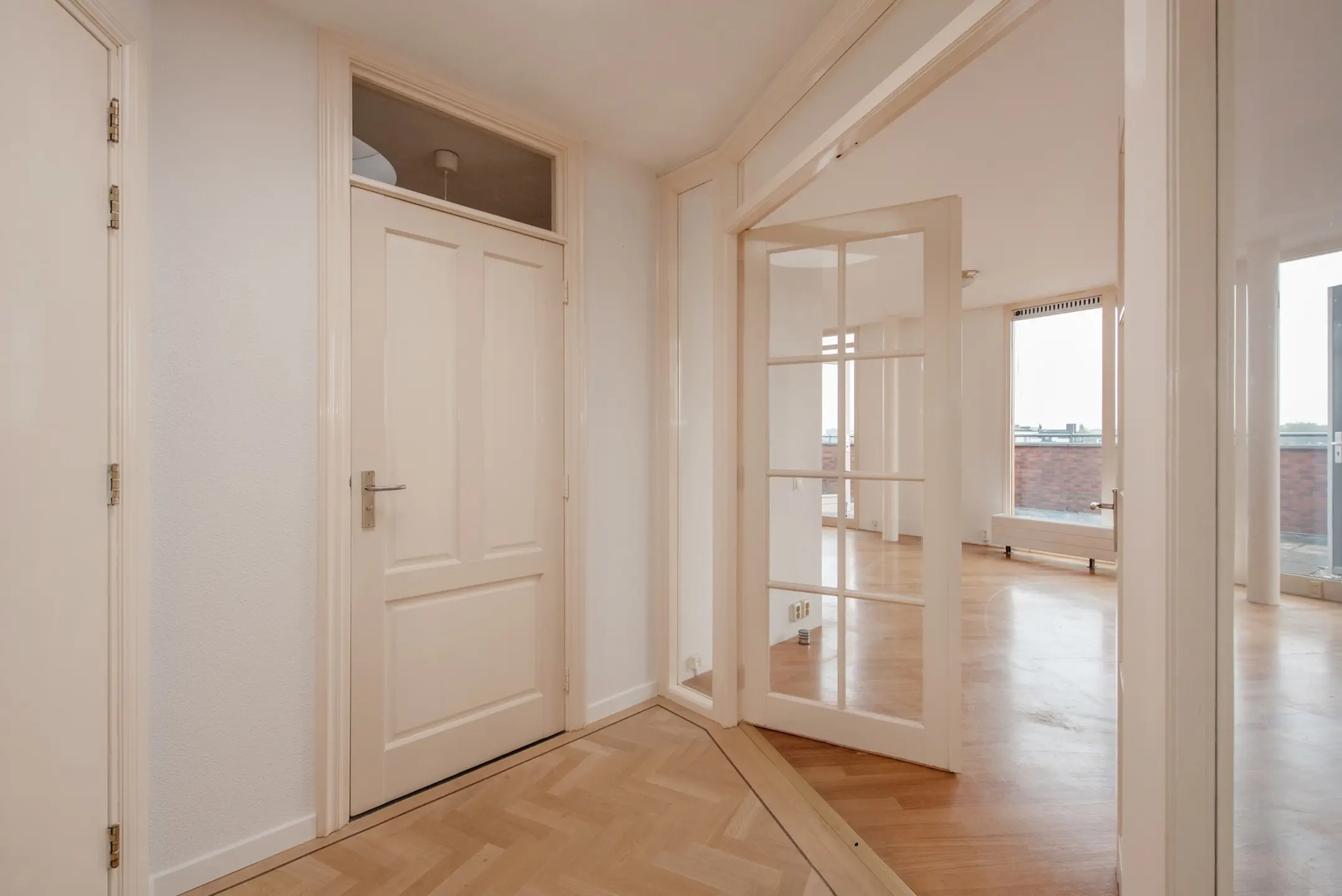 Toegang tot het complex middels een afgesloten, op afstand te openen hekwerk, betegelde binnenplaats met een gezellig bankje, gemeenschappelijke fietsenstalling en toegang tot het afgesloten hoofdentree voorzien van brievenbussen en bellentableau. Centrale hal met lift en trappenhuis. Entree woning op de 6e verdieping (slechts 2 woningen op deze etage).