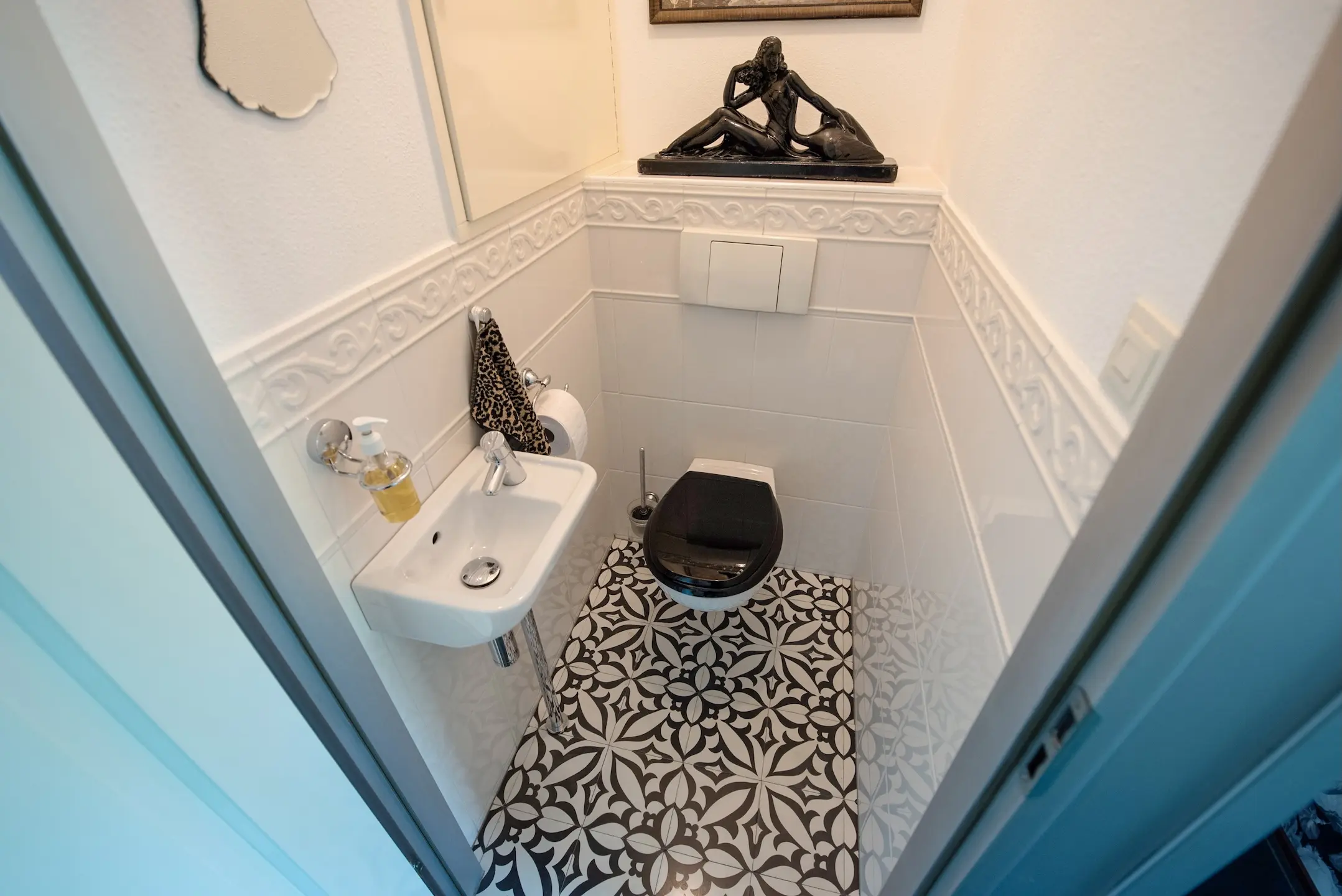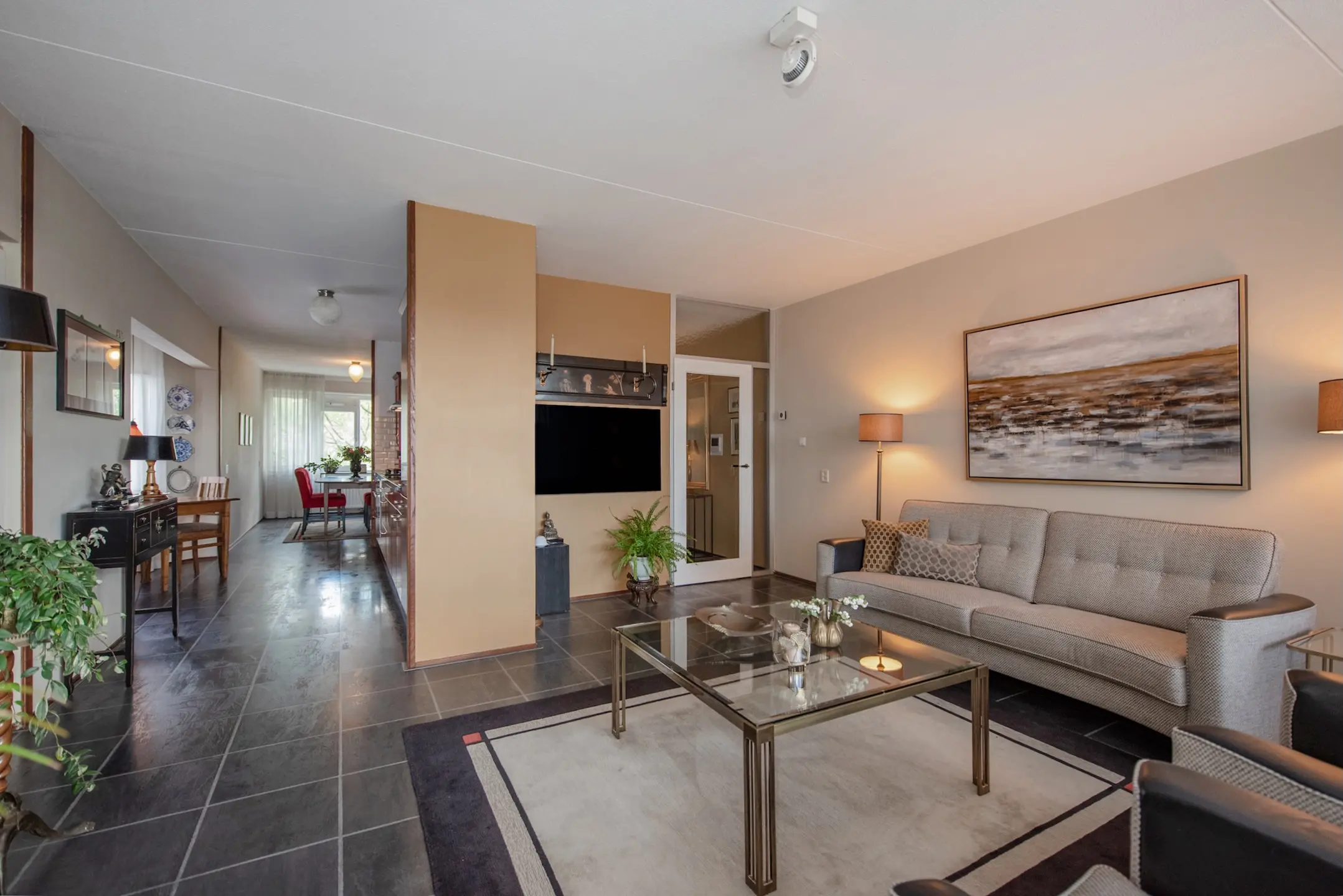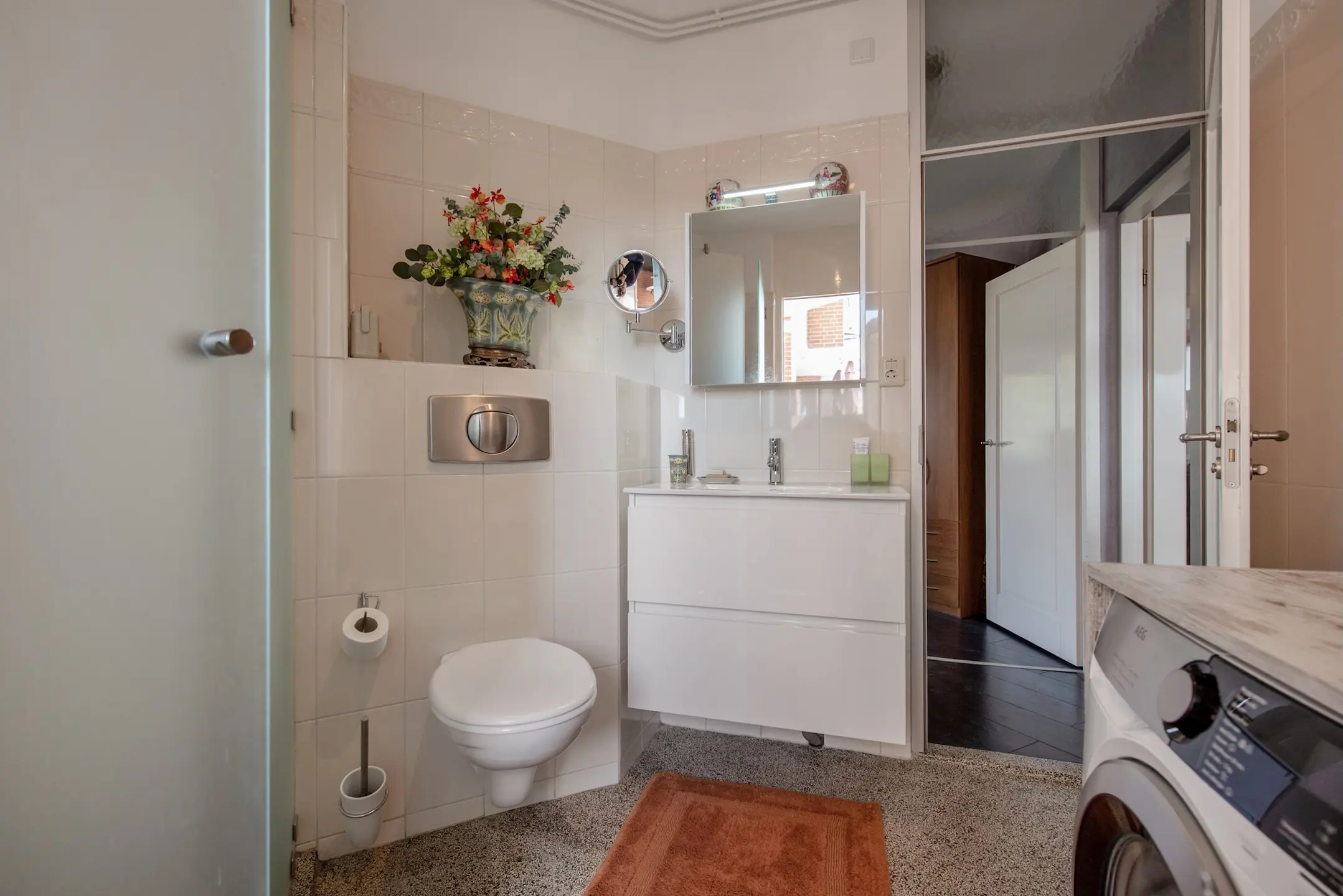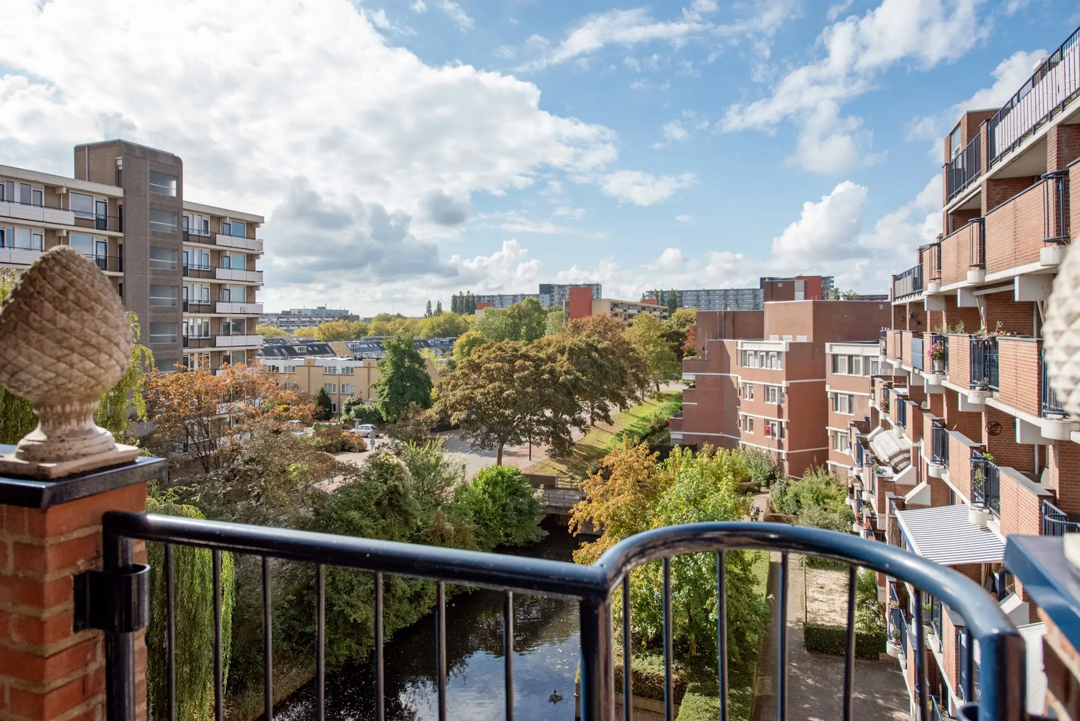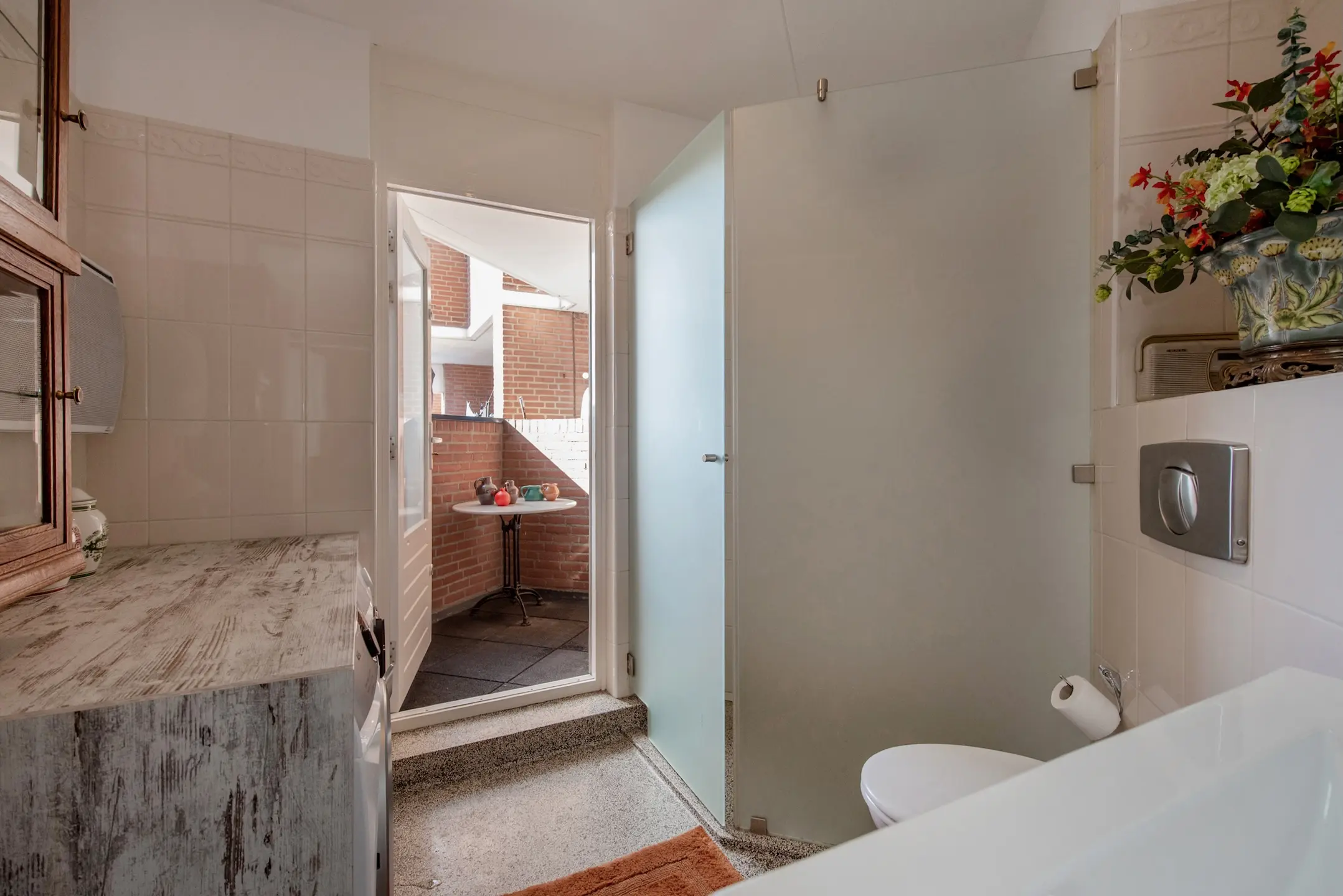 Bij binnenkomst in de woning treft u een ruime hal met toegang tot de meterkast, een praktische bergkast en een modern, separaat toilet met fontein. Vanuit de hal loopt u door naar de royale, achtergelegen woonkamer. Deze is heerlijk licht, voorzien van tapijt en biedt direct toegang tot het ruime, zonnige balkon met elektrisch bedienbare zonwering – dé plek om tot in de late uurtjes te genieten van de zon.