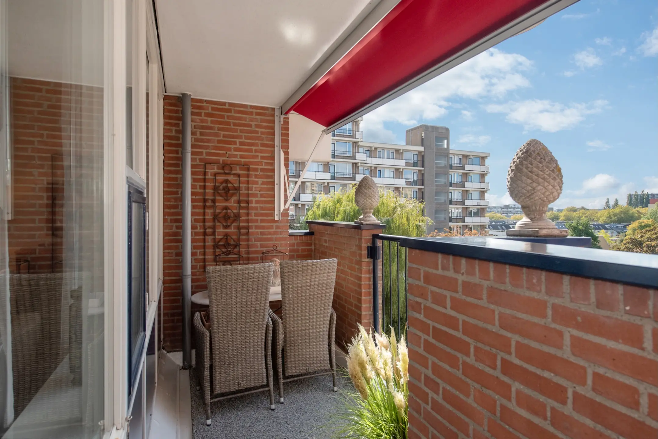 Op de vierde verdieping van een verzorgd appartementencomplex met lift en gesloten entree met brievenbussen, bellentableau en videofoon, ligt dit verrassend ruime 4-/5-kamerappartement. Een heerlijk licht en praktisch ingedeelde woning met royale living, groot balkon op het zuidwesten en eigen overdekte parkeerplaats.