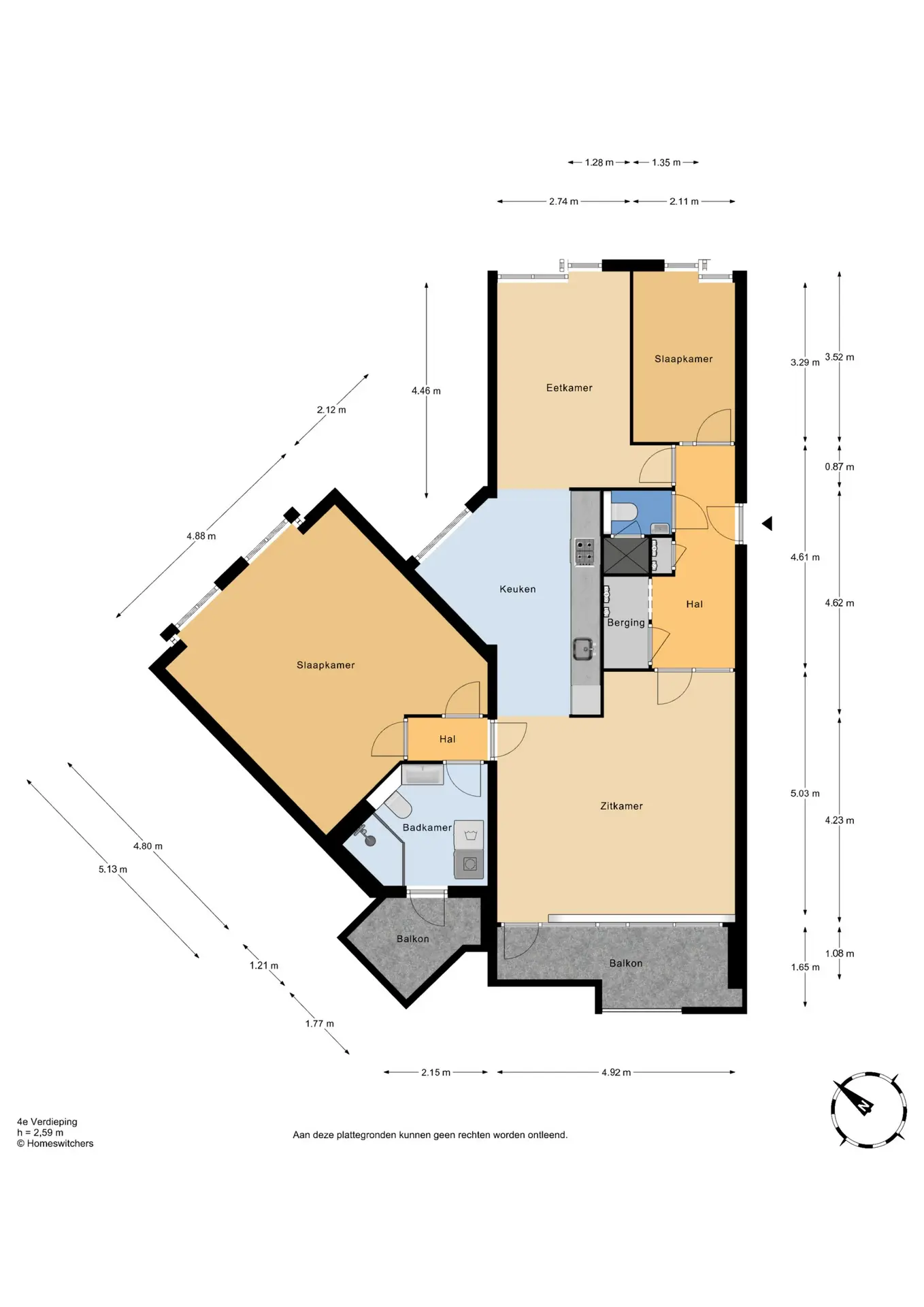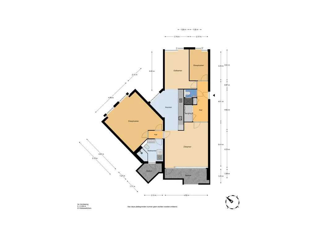 Bovenstaande informatie is door ons met de hoogst nodige zorgvuldigheid samengesteld. Door ons wordt echter geen enkele aansprakelijkheid aanvaard voor enige onvolledigheid, onjuistheid of anderszins, dan wel de gevolgen daarvan. Alle opgegeven maten en oppervlakten zijn indicatief. De woning is gemeten met gebruikmaking van de Meetinstructie, die is gebaseerd op de normen zoals vastgelegd in NEN 2580. De Meetinstructie is bedoeld om een meer eenduidige manier van meten toe te passen voor het geven van een indicatie van gebruiksoppervlakte. De Meetinstructie sluit verschillen in meetuitkomsten niet volledig uit, door bijvoorbeeld interpretatieverschillen, afrondingen of beperkingen bij het uitvoeren van de meting. Hoewel wij de woning zorgvuldig hebben opgemeten, wordt noch door ons kantoor, noch door de verkoper enige aansprakelijkheid aanvaard voor afwijkingen in de opgegeven maten. Koper wordt in de gelegenheid gesteld om de opgegeven maten te (laten) controleren.