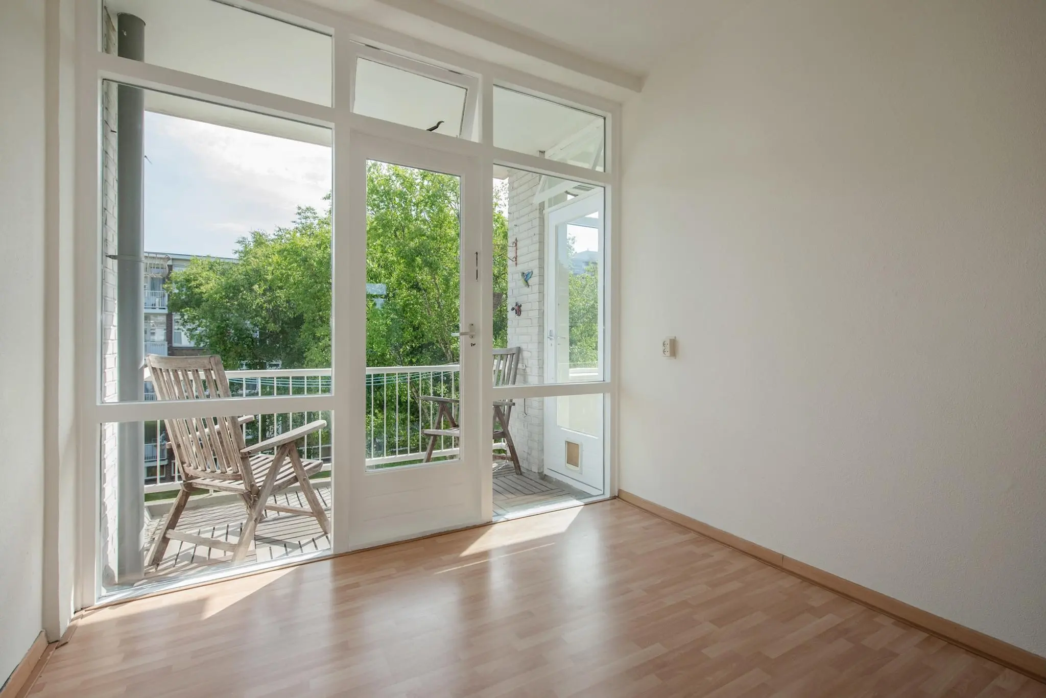 Beide slaapkamers zijn voorzien van laminaatvloeren. Vanuit één van de slaapkamers heb je directe toegang tot het balkon met uitzicht op de groene binnentuin.