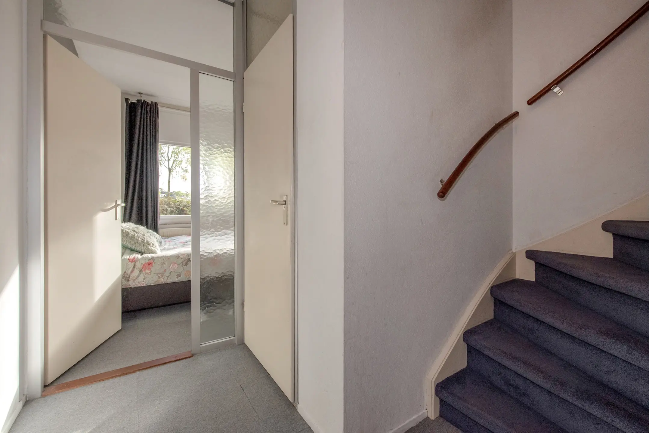 Indeling: portiek, entree woning op de begane grond, hal, meterkast, bergruimte onder de trap, voorgelegen hoofdslaapkamer, keurige badkamer met doucheruimte, design radiator, wastafelmeubel en mechanische ventilatie.