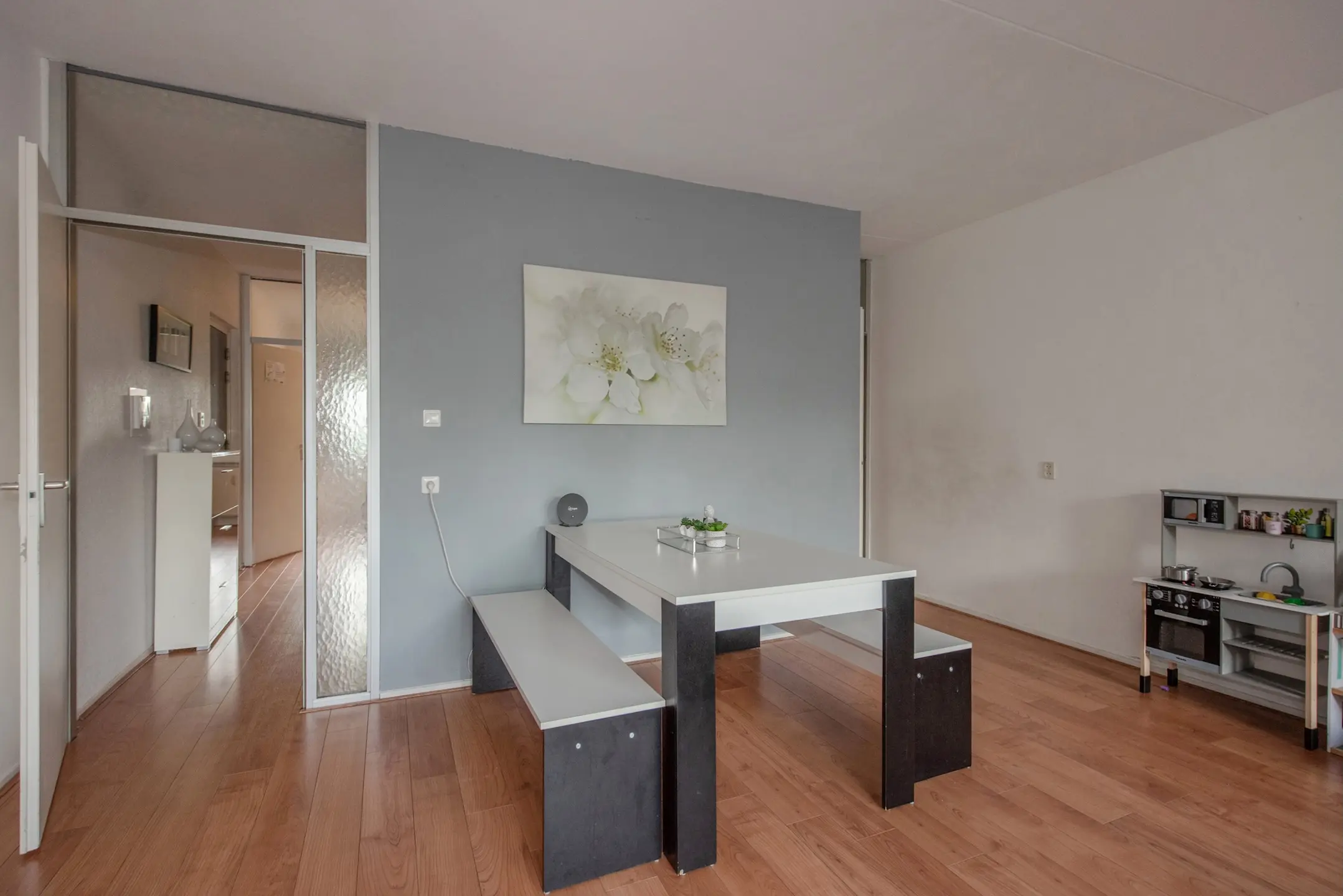 Dit appartement beschikt o.a. over een MOOI formaat woon-/eetkamer met aangrenzend gelegen ZONNIG balkon/terras (ZW), nette keuken met diverse inbouwapparatuur, 2 slaapkamers, een KEURIGE badkamer en eigen BERGING.
