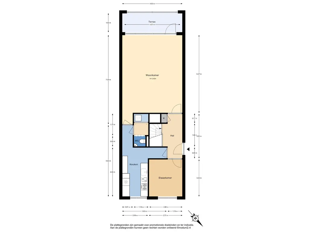 Bovenstaande informatie is door ons met de hoogst nodige zorgvuldigheid samengesteld. Door ons wordt echter geen enkele aansprakelijkheid aanvaard voor enige onvolledigheid, onjuistheid of anderszins, dan wel de gevolgen daarvan. Alle opgegeven maten en oppervlakten zijn indicatief. De woning is gemeten met gebruikmaking van de Meetinstructie, die is gebaseerd op de normen zoals vastgelegd in NEN 2580. De Meetinstructie is bedoeld om een meer eenduidige manier van meten toe te passen voor het geven van een indicatie van gebruiksoppervlakte. De Meetinstructie sluit verschillen in meetuitkomsten niet volledig uit, door bijvoorbeeld interpretatieverschillen, afrondingen of beperkingen bij het uitvoeren van de meting. Hoewel wij de woning zorgvuldig hebben opgemeten, wordt noch door ons kantoor, noch door de verkoper enige aansprakelijkheid aanvaard voor afwijkingen in de opgegeven maten. Koper wordt in de gelegenheid gesteld om de opgegeven maten te (laten) controleren.