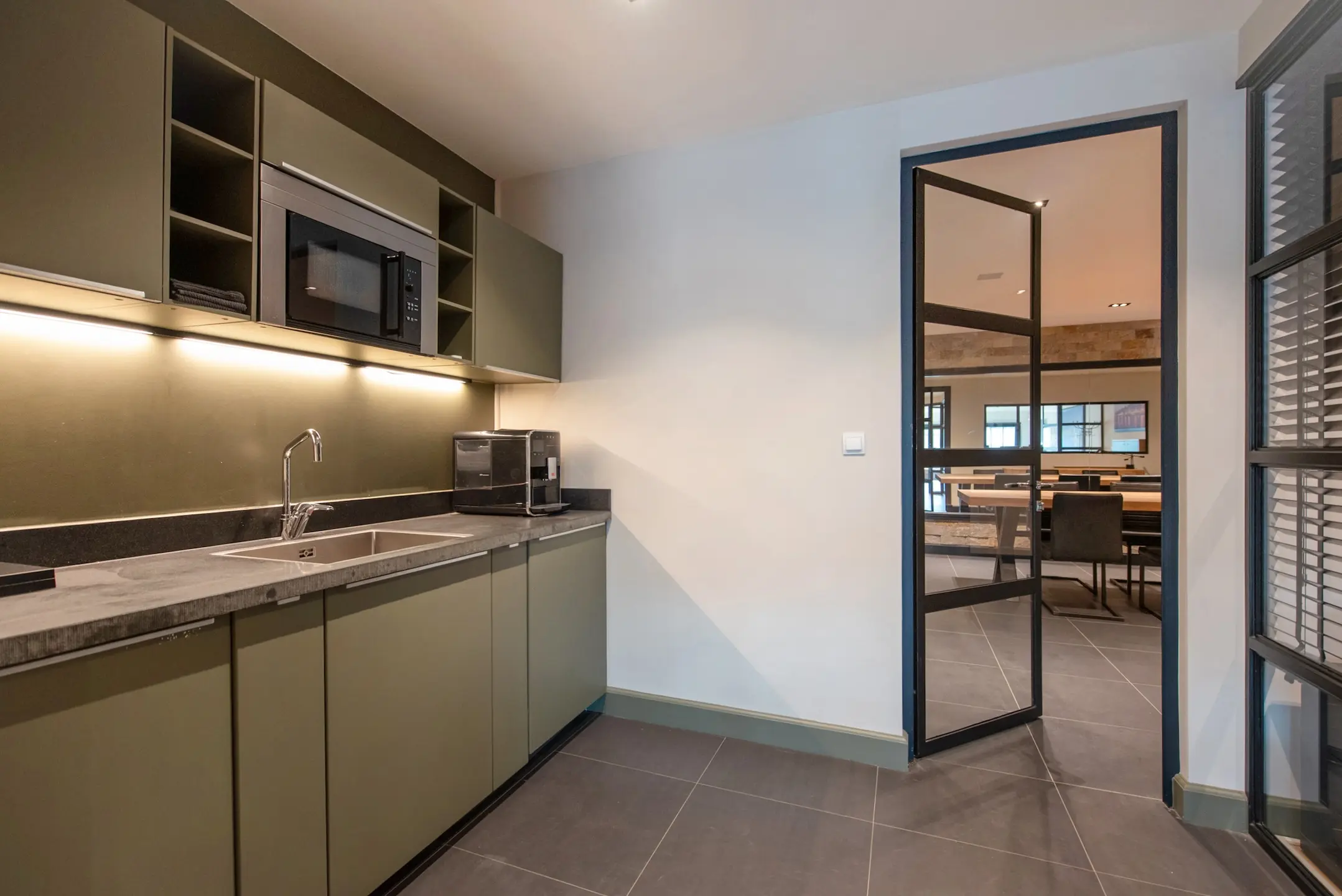 Drie stijlvolle vergaderruimtes/kantoren, voorzien van houten vloeren en inbouwspots