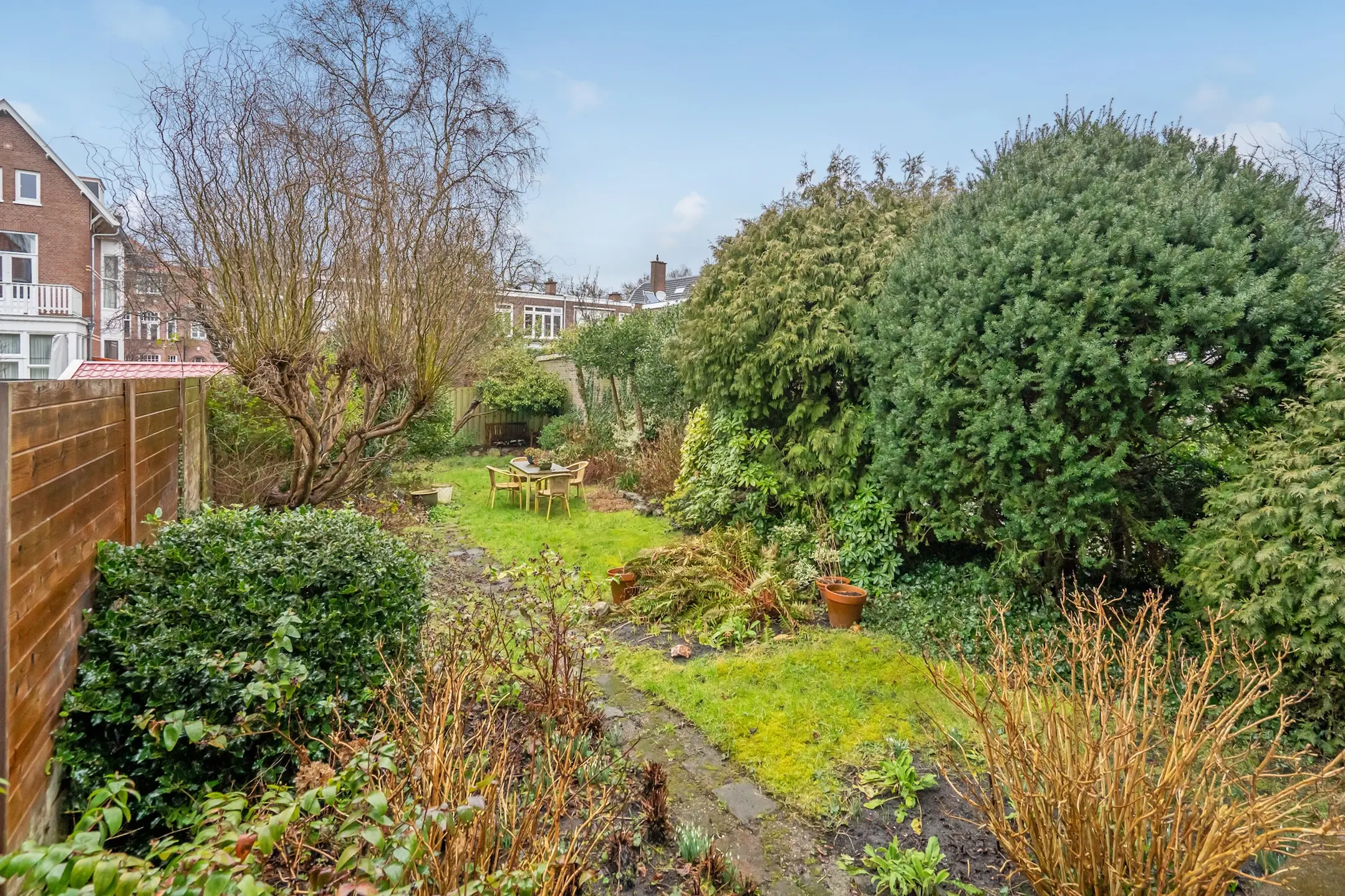Fantastische achtertuin met veel privacy. Door de lengte van deze tuin is er altijd een zonnig of een schaduwrijk plekje te vinden.