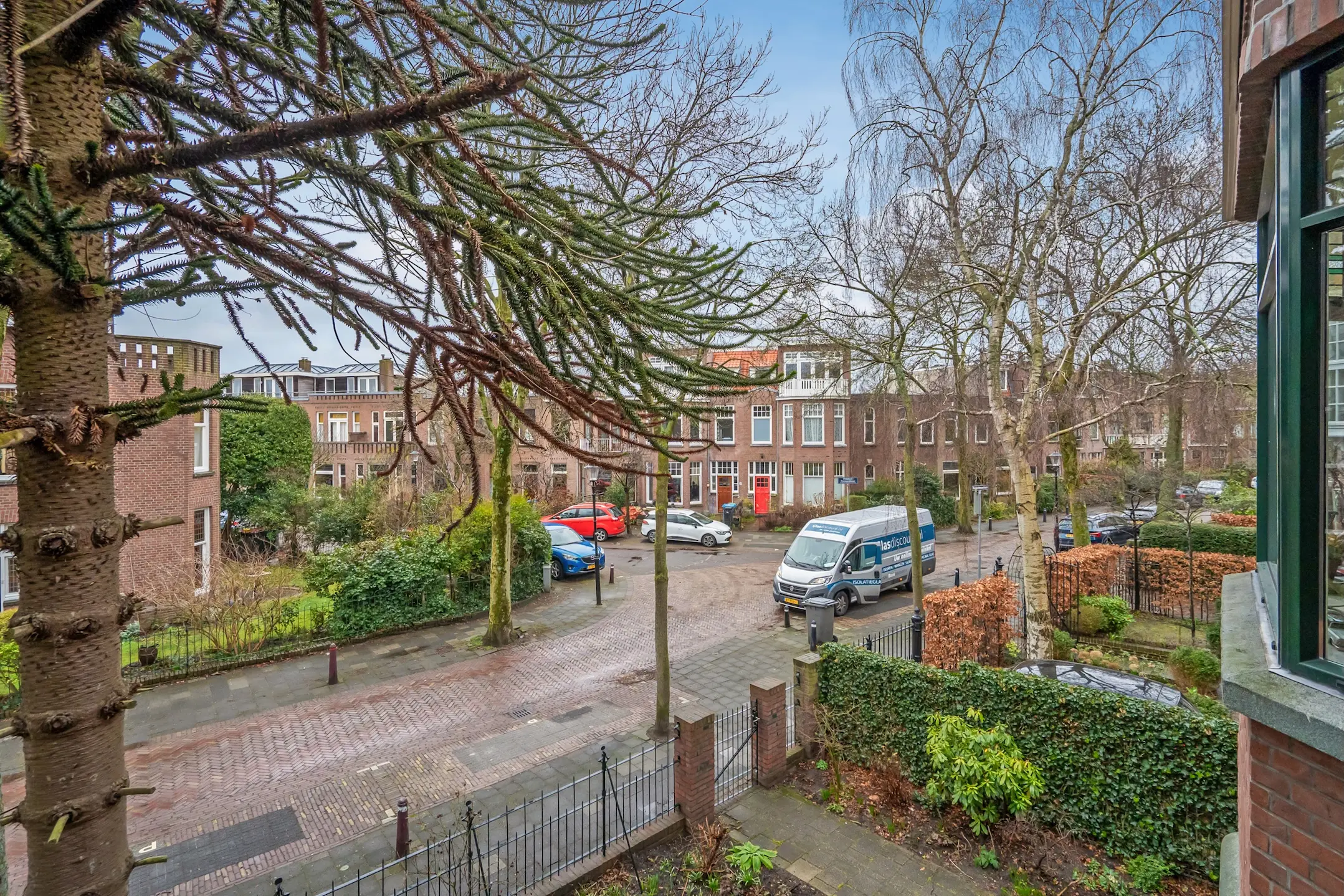 Aan een fraaie, boomrijke laan in het gewilde Rijswijkse "Leeuwendaal" gelegen prachtige dertigerjaren twee-onder-een kapwoning met voor-, zij en achtertuin van meer dan 20.00 meter diep!