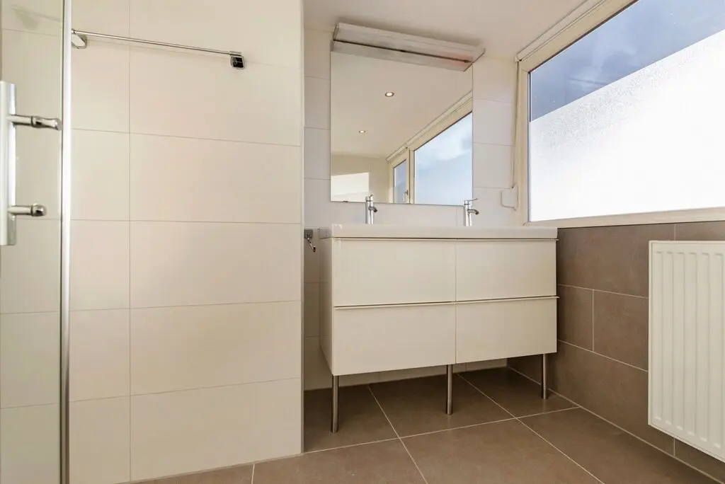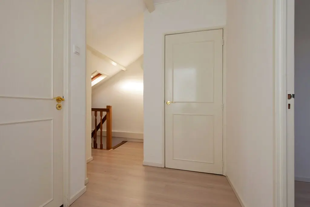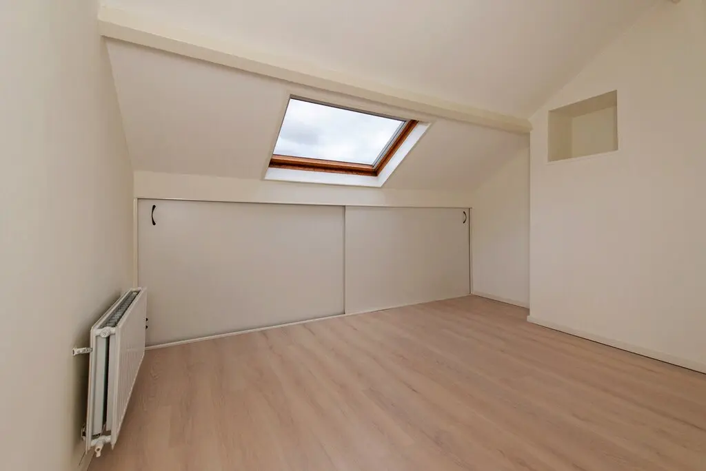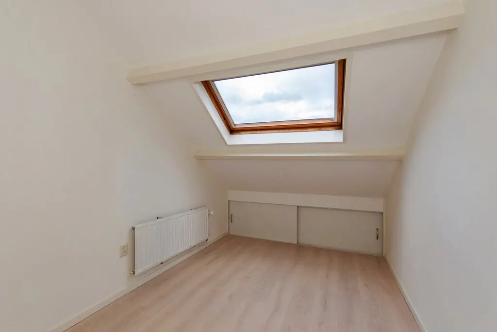 Vanaf de woonkeuken toegang tot de royale zolderetage. Overloop met Velux dakraam en opbergruimte, vaste kast alwaar de wasmachine, wasdroger en cv ketel staan opgesteld. Voorgelegen 2e slaapkamer met Velux dakraam, 3e voorgelegen slaapkamer met Velux dakraam achtergelegen hoofdslaapkamer met dakkapel. In al deze drie kamers extra berging achter de knieschotten. Moderne ruime badkamer met een verlaagd plafond met inbouwspots, dubbele wastafelmeubel, inloopdouche en een 2e vrij hangend toilet. Gehele etage is voorzien van een fraaie laminaatvloer.