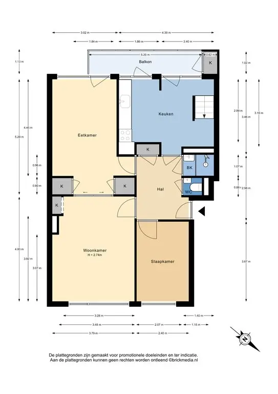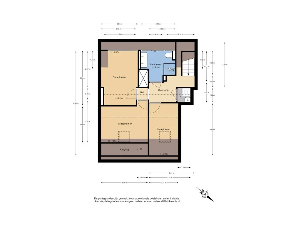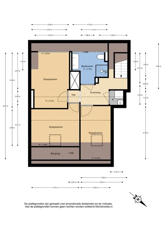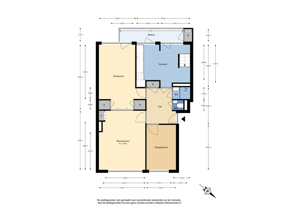 Bovenstaande informatie is door ons met de hoogst nodige zorgvuldigheid samengesteld. Door ons wordt echter geen enkele aansprakelijkheid aanvaard voor enige onvolledigheid, onjuistheid of anderszins, dan wel de gevolgen daarvan. Alle opgegeven maten en oppervlakten zijn indicatief. De woning is gemeten met gebruikmaking van de Meetinstructie, die is gebaseerd op de normen zoals vastgelegd in NEN 2580. De Meetinstructie is bedoeld om een meer eenduidige manier van meten toe te passen voor het geven van een indicatie van gebruiksoppervlakte. De Meetinstructie sluit verschillen in meetuitkomsten niet volledig uit, door bijvoorbeeld interpretatieverschillen, afrondingen of beperkingen bij het uitvoeren van de meting. Hoewel wij de woning zorgvuldig hebben opgemeten, wordt noch door ons kantoor, noch door de verkoper enige aansprakelijkheid aanvaard voor afwijkingen in de opgegeven maten. Koper wordt in de gelegenheid gesteld om de opgegeven maten te (laten) controleren.