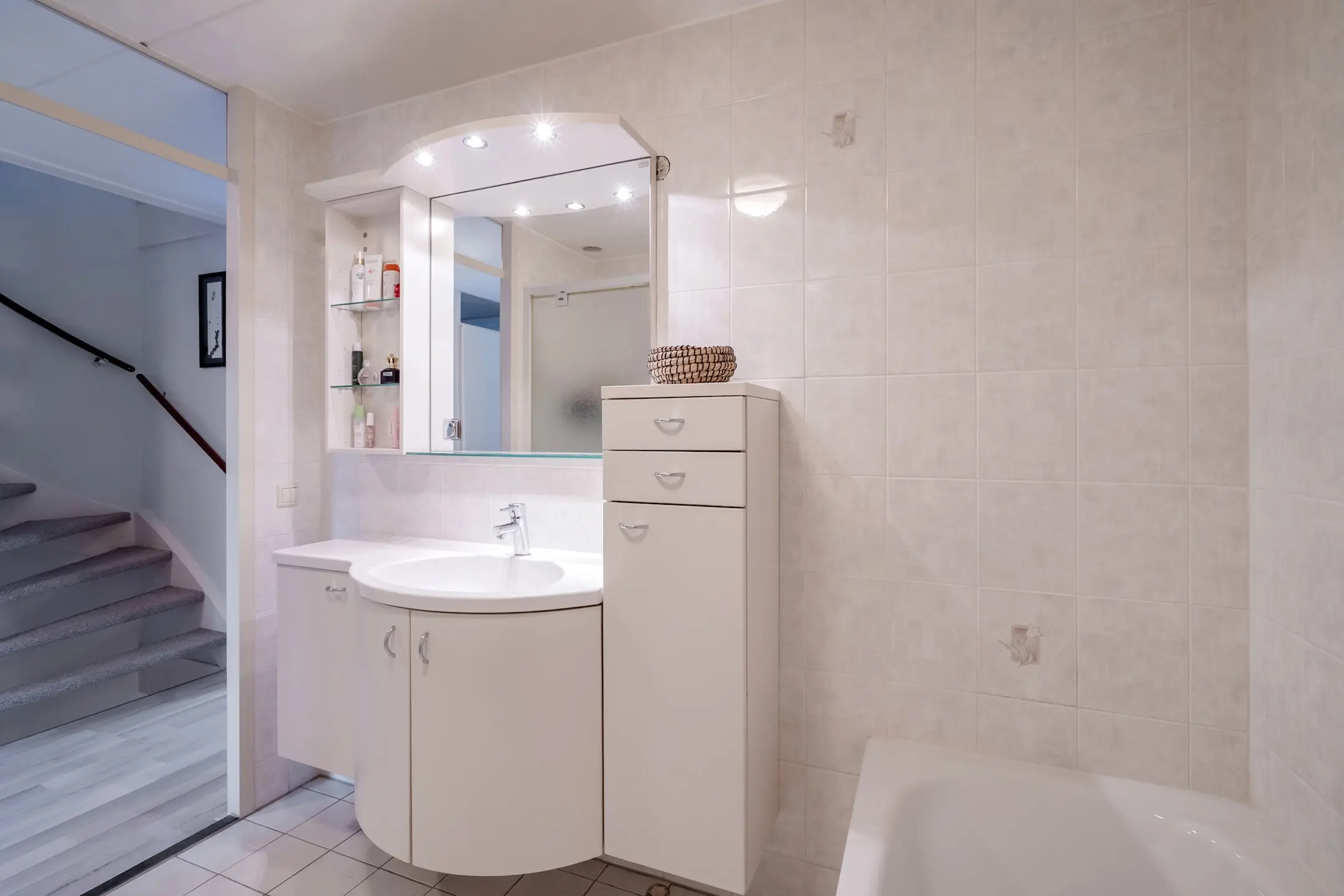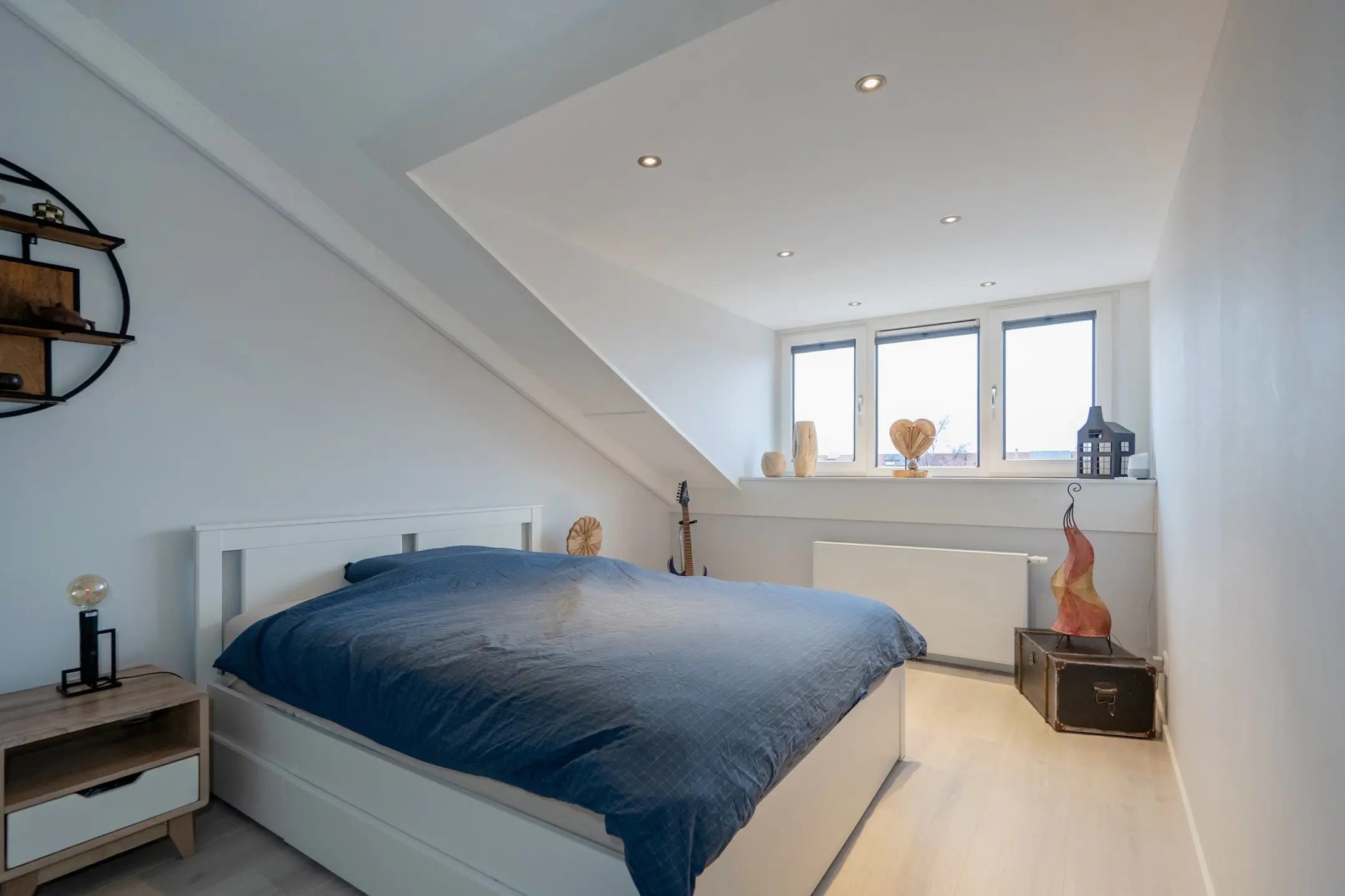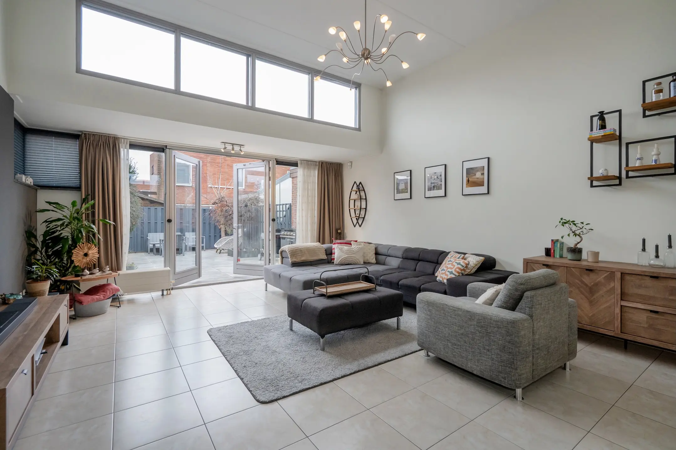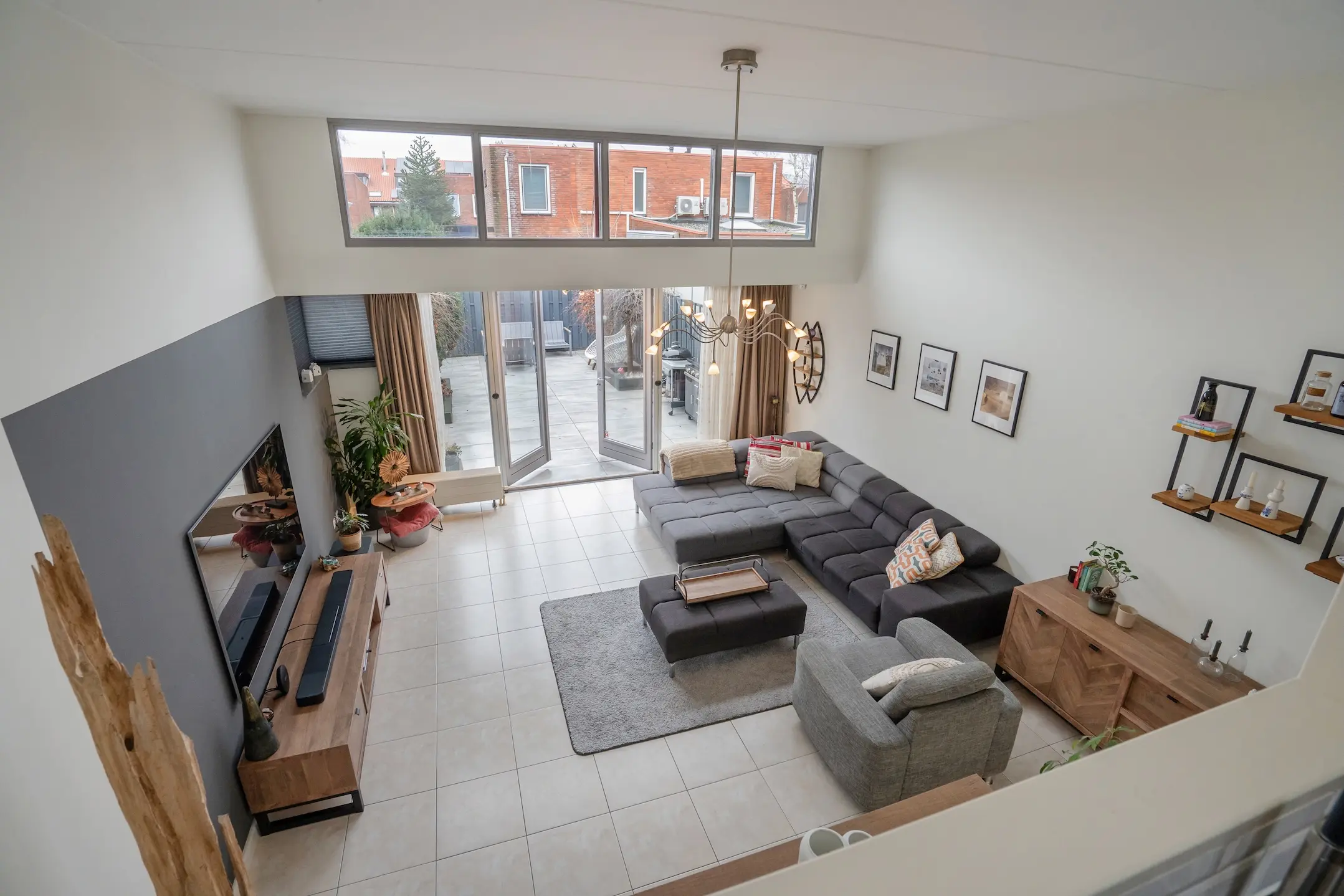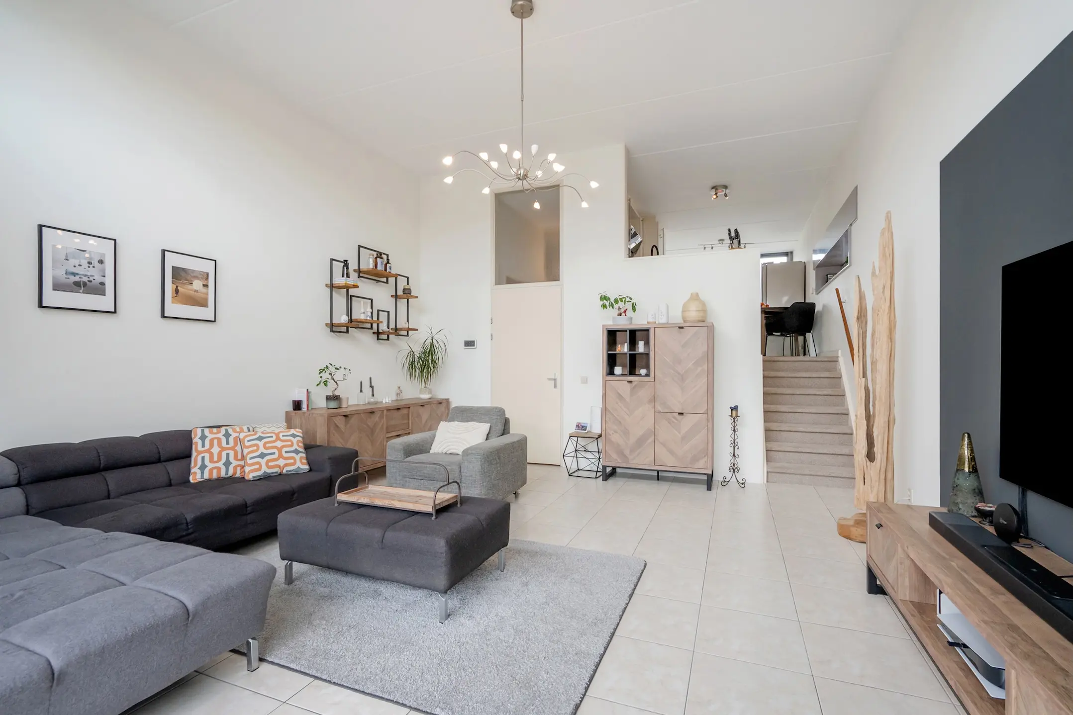 De sfeervolle splitlevel-indeling zorgt voor een speelse indeling en een prachtige lichtinval door de hele woning. De hoge ramen, open zichtlijnen en de subtiele verbinding tussen de verschillende woonniveaus geven een gevoel van vrijheid.