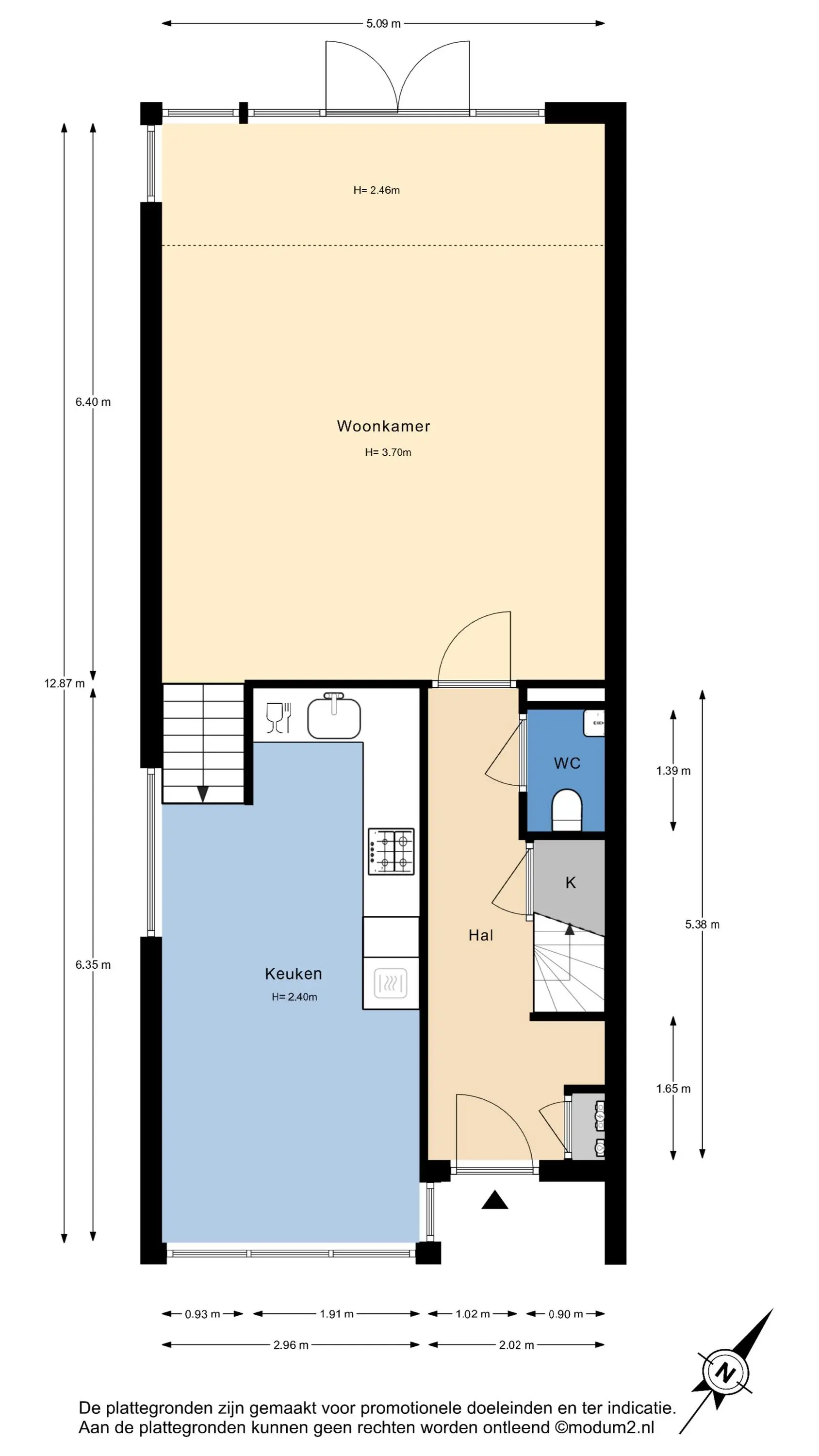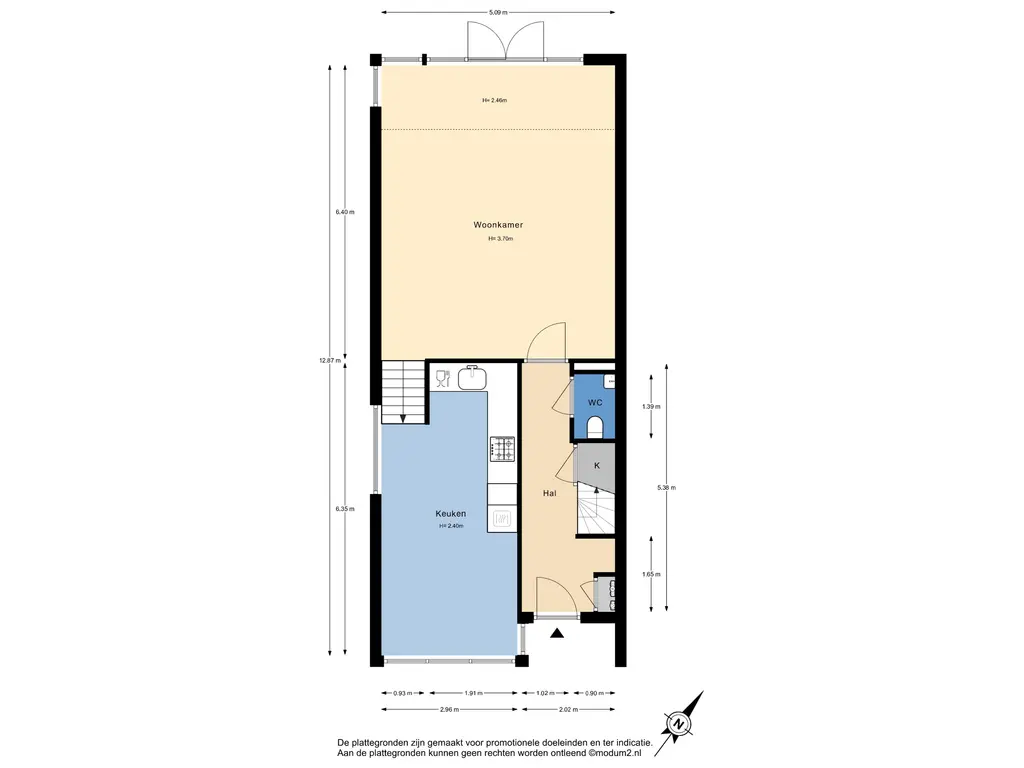 Bovenstaande informatie is door ons met de hoogst nodige zorgvuldigheid samengesteld. Door ons wordt echter geen enkele aansprakelijkheid aanvaard voor enige onvolledigheid, onjuistheid of anderszins, dan wel de gevolgen daarvan. Alle opgegeven maten en oppervlakten zijn indicatief. De woning is gemeten met gebruikmaking van de Meetinstructie, die is gebaseerd op de normen zoals vastgelegd in NEN 2580. De Meetinstructie is bedoeld om een meer eenduidige manier van meten toe te passen voor het geven van een indicatie van gebruiksoppervlakte. De Meetinstructie sluit verschillen in meetuitkomsten niet volledig uit, door bijvoorbeeld interpretatieverschillen, afrondingen of beperkingen bij het uitvoeren van de meting. Hoewel wij de woning zorgvuldig hebben opgemeten, wordt noch door ons kantoor, noch door de verkoper enige aansprakelijkheid aanvaard voor afwijkingen in de opgegeven maten. Koper wordt in de gelegenheid gesteld om de opgegeven maten te (laten) controleren.