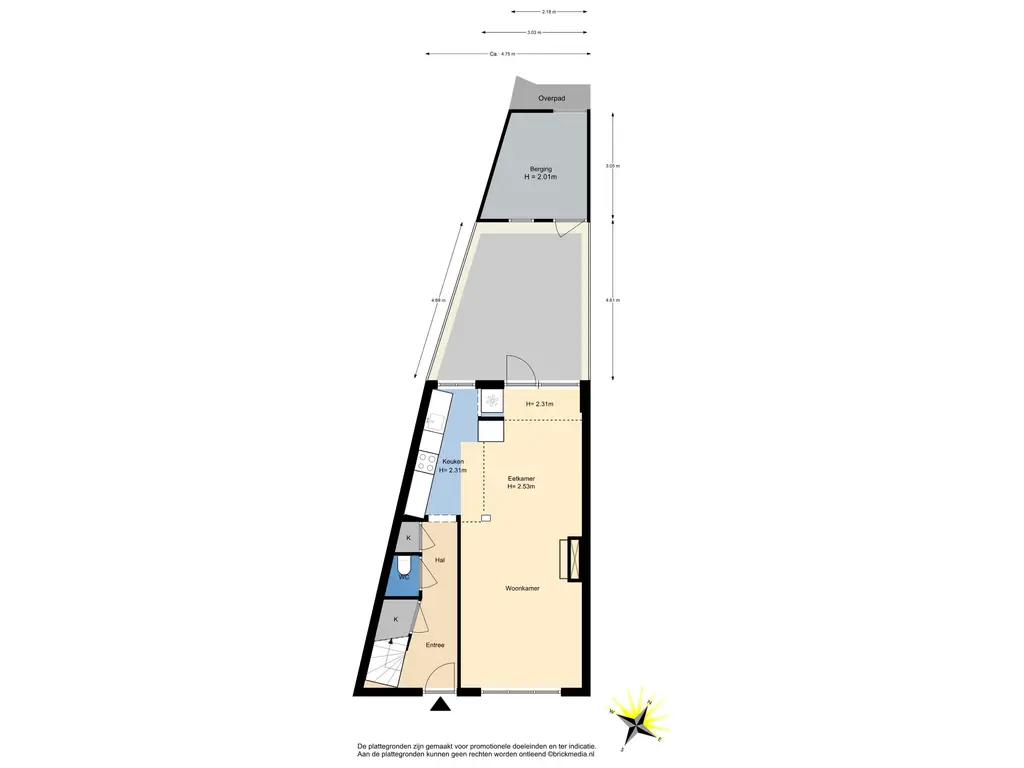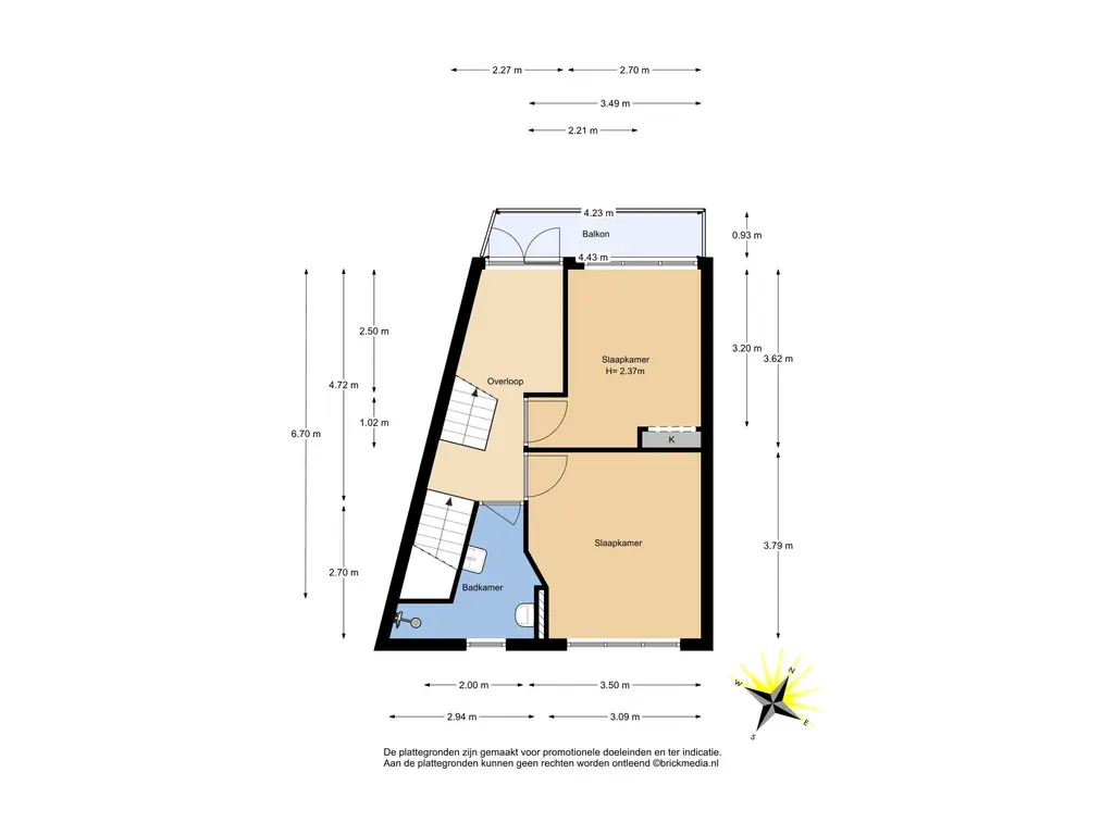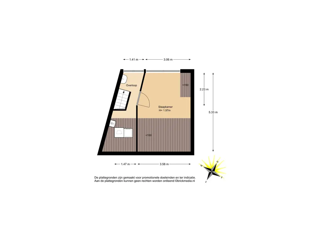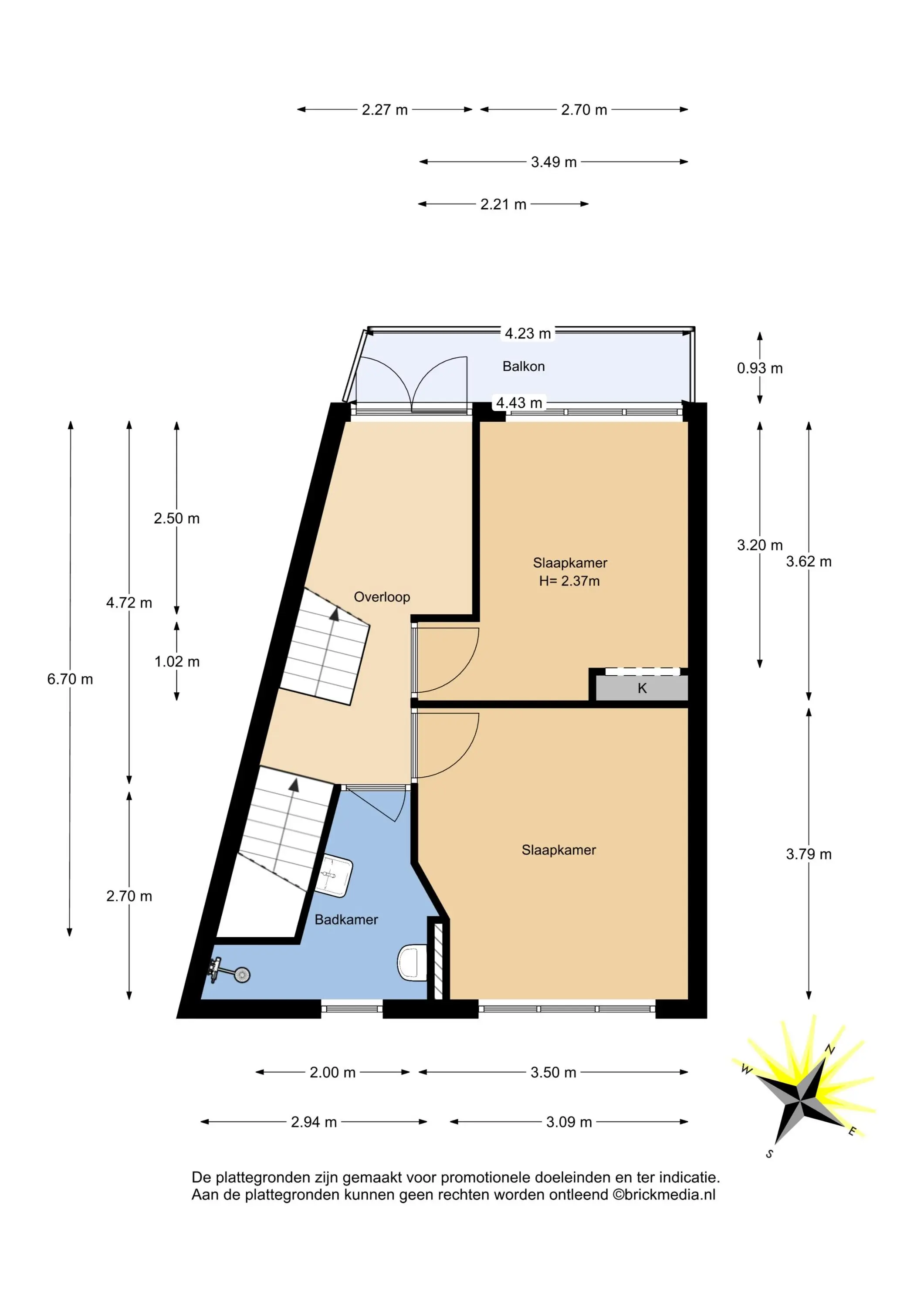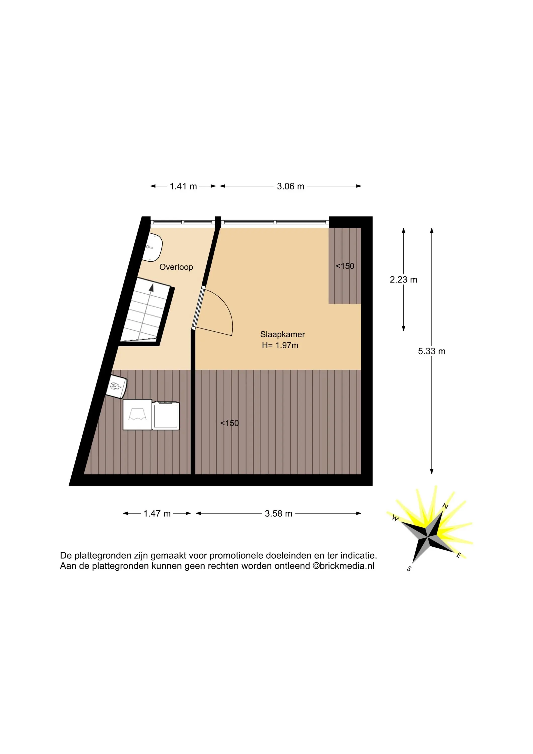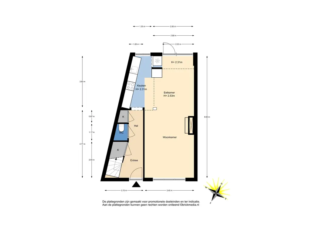 Bovenstaande informatie is door ons met de hoogst nodige zorgvuldigheid samengesteld. Door ons wordt echter geen enkele aansprakelijkheid aanvaard voor enige onvolledigheid, onjuistheid of anderszins, dan wel de gevolgen daarvan. Alle opgegeven maten en oppervlakten zijn indicatief. De woning is gemeten met gebruikmaking van de Meetinstructie, die is gebaseerd op de normen zoals vastgelegd in NEN 2580. De Meetinstructie is bedoeld om een meer eenduidige manier van meten toe te passen voor het geven van een indicatie van gebruiksoppervlakte. De Meetinstructie sluit verschillen in meetuitkomsten niet volledig uit, door bijvoorbeeld interpretatieverschillen, afrondingen of beperkingen bij het uitvoeren van de meting. Hoewel wij de woning zorgvuldig hebben opgemeten, wordt noch door ons kantoor, noch door de verkoper enige aansprakelijkheid aanvaard voor afwijkingen in de opgegeven maten. Koper wordt in de gelegenheid gesteld om de opgegeven maten te (laten) controleren