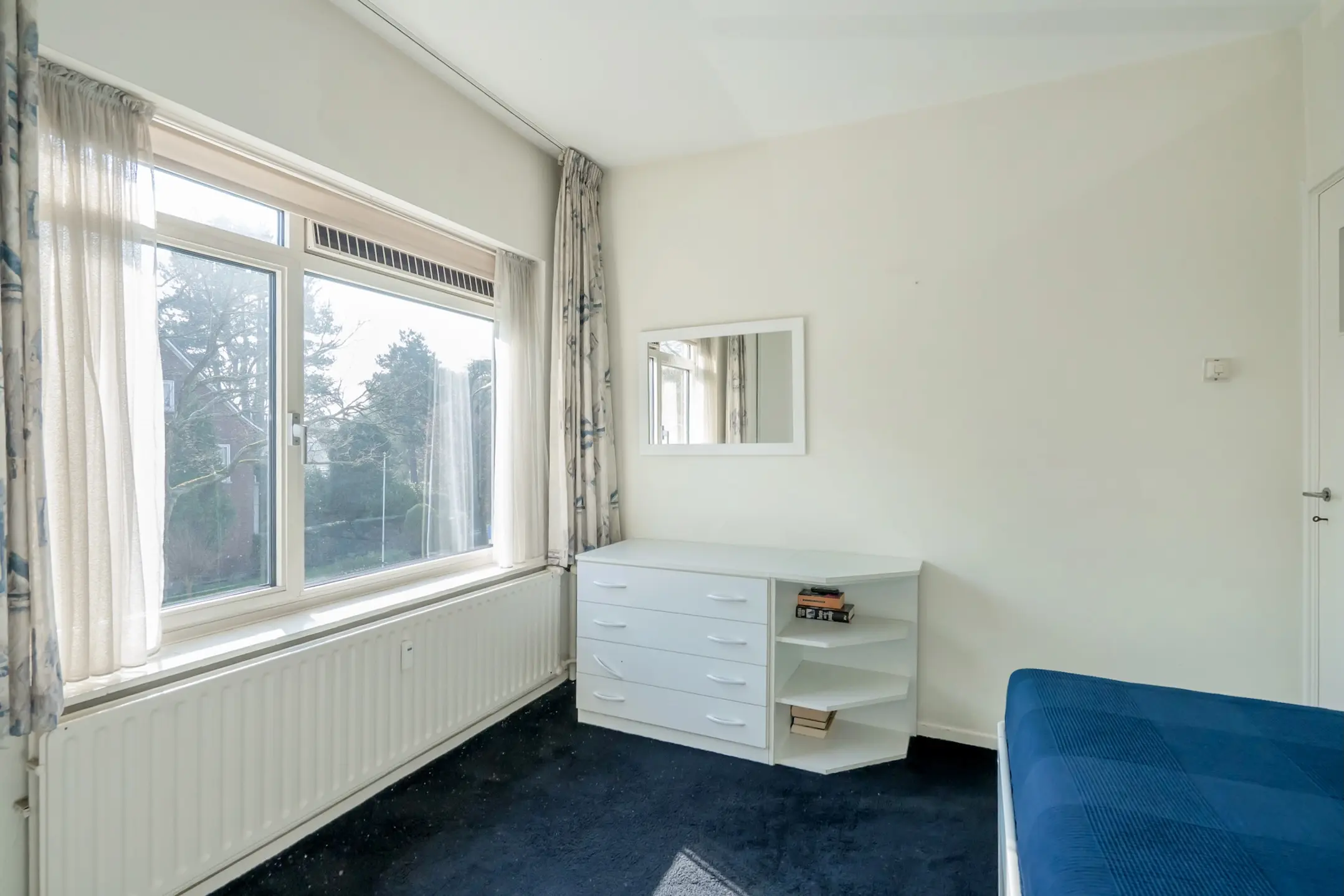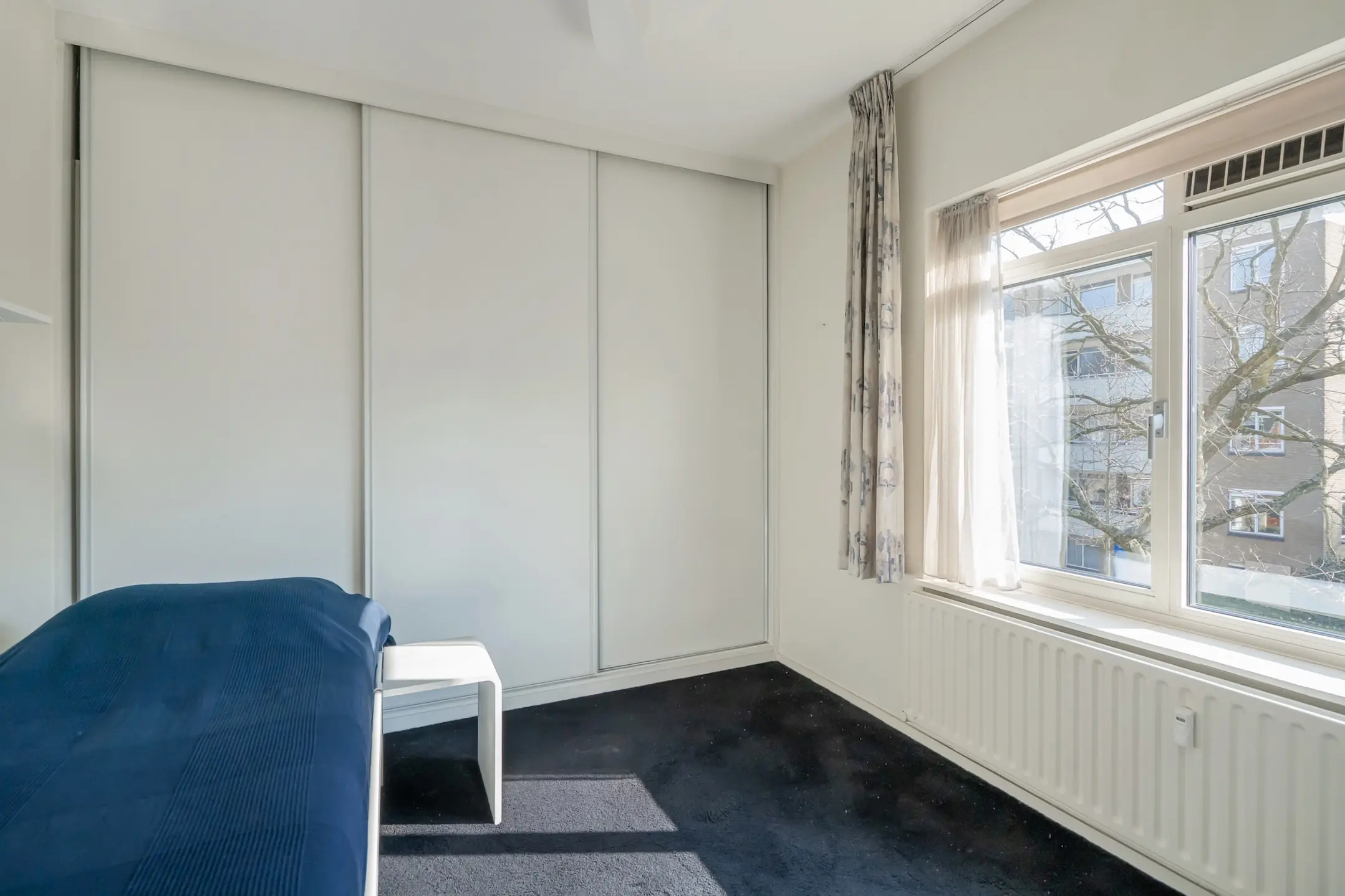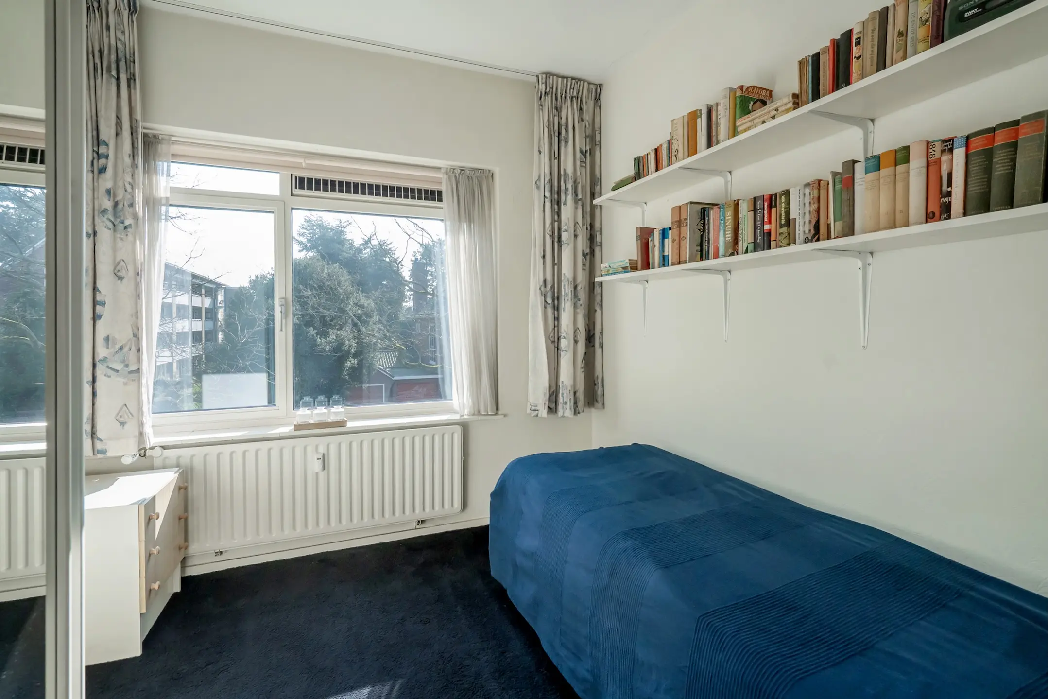 Ruime hoofdslaapkamer met een praktische kastenwand over de volledige breedte voorzien van schuifdeuren, tweede slaap- of werkkamer.