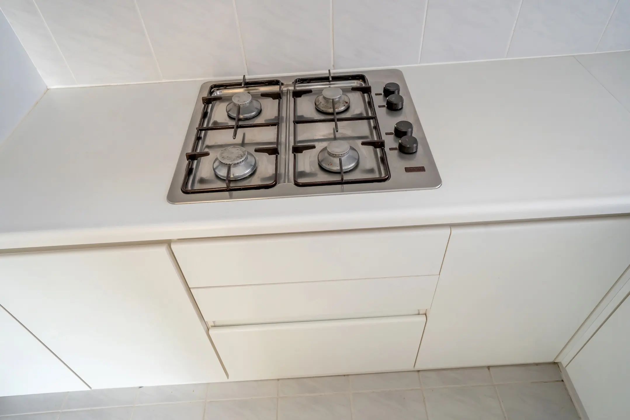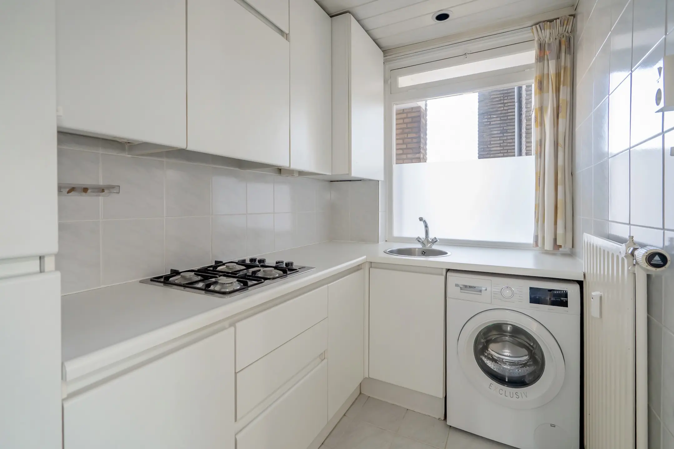De keuken bevindt zich aan de entreezijde en deze heeft een keukeninrichting in een hoekopstelling voorzien van geïntegreerde apparatuur, opstelplaats 50-liter elektrische boiler in een bovenkast.