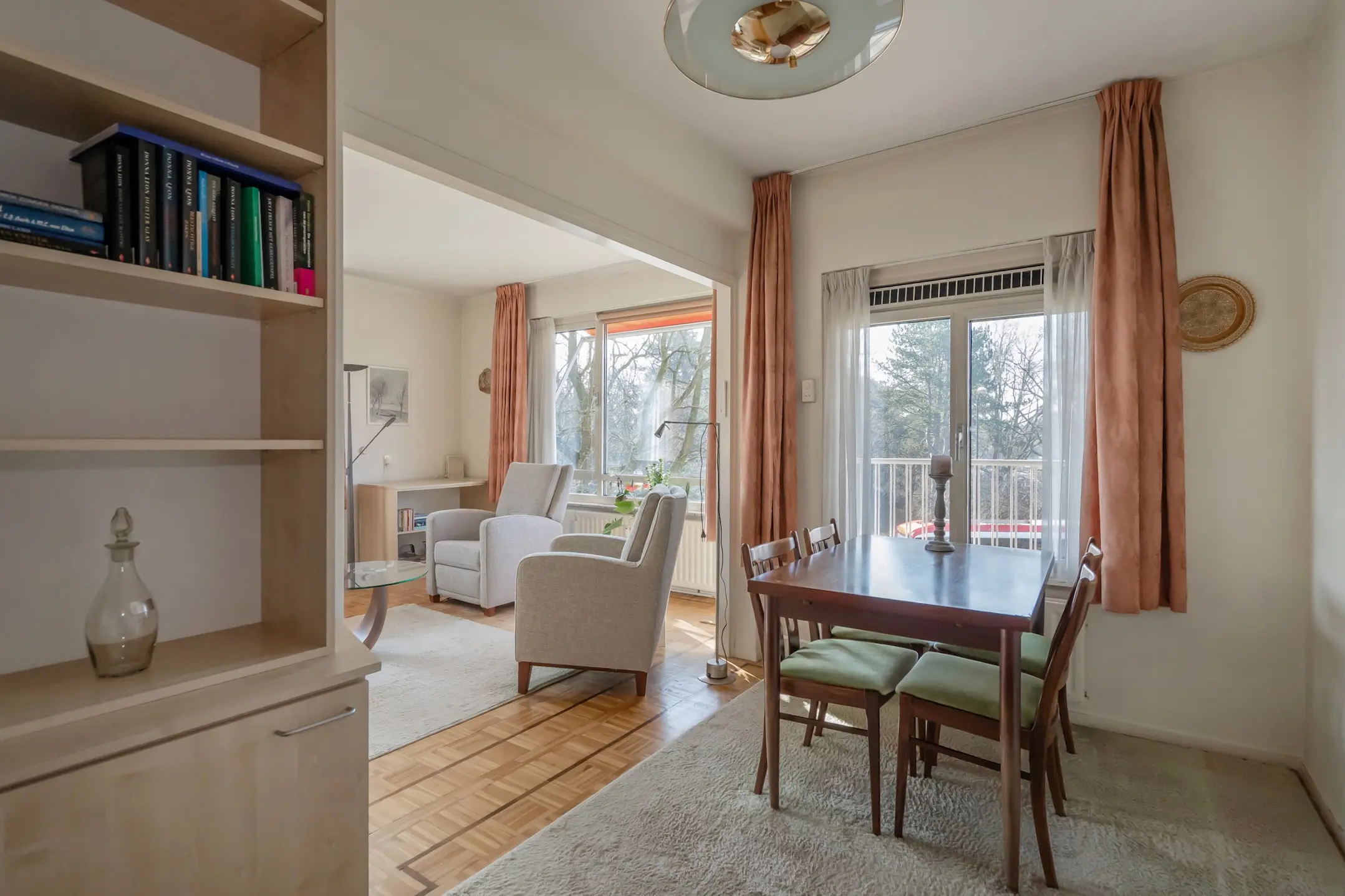 In kleinschalig appartementencomplex "Huis te Hoornpark" op de 2e verdieping gelegen 3-4 kamer hoekappartement met lift, zonnig balkon op het zuidwesten, weids uitzicht en een eigen berging in de onderbouw.