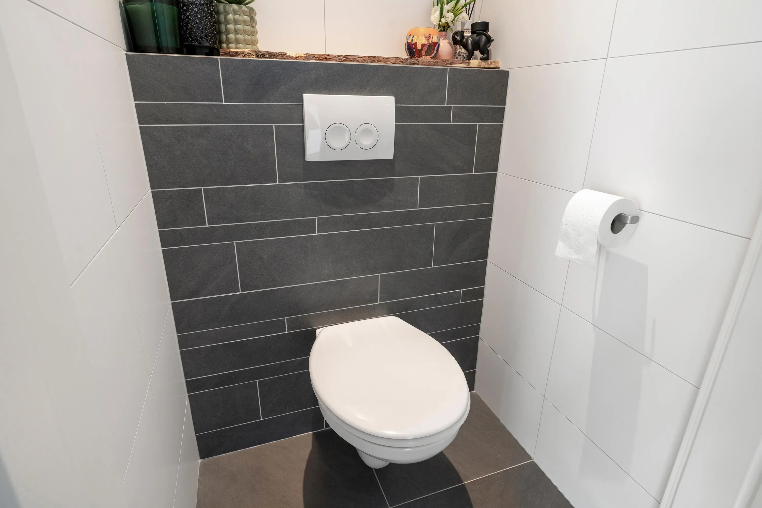 Separaat eveneens modern uitgevoerd toilet voorzien van een wandcloset.