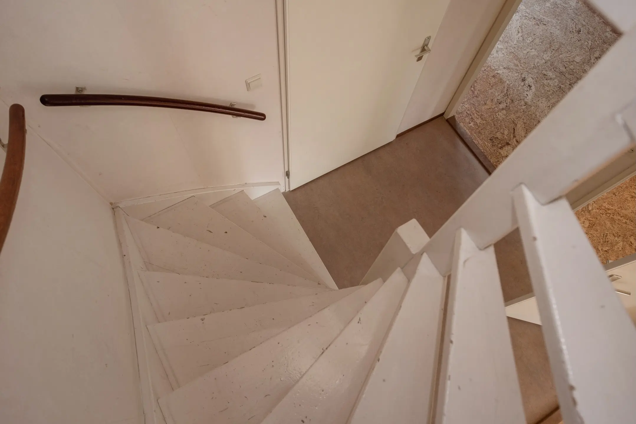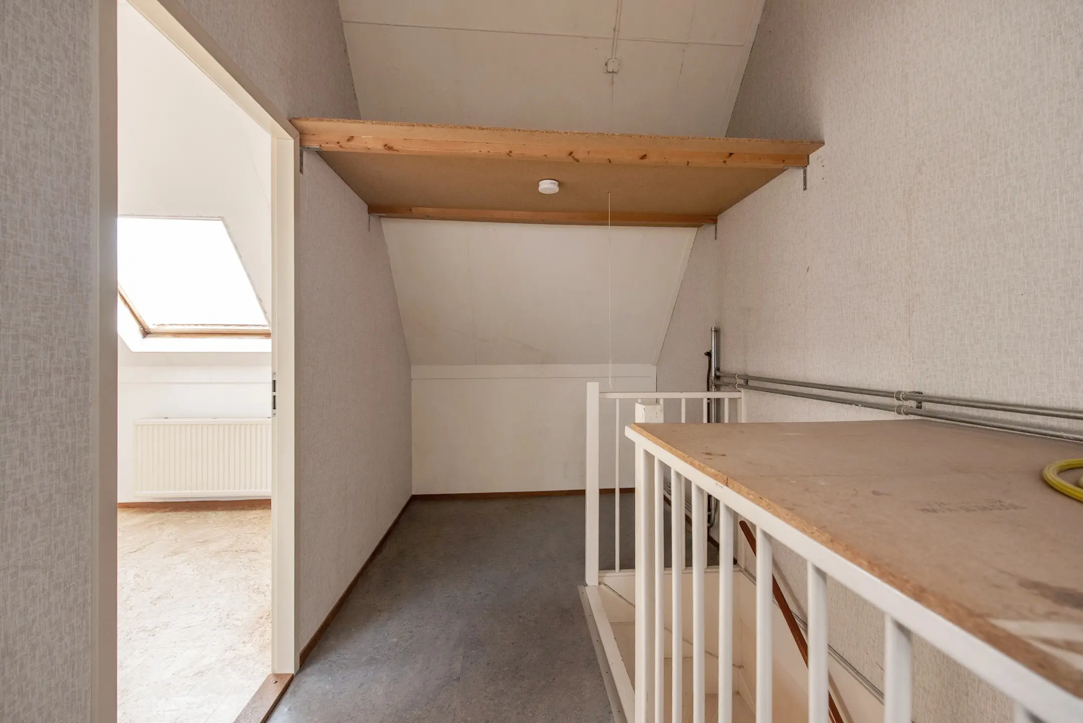 Ruime overloop met de opstelplaats van de cv-combi ketel (Intergas HR 107 cw4, bouwjaar 2010. Jaarlijks onderhouden) en een bergvliering.