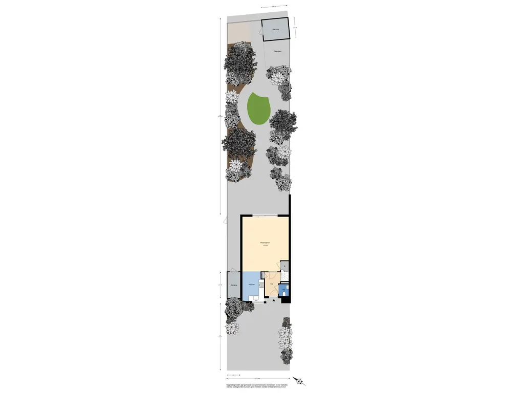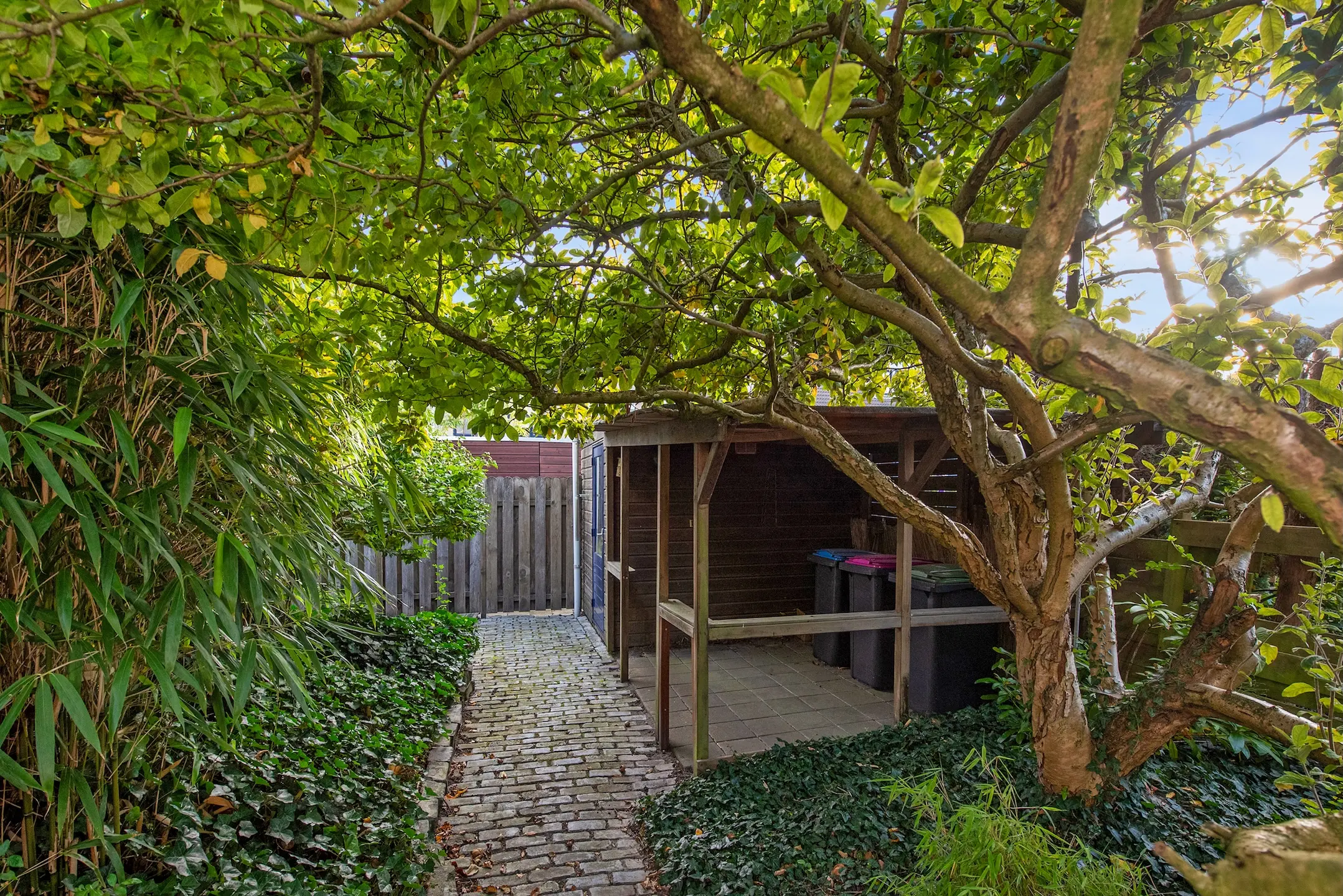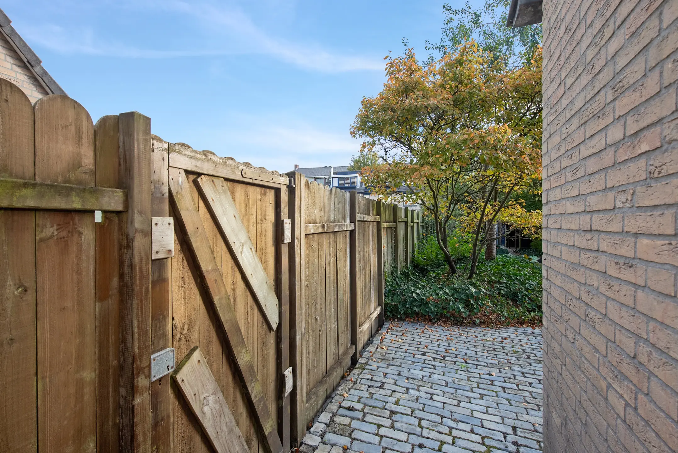 Door de hoekligging is de tuin extra breed, naast de woning een tweede berging en een zijingang.