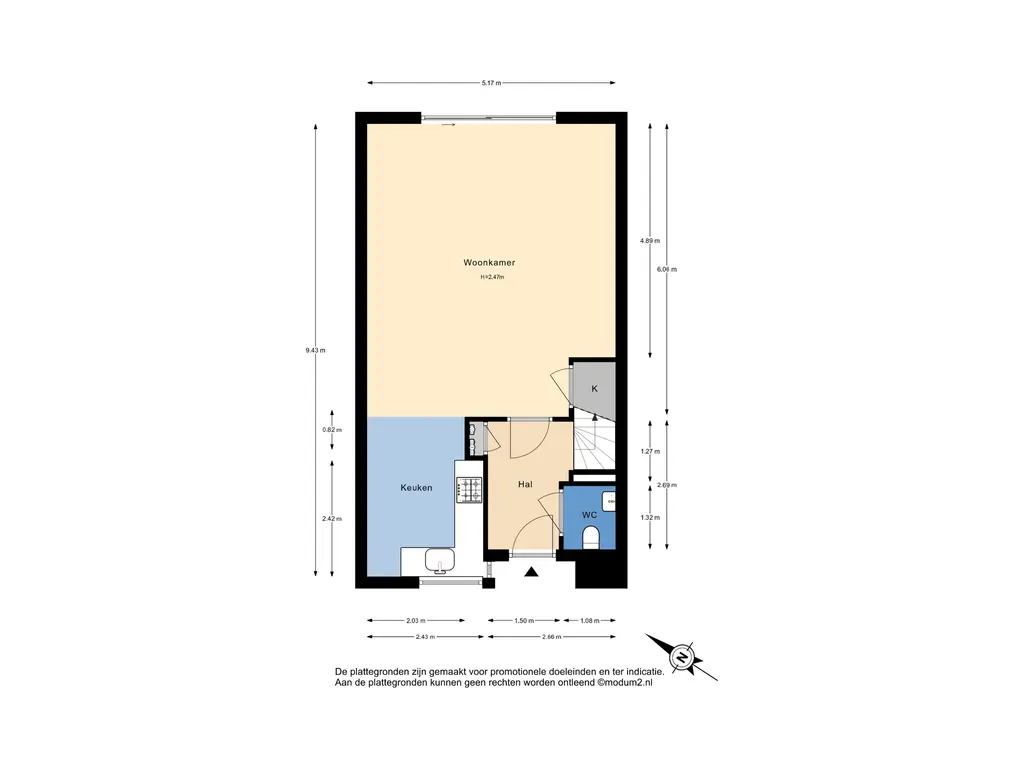 Bovenstaande informatie is door ons met de hoogst nodige zorgvuldigheid samengesteld. Door ons wordt echter geen enkele aansprakelijkheid aanvaard voor enige onvolledigheid, onjuistheid of anderszins, dan wel de gevolgen daarvan. Alle opgegeven maten en oppervlakten zijn indicatief. De woning is gemeten met gebruikmaking van de Meetinstructie, die is gebaseerd op de normen zoals vastgelegd in NEN 2580. De Meetinstructie is bedoeld om een meer eenduidige manier van meten toe te passen voor het geven van een indicatie van gebruiksoppervlakte. De Meetinstructie sluit verschillen in meetuitkomsten niet volledig uit, door bijvoorbeeld interpretatieverschillen, afrondingen of beperkingen bij het uitvoeren van de meting. Hoewel wij de woning zorgvuldig hebben opgemeten, wordt noch door ons kantoor, noch door de verkoper enige aansprakelijkheid aanvaard voor afwijkingen in de opgegeven maten. Koper wordt in de gelegenheid gesteld om de opgegeven maten te (laten) controleren.