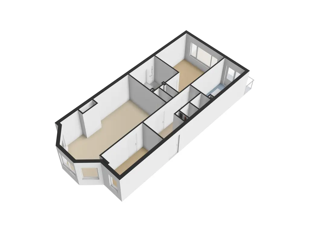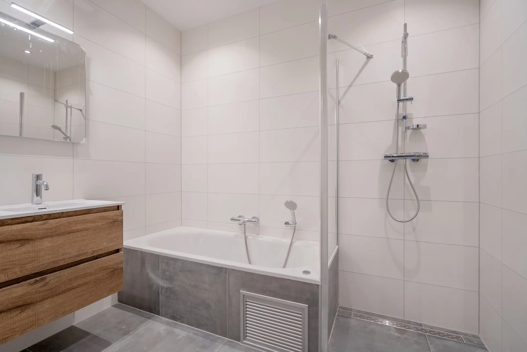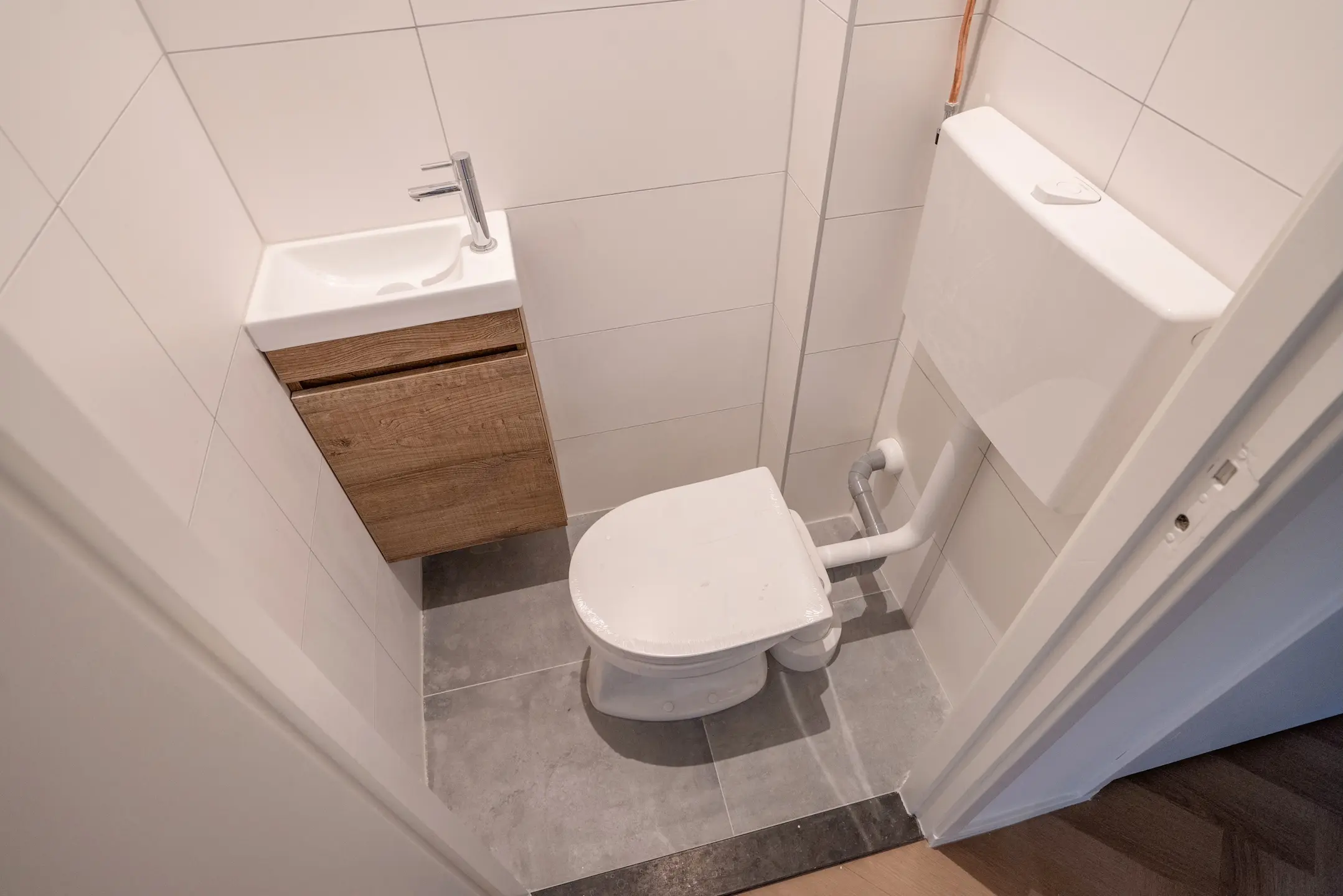 De compleet vernieuwde badkamer is luxe afgewerkt en voorzien van een inloopdouche en wastafelmeubel. Daarnaast beschikt het appartement over een separaat toilet. Er zijn twee comfortabele slaapkamers, ideaal voor een stel, logeerkamer of thuiswerkplek. In de onderbouw is een praktische privé berging aanwezig.