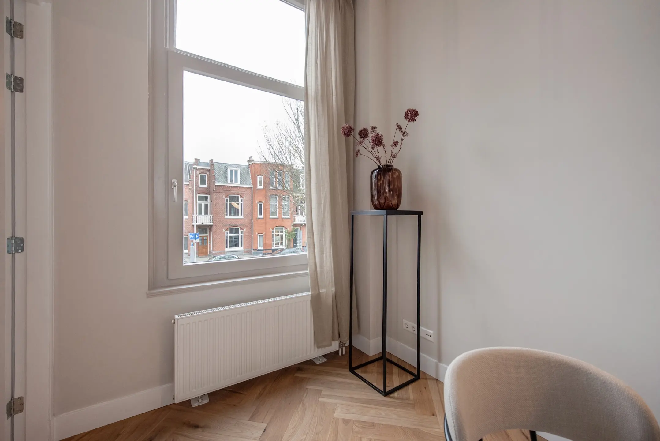 De woning is gelegen in het levendige Valkenboskwartier, met op loopafstand tal van winkels, speciaalzaken, gezellige horecazaken en supermarkten (Weimarstraat, Fahrenheitstraat). Openbaar vervoer (tram en bus) ligt om de hoek en binnen 10 minuten fietsen bereik je het strand, de binnenstad of station Den Haag HS.