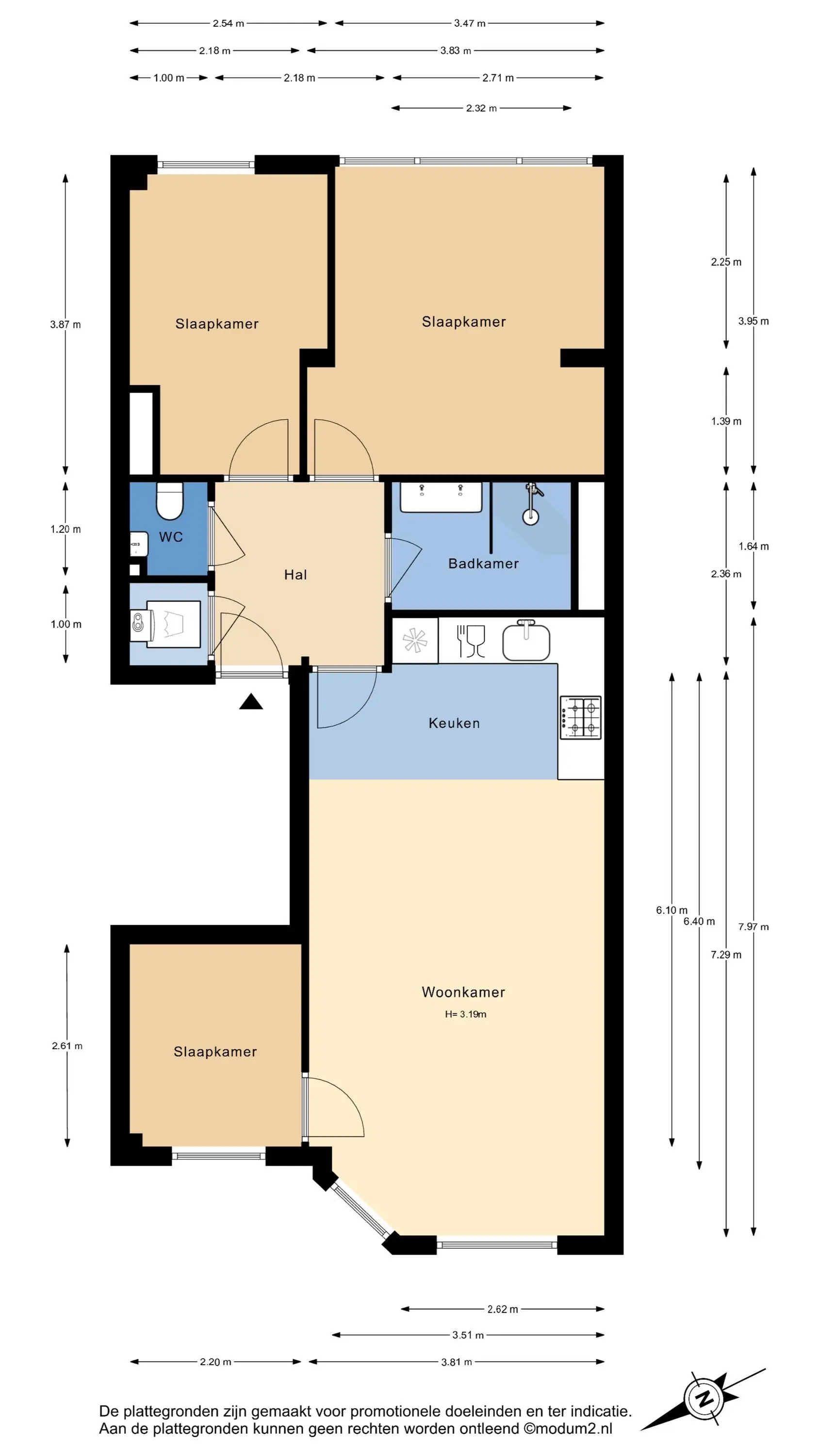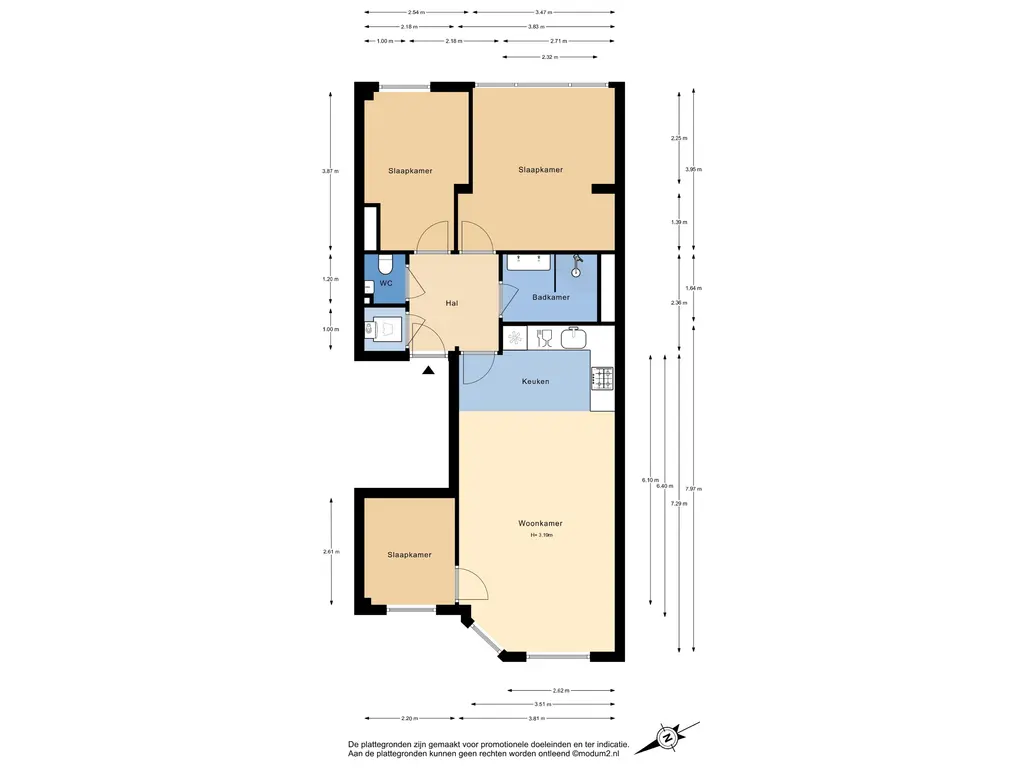 Bovenstaande informatie is door ons met de hoogst nodige zorgvuldigheid samengesteld. Door ons wordt echter geen enkele aansprakelijkheid aanvaard voor enige onvolledigheid, onjuistheid of anderszins, dan wel de gevolgen daarvan. Alle opgegeven maten en oppervlakten zijn indicatief. De woning is gemeten met gebruikmaking van de Meetinstructie, die is gebaseerd op de normen zoals vastgelegd in NEN 2580. De Meetinstructie is bedoeld om een meer eenduidige manier van meten toe te passen voor het geven van een indicatie van gebruiksoppervlakte. De Meetinstructie sluit verschillen in meetuitkomsten niet volledig uit, door bijvoorbeeld interpretatieverschillen, afrondingen of beperkingen bij het uitvoeren van de meting. Hoewel wij de woning zorgvuldig hebben opgemeten, wordt noch door ons kantoor, noch door de verkoper enige aansprakelijkheid aanvaard voor afwijkingen in de opgegeven maten. Koper wordt in de gelegenheid gesteld om de opgegeven maten te (laten) controleren.