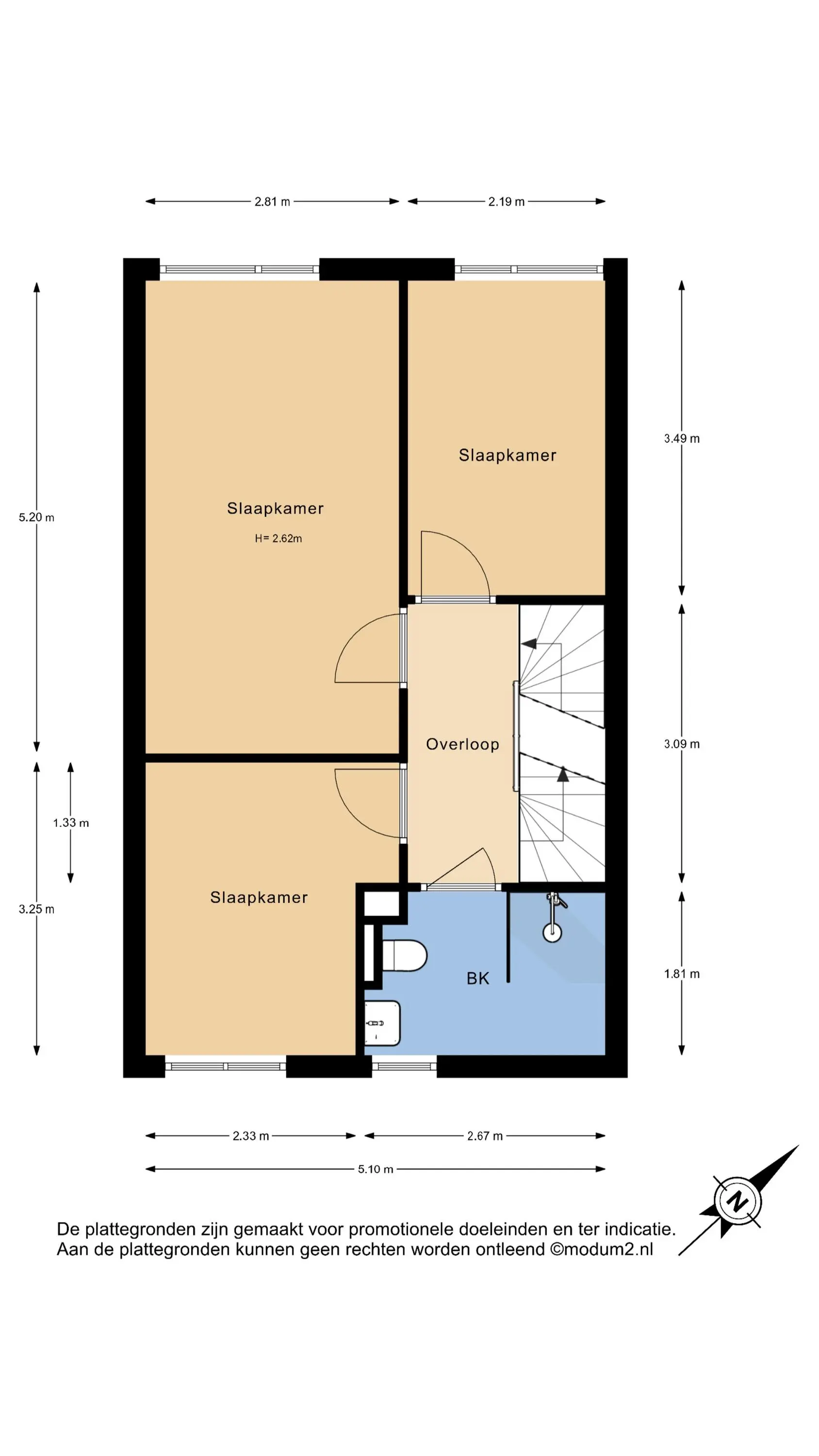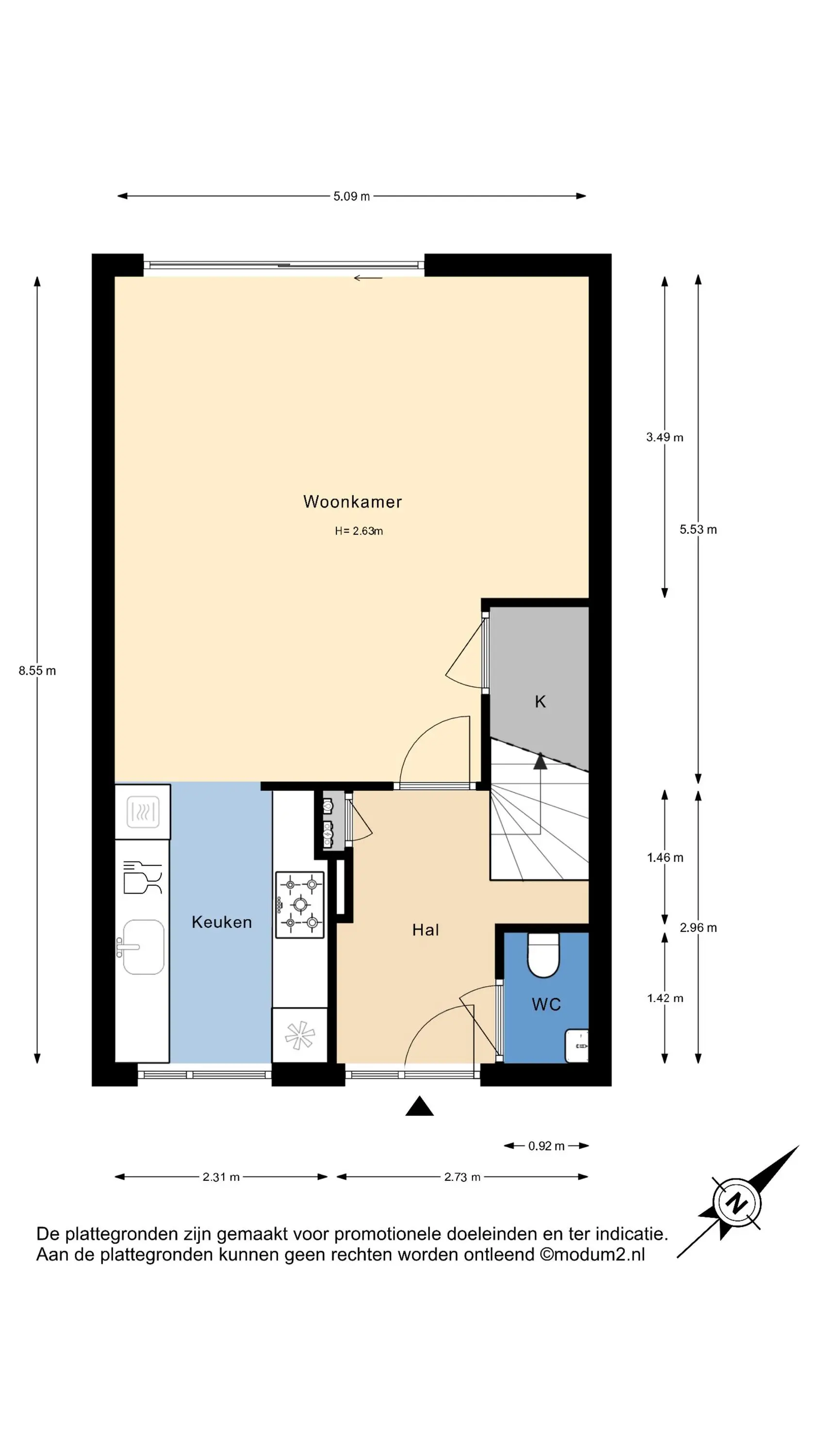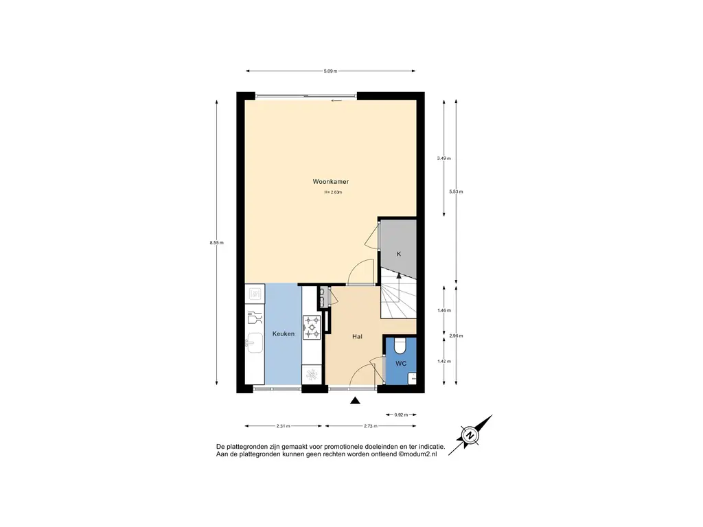 Bovenstaande informatie is door ons met de hoogst nodige zorgvuldigheid samengesteld. Door ons wordt echter geen enkele aansprakelijkheid aanvaard voor enige onvolledigheid, onjuistheid of anderszins, dan wel de gevolgen daarvan. Alle opgegeven maten en oppervlakten zijn indicatief. De woning is gemeten met gebruikmaking van de Meetinstructie, die is gebaseerd op de normen zoals vastgelegd in NEN 2580. De Meetinstructie is bedoeld om een meer eenduidige manier van meten toe te passen voor het geven van een indicatie van gebruiksoppervlakte. De Meetinstructie sluit verschillen in meetuitkomsten niet volledig uit, door bijvoorbeeld interpretatieverschillen, afrondingen of beperkingen bij het uitvoeren van de meting. Hoewel wij de woning zorgvuldig hebben opgemeten, wordt noch door ons kantoor, noch door de verkoper enige aansprakelijkheid aanvaard voor afwijkingen in de opgegeven maten. Koper wordt in de gelegenheid gesteld om de opgegeven maten te (laten) controleren.
