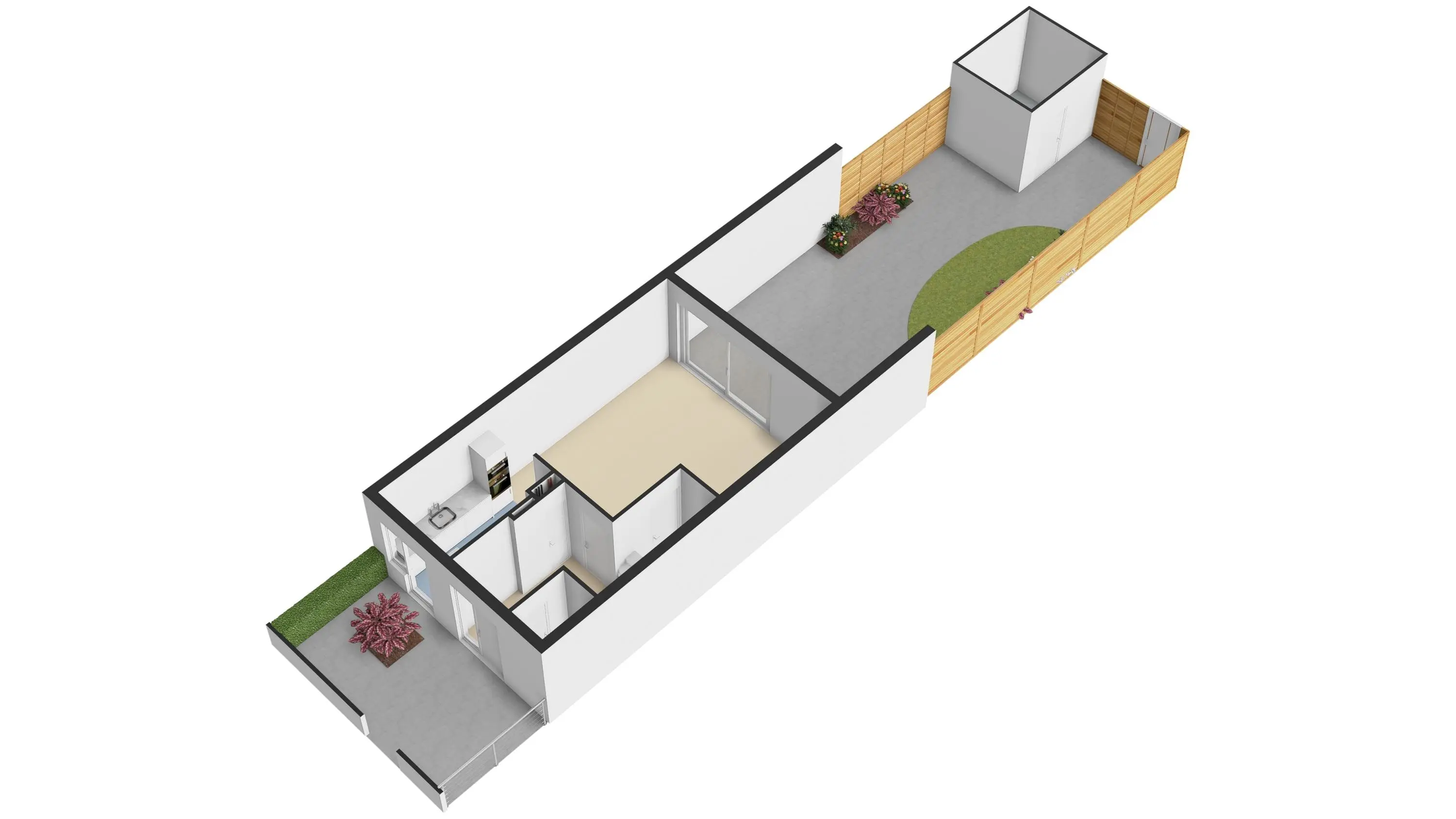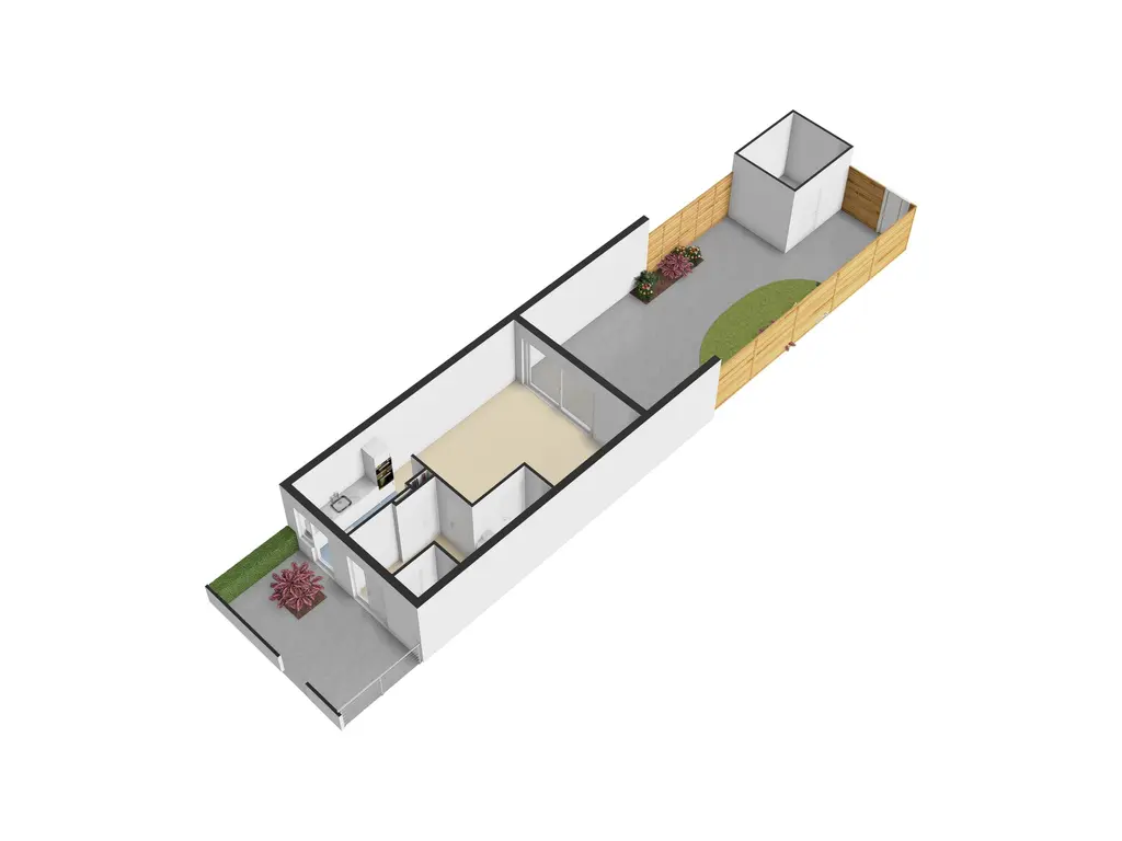 - Voortuin en ca. 13mtr. diepe zonnige achtertuin met achterom;