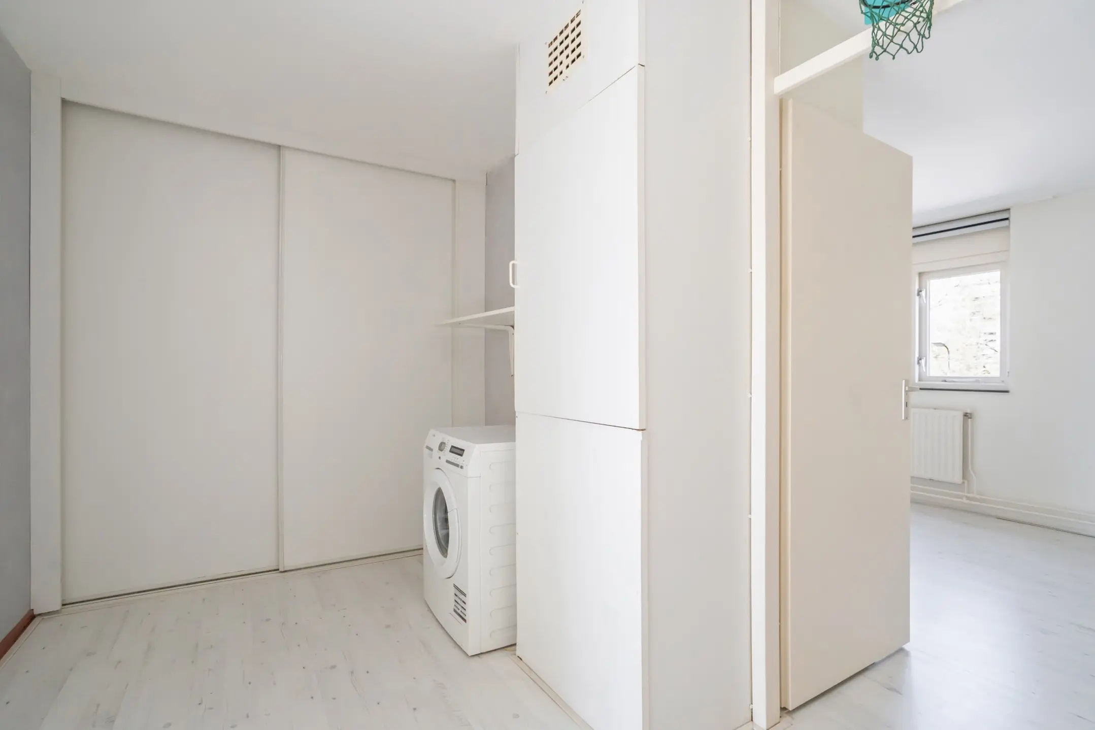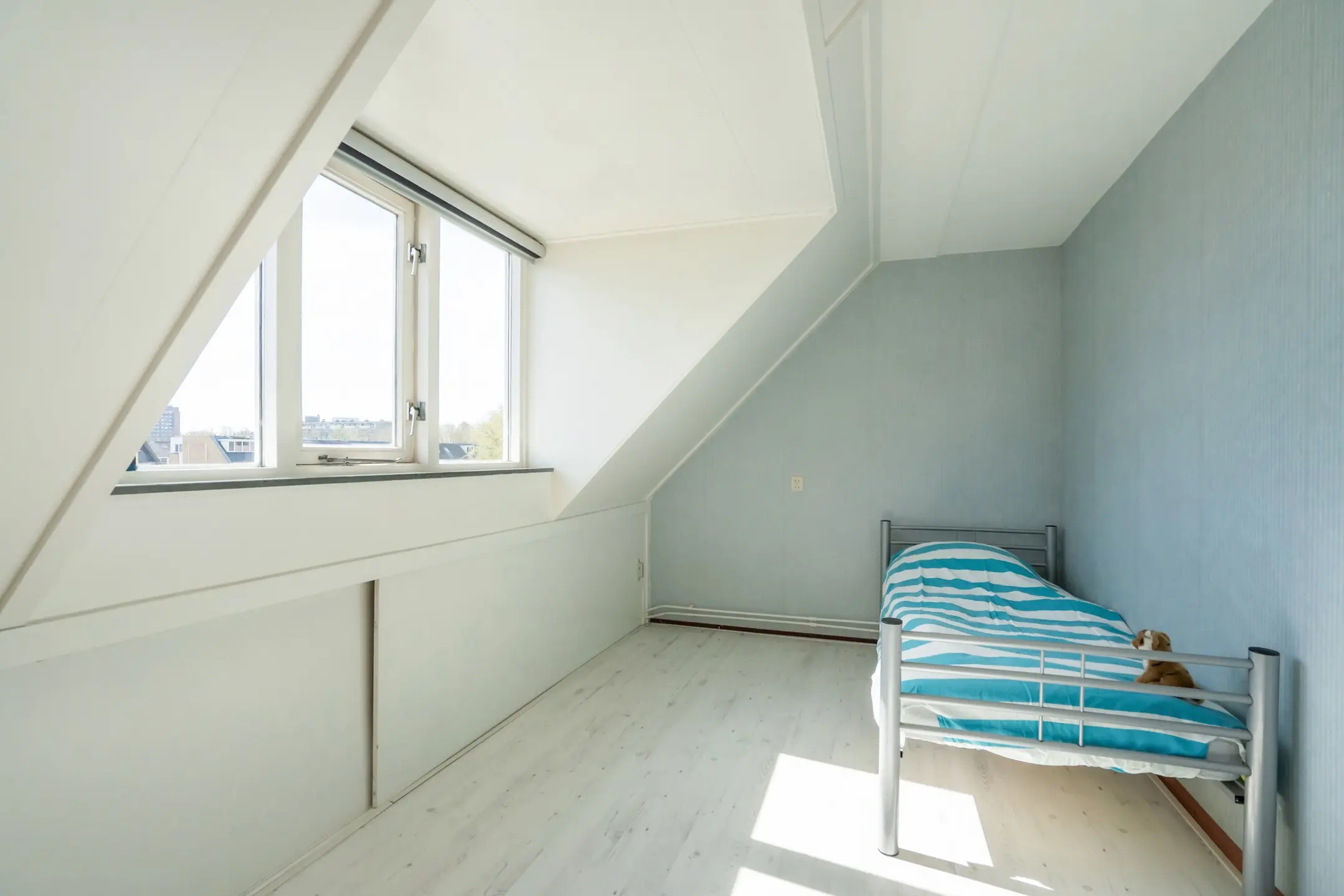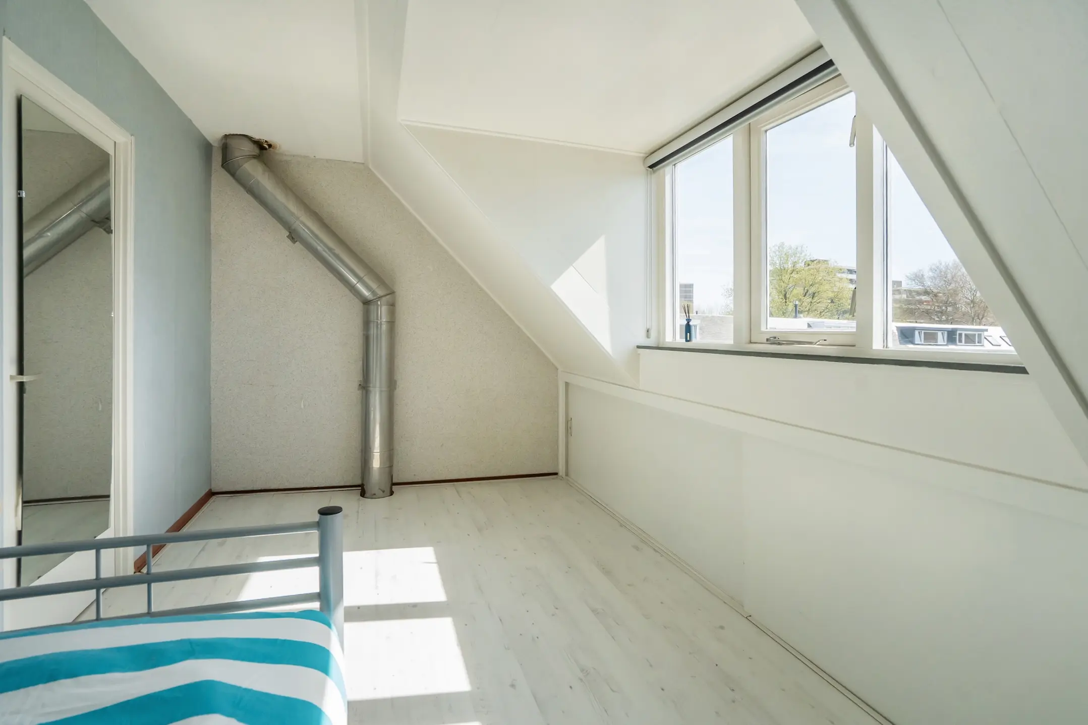 2e verdieping: overloop met vaste kastenwand, mechanische ventilatie en opstelplaats voor wasmachine, CV combi ketel (Vaillant ca. 2023), ruime achtergelegen slaapkamer met dakkapel en aan de voorzijde gelegen riante slaapkamer over de volledige breedte van de woning.