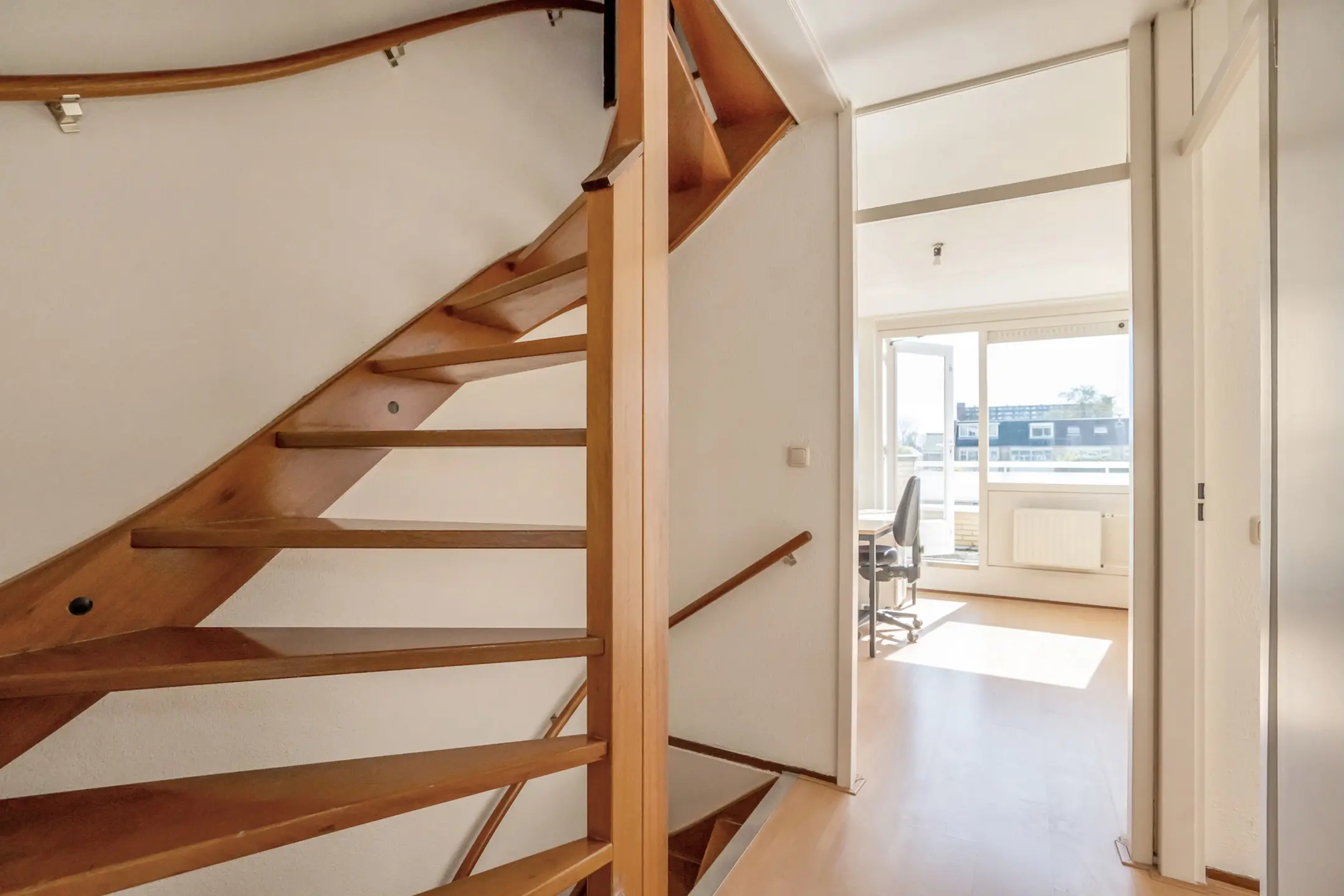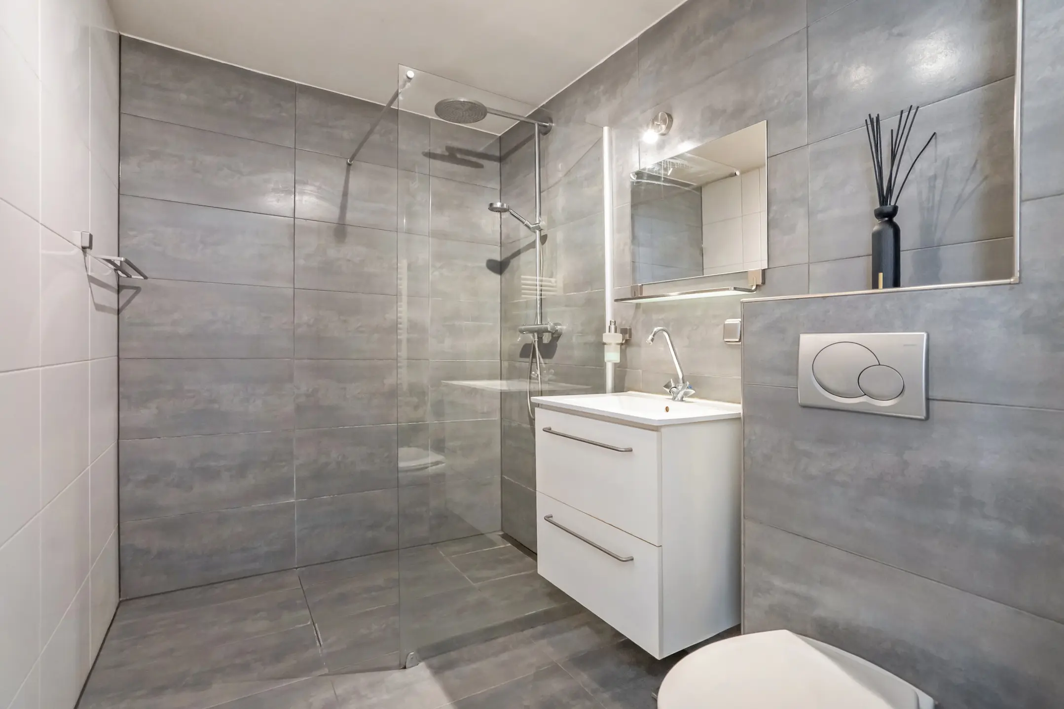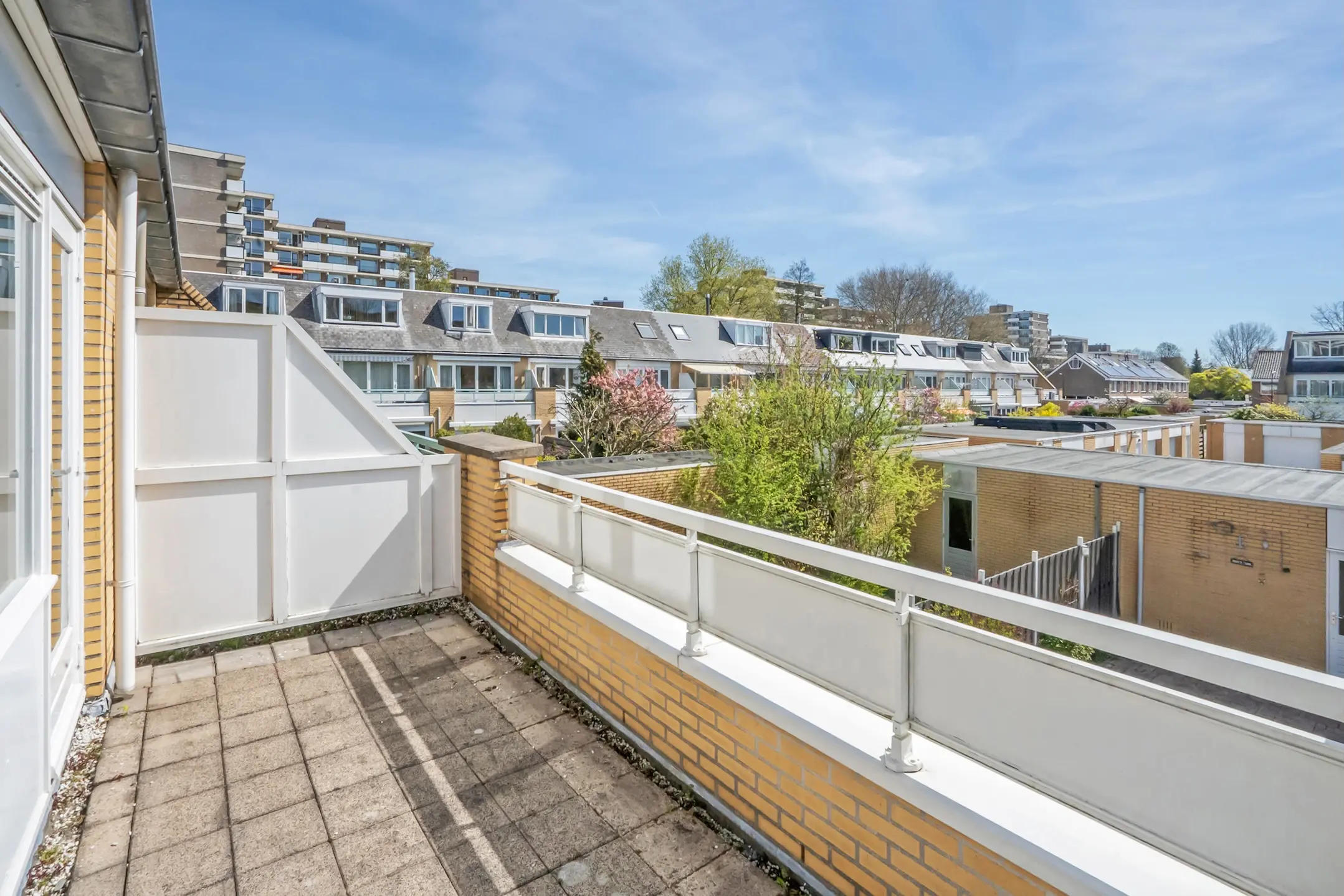 1e verdieping: overloop, aan de achterzijde gelegen tweetal slaapkamers van goed formaat, beide met toegang tot het zonnige terras gelegen over de breedte van de woning, ruime nette badkamer (geheel betegeld) voorzien van een inloop douche met drain en rainshower, wastafelmeubel, vrij hangend toilet en design radiator, aan de voorzijde gelegen hoofdslaapkamer over de breedte van de woning.
