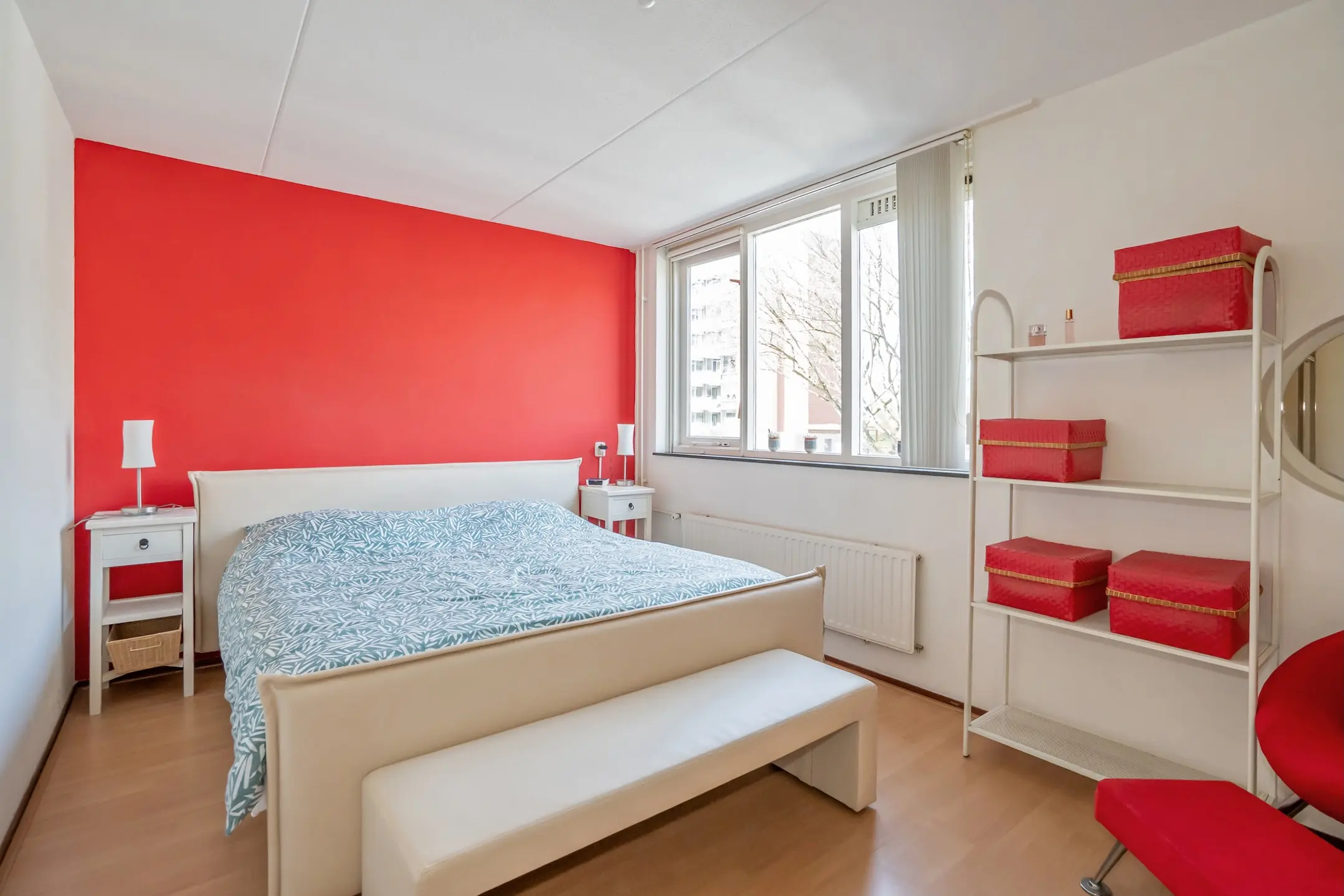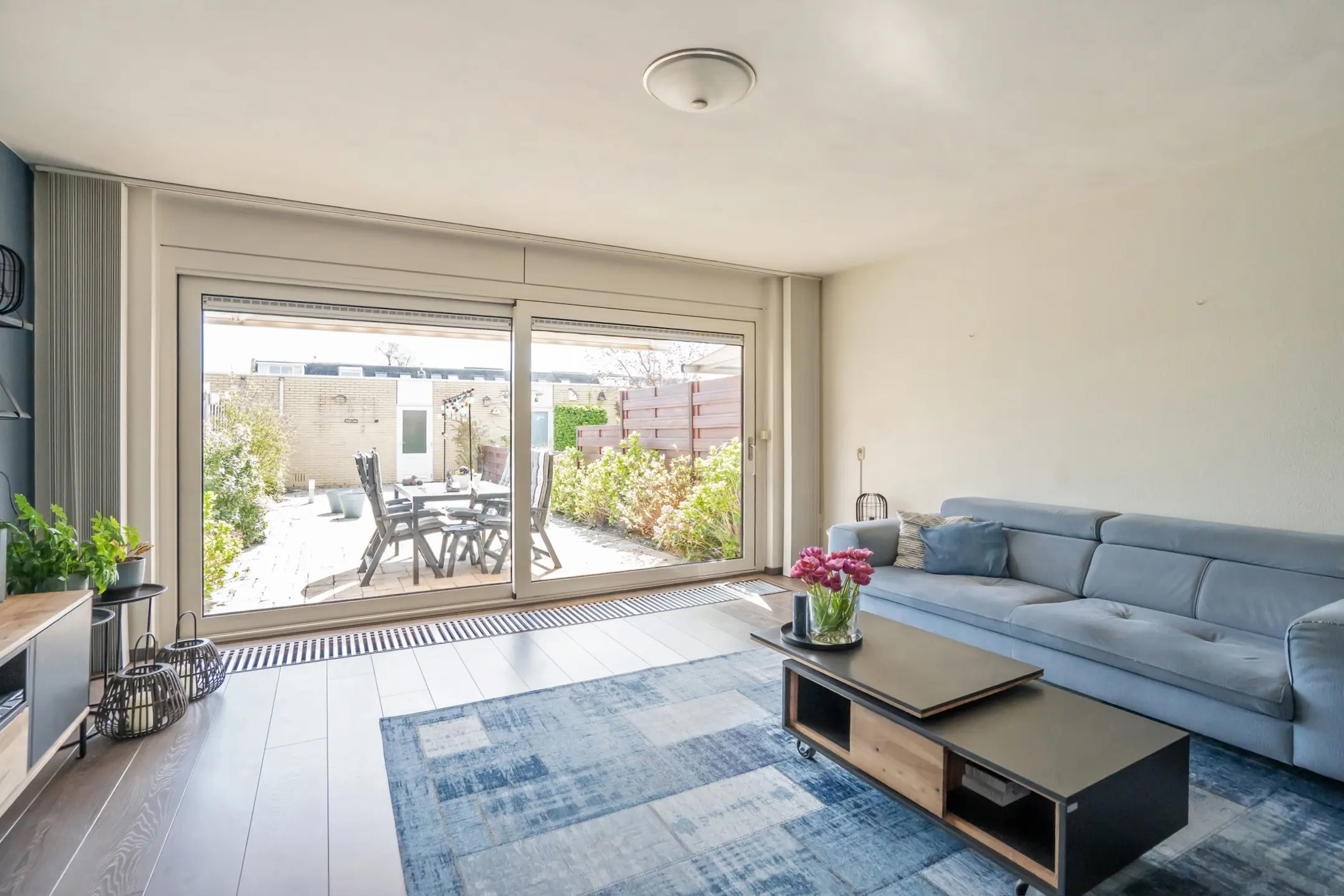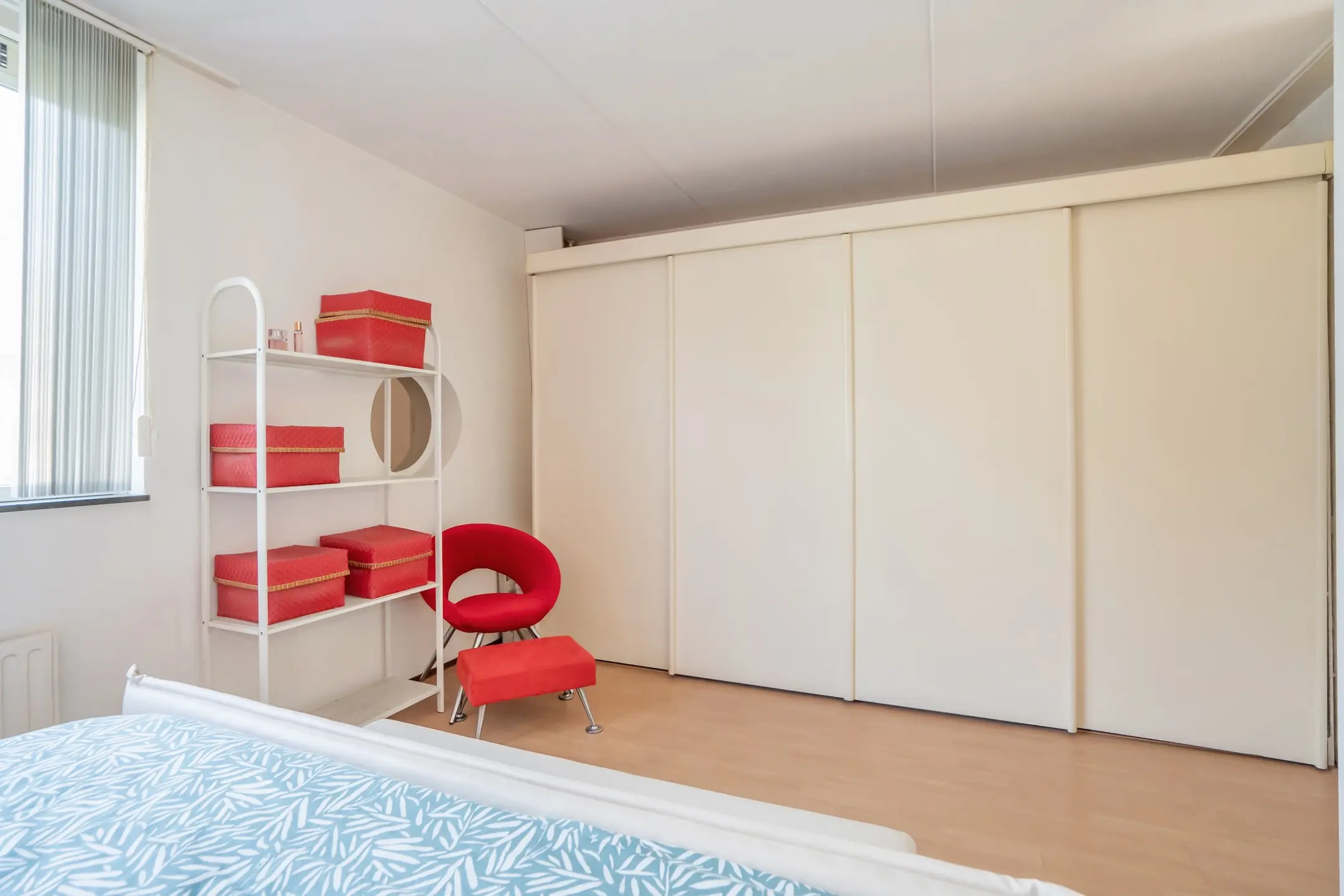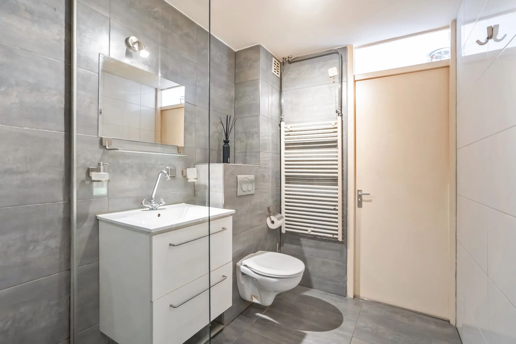 1e verdieping: overloop, aan de achterzijde gelegen tweetal slaapkamers van goed formaat, beide met toegang tot het zonnige terras gelegen over de breedte van de woning, ruime nette badkamer (geheel betegeld) voorzien van een inloop douche met drain en rainshower, wastafelmeubel, vrij hangend toilet en design radiator, aan de voorzijde gelegen hoofdslaapkamer over de breedte van de woning.