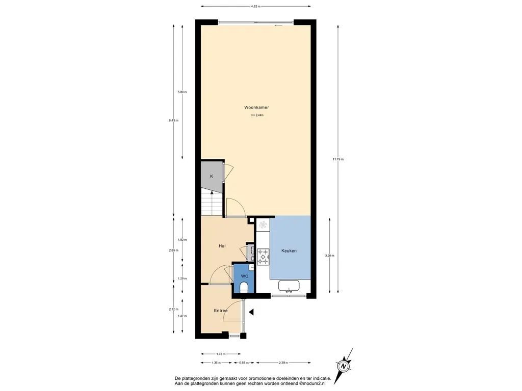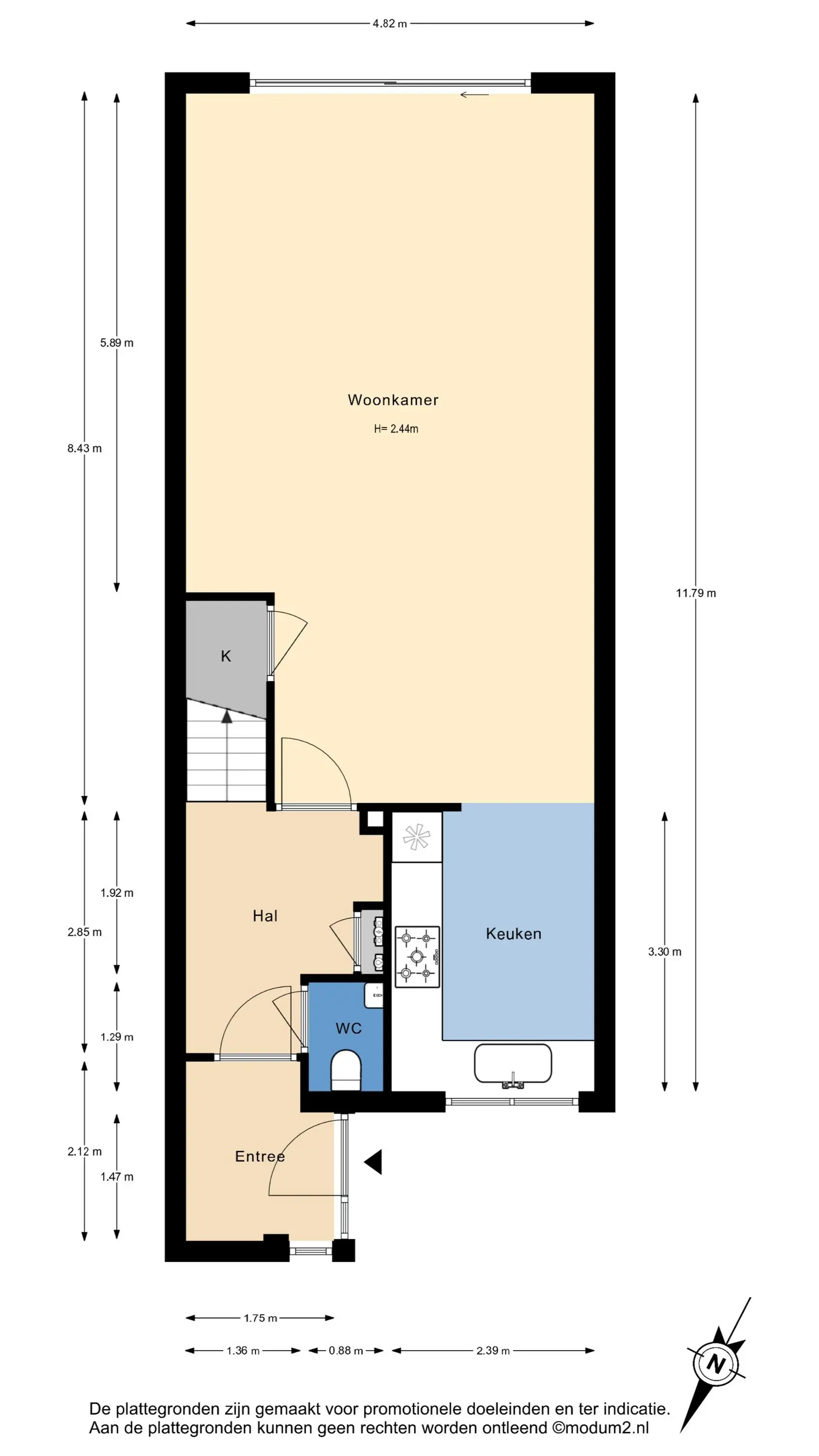 Bovenstaande informatie is door ons met de hoogst nodige zorgvuldigheid samengesteld. Door ons wordt echter geen enkele aansprakelijkheid aanvaard voor enige onvolledigheid, onjuistheid of anderszins, dan wel de gevolgen daarvan. Alle opgegeven maten en oppervlakten zijn indicatief. De woning is gemeten met gebruikmaking van de Meetinstructie, die is gebaseerd op de normen zoals vastgelegd in NEN 2580. De Meetinstructie is bedoeld om een meer eenduidige manier van meten toe te passen voor het geven van een indicatie van gebruiksoppervlakte. De Meetinstructie sluit verschillen in meetuitkomsten niet volledig uit, door bijvoorbeeld interpretatieverschillen, afrondingen of beperkingen bij het uitvoeren van de meting. Hoewel wij de woning zorgvuldig hebben opgemeten, wordt noch door ons kantoor, noch door de verkoper enige aansprakelijkheid aanvaard voor afwijkingen in de opgegeven maten. Koper wordt in de gelegenheid gesteld om de opgegeven maten te (laten) controleren.