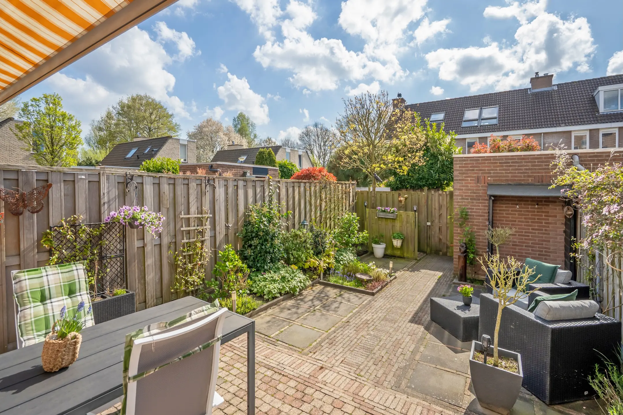 De goed aangelegde achtertuin is ca. 10.00 meter diep en ligt op het zuidwesten (dag en avondzon), gemetselde schuur voorzien van elektra en een achterpad.