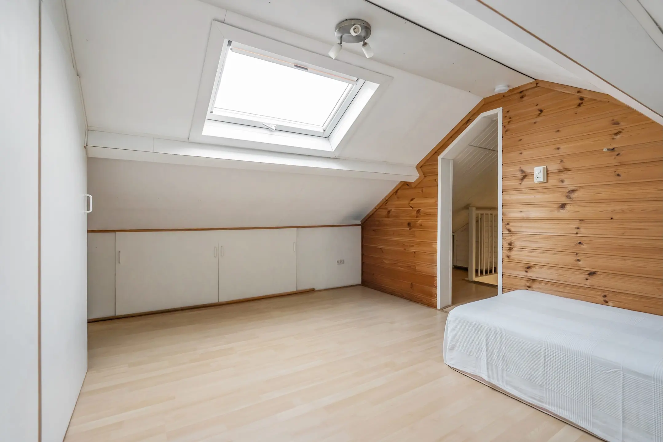 Via een vaste trap bereik je de zolderetage met knieschotten. De aangrenzende zolderkamer met een dakraam is een lichte, multifunctionele ruimte ideaal als logeer-, hobby- of werkkamer.
