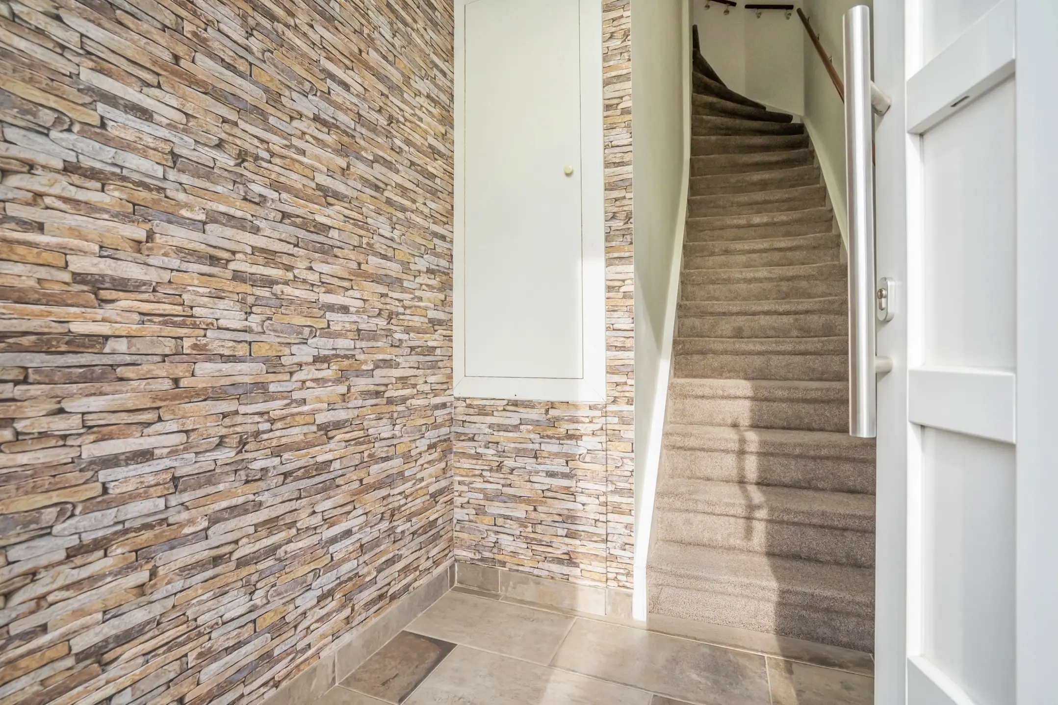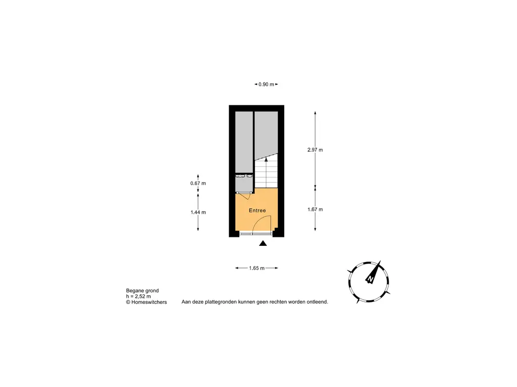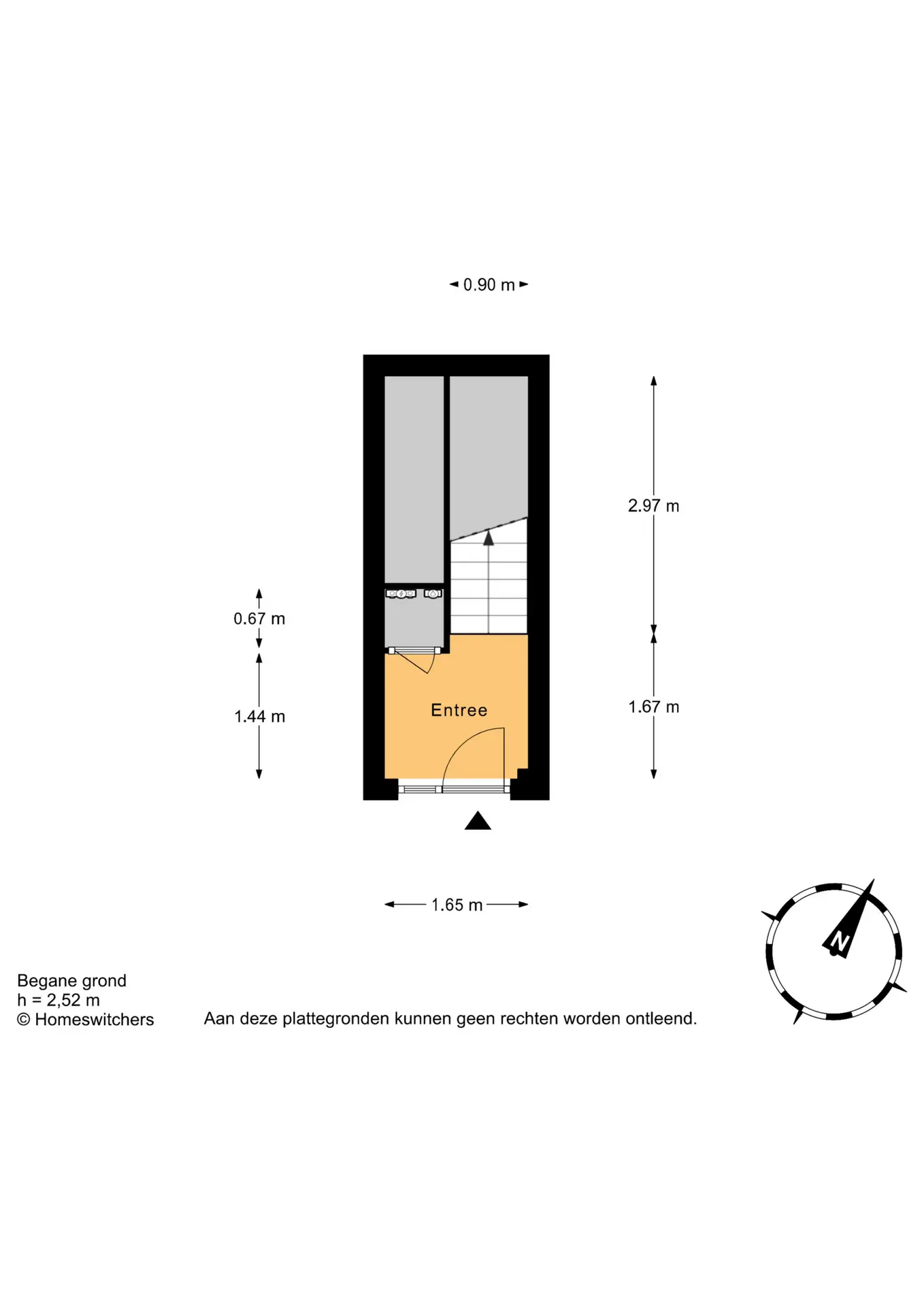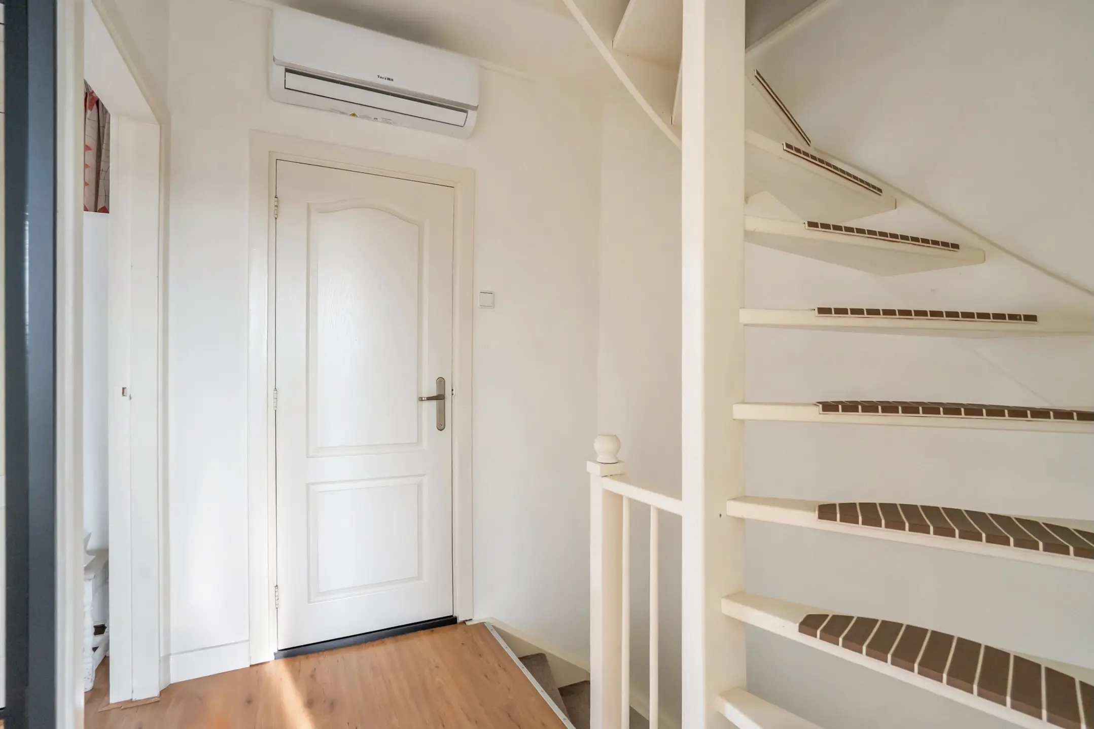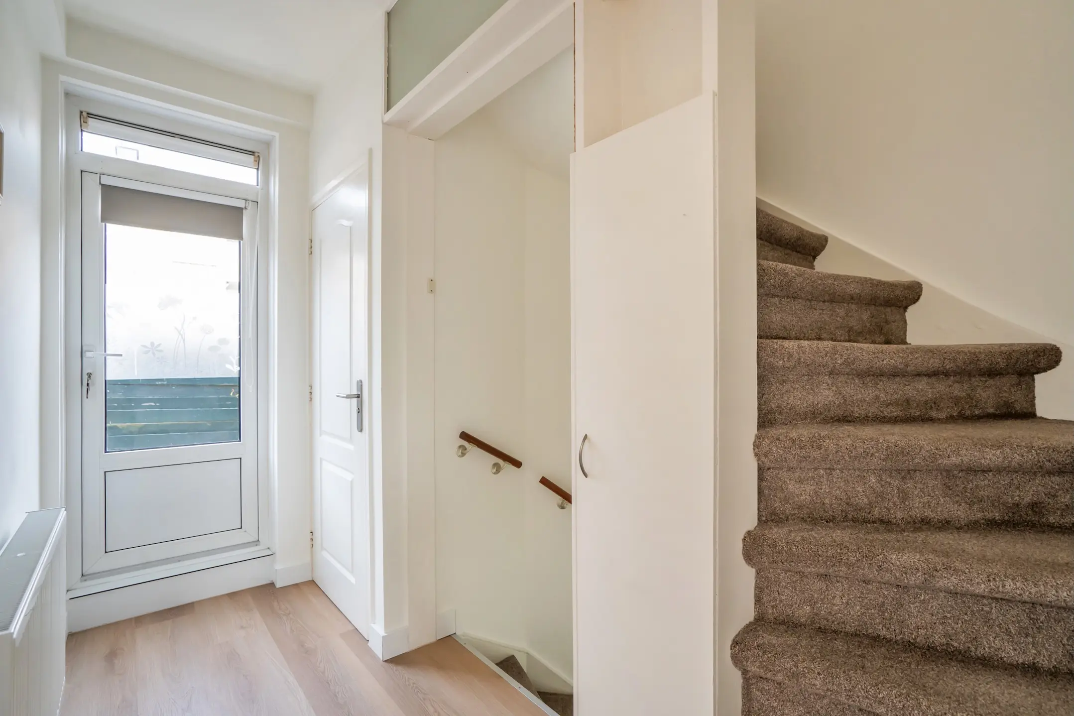Entree op straatniveau met garderoberuimte en meterkast. Vanuit de hal leidt een trap naar de eerste verdieping.